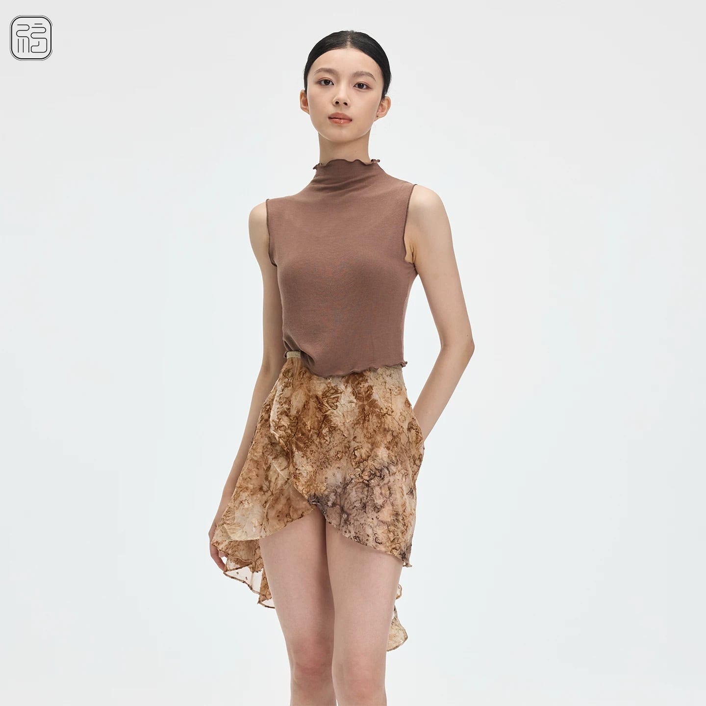 ヴィンテージ感のあるブラウンのニュアンス柄が印象的なスカート。