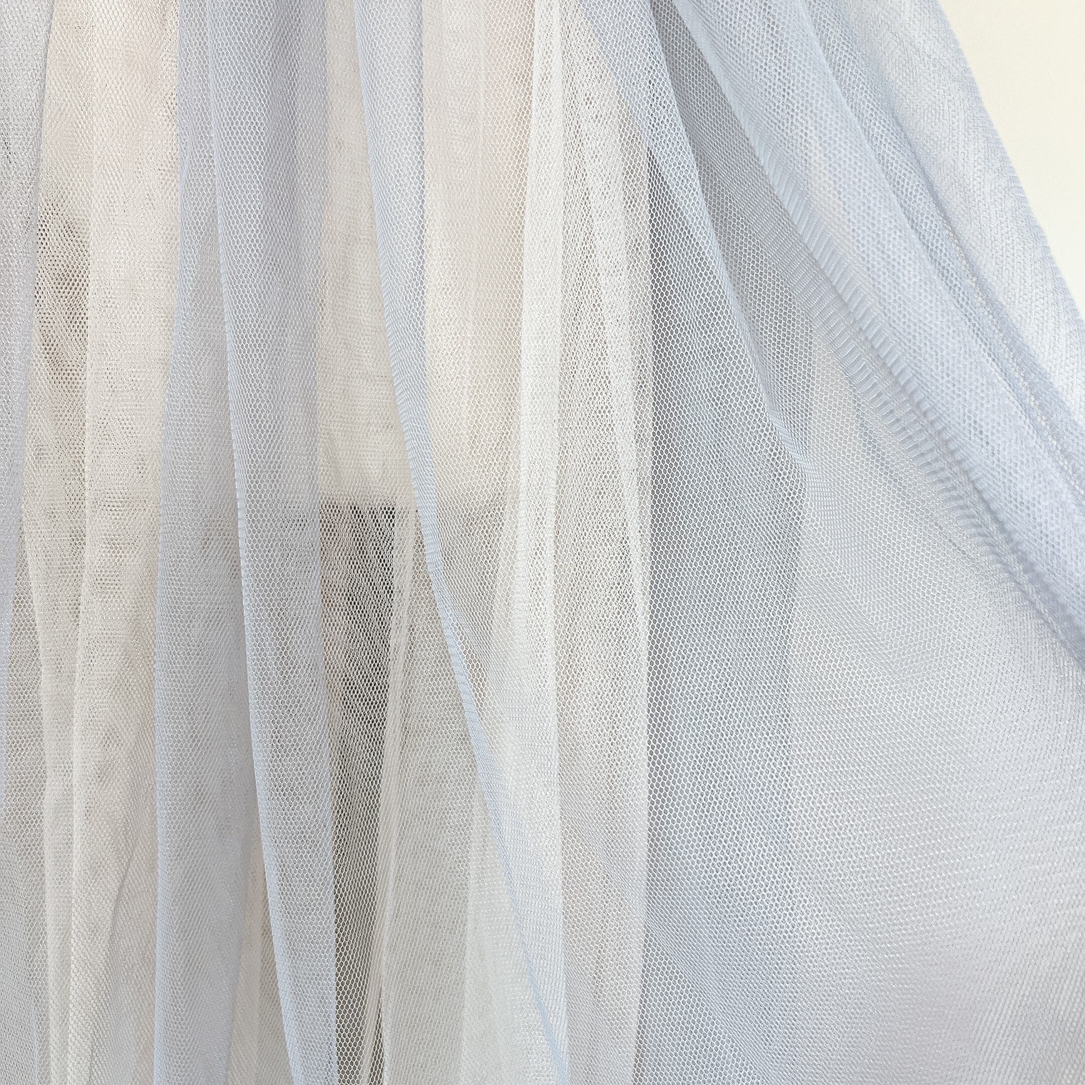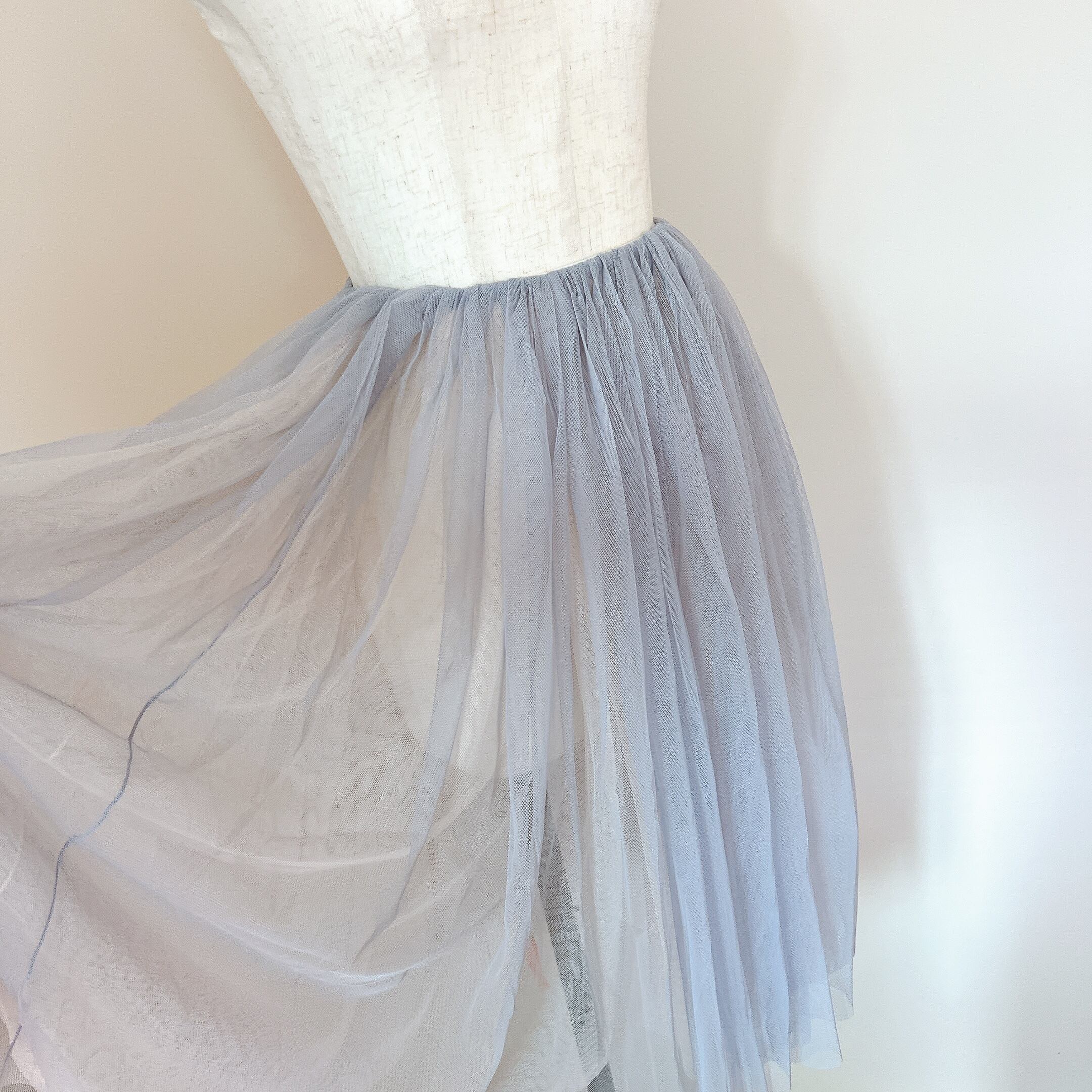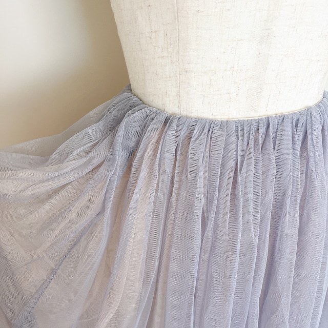 ブルーと、アイボリーの2色が重なり合ったチュールスカート。