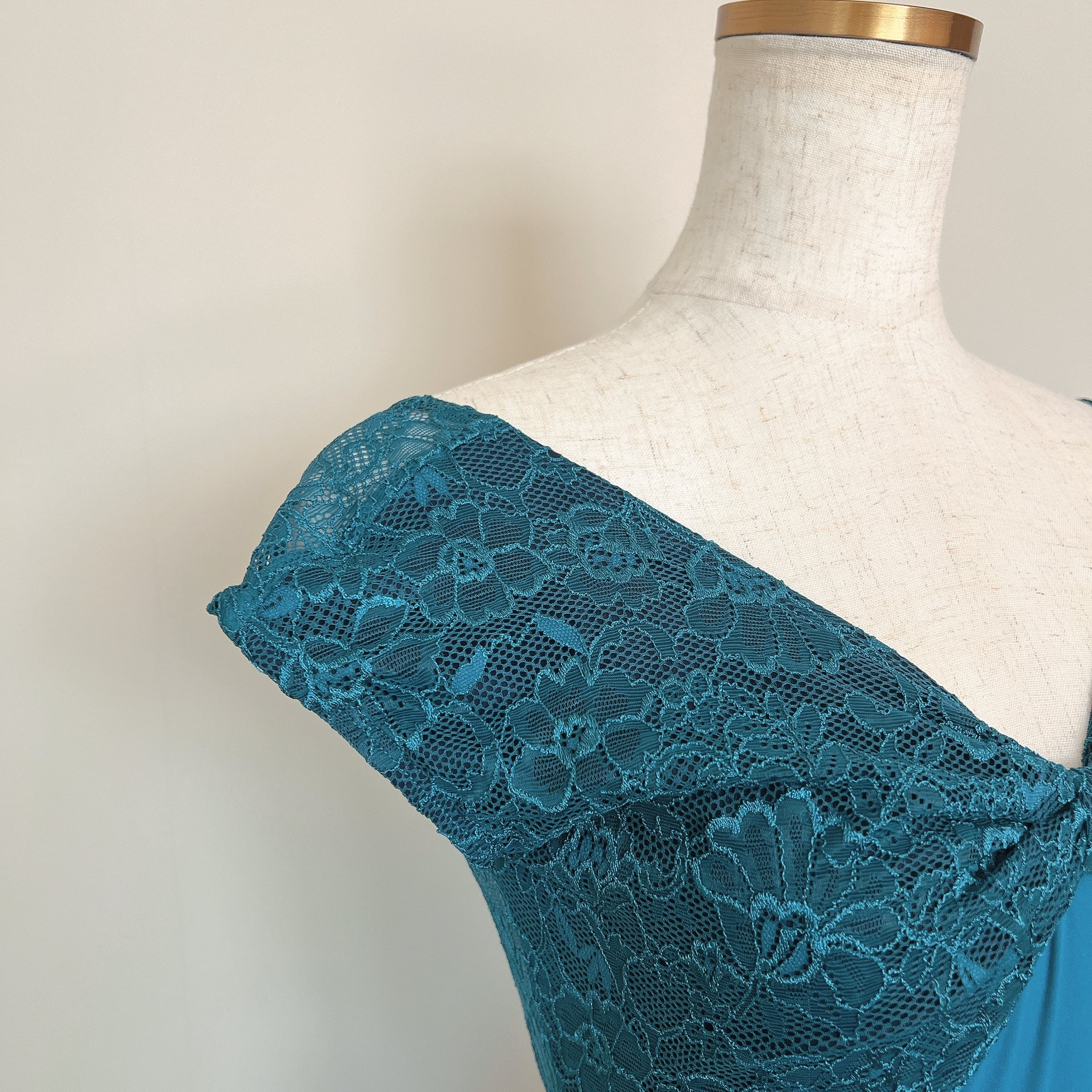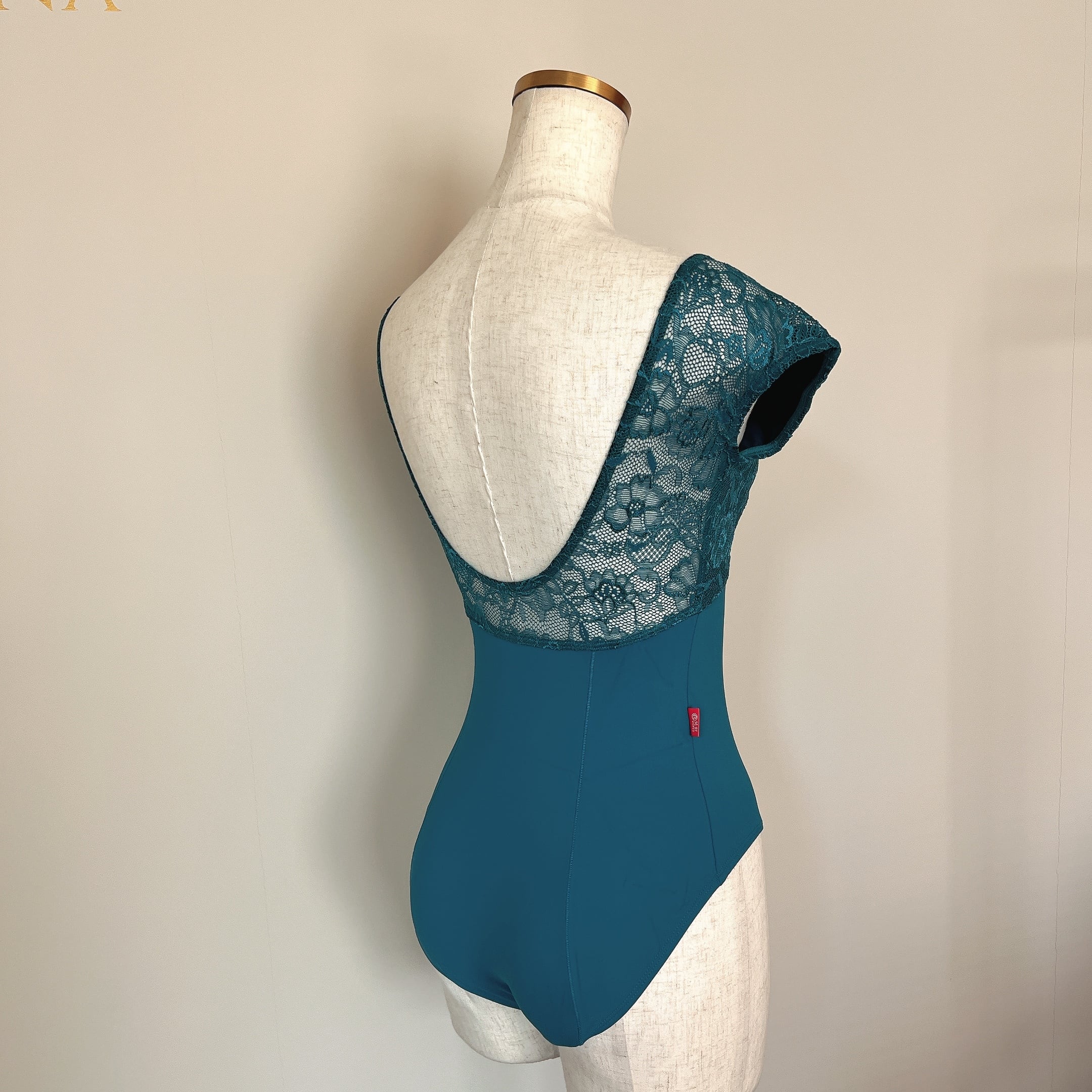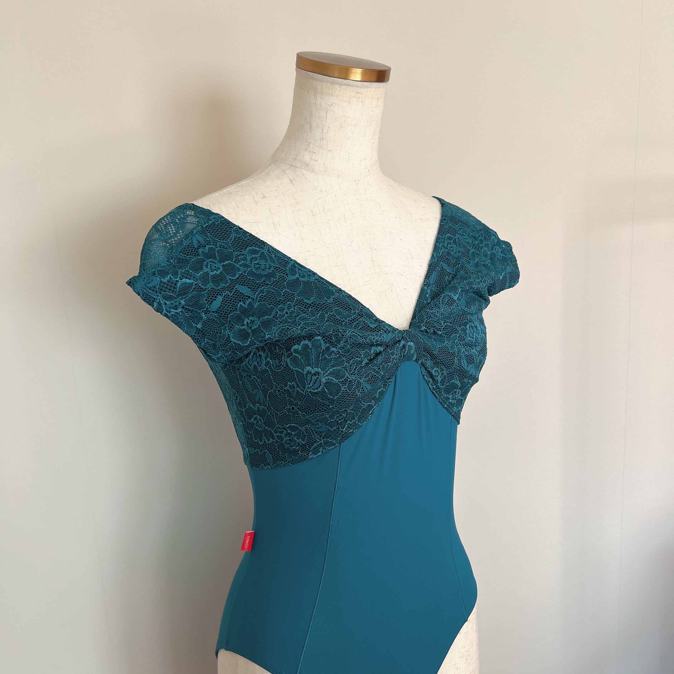レースリボン キャップスリーブ バレエレオタード(ピーコック)