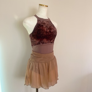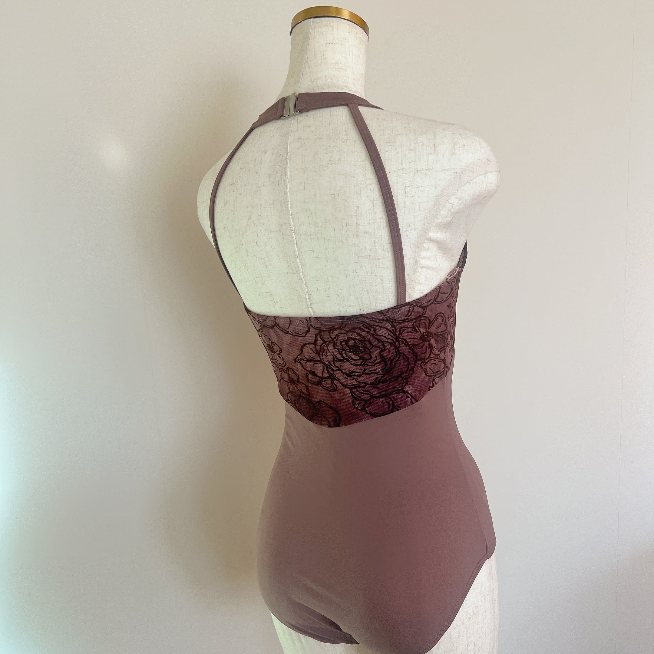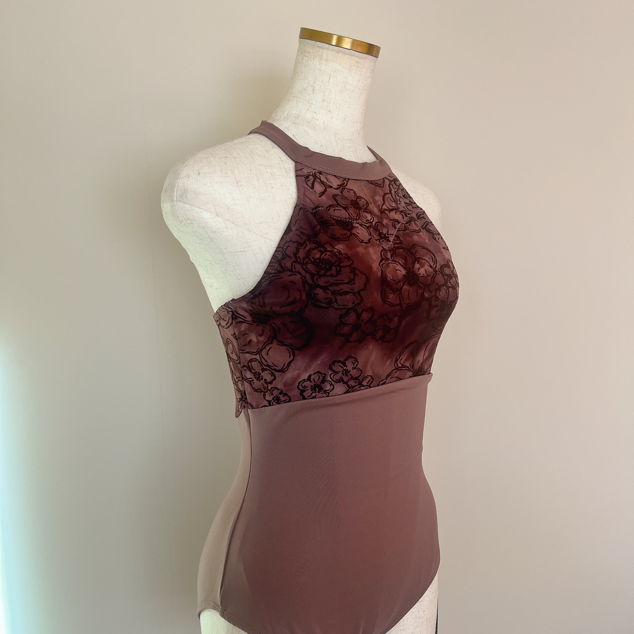 深みのあるモーヴブラウンに、繊細なフラワー柄のチュールを重ねた