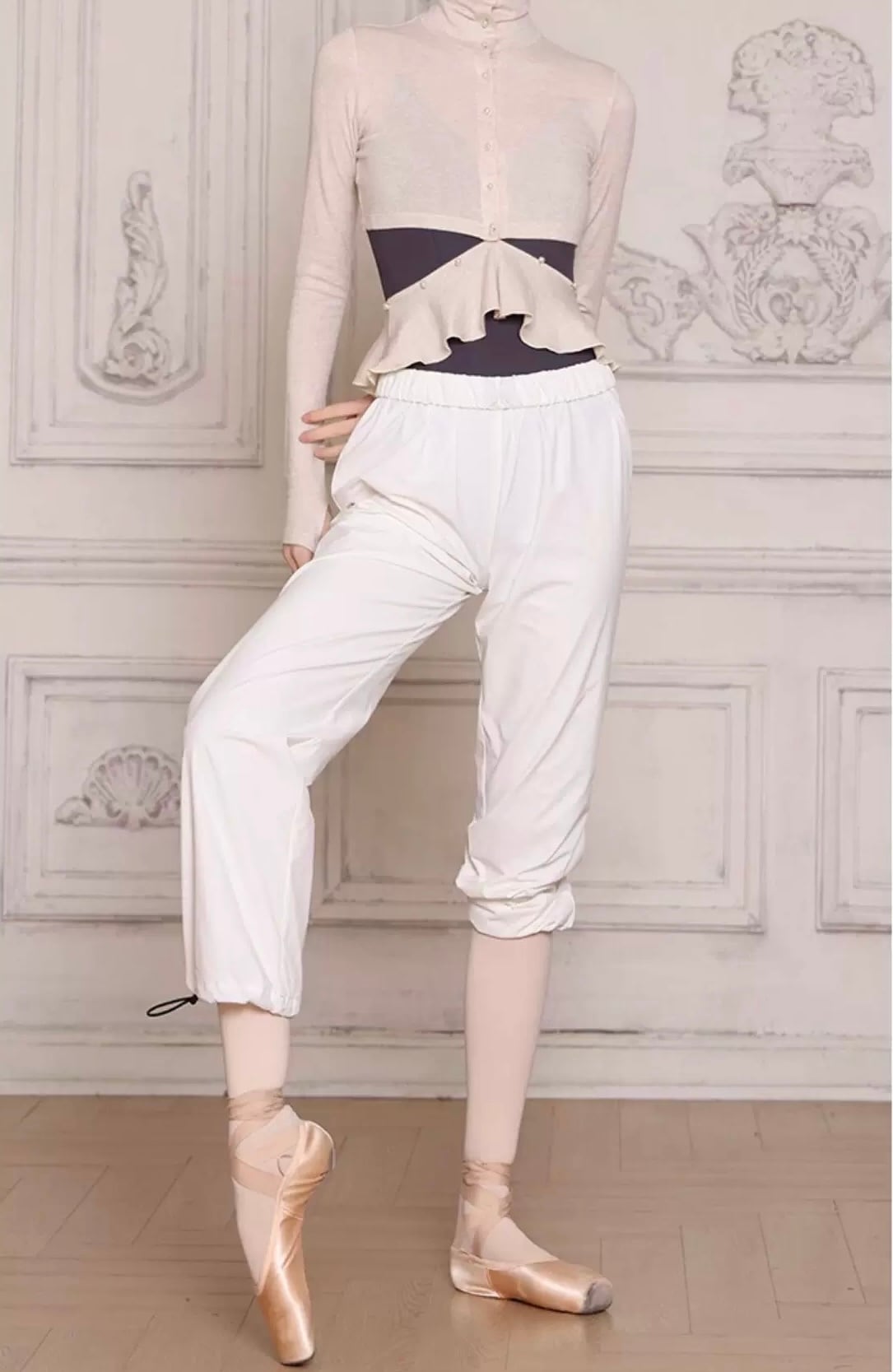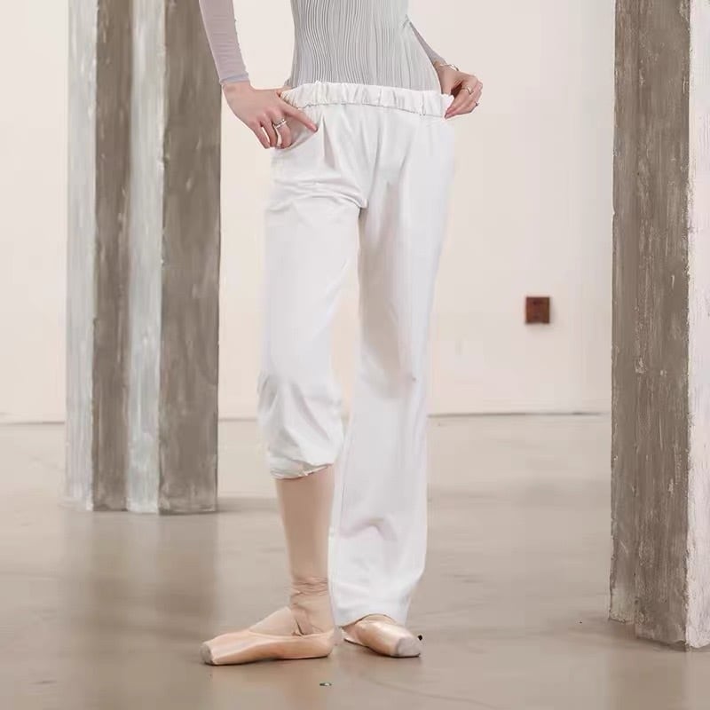 ウォームアップにもリハーサルにも快適な着心地のパンツ。