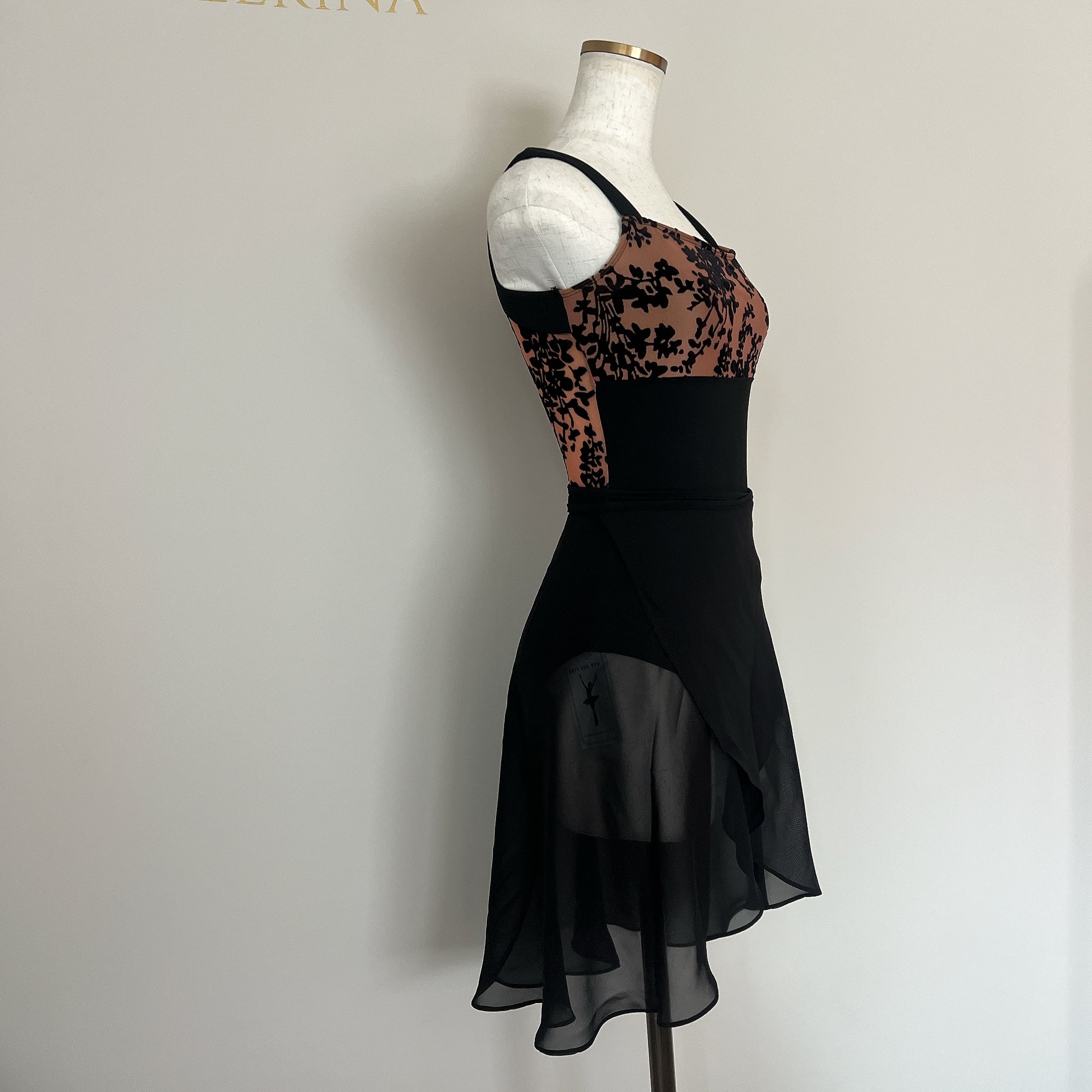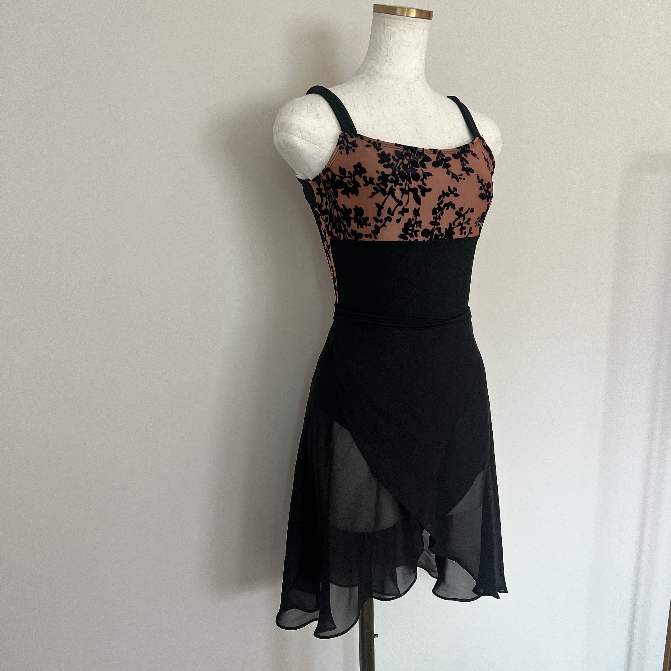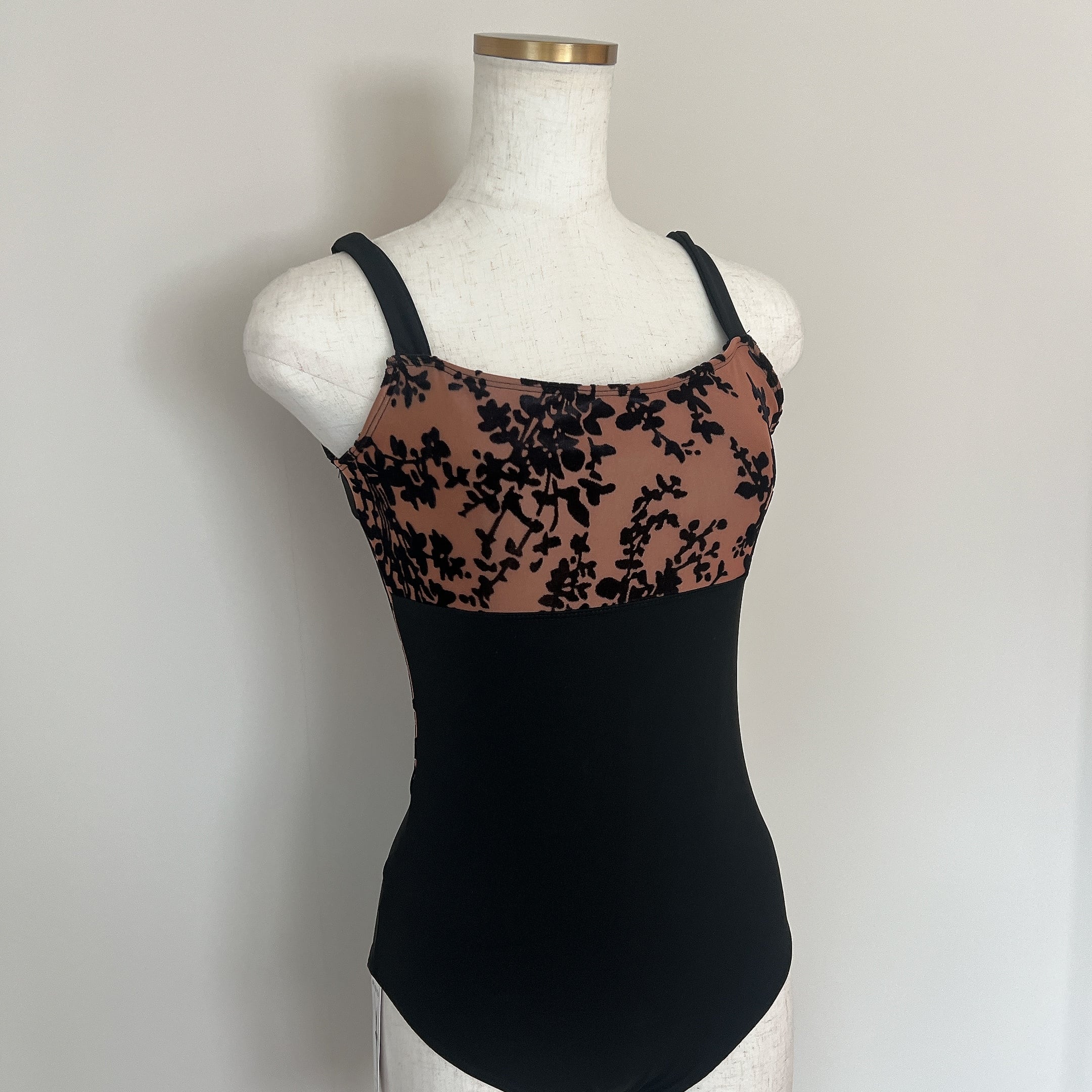 Velour Flock バレエレオタード〈ブラック×ブラウン〉