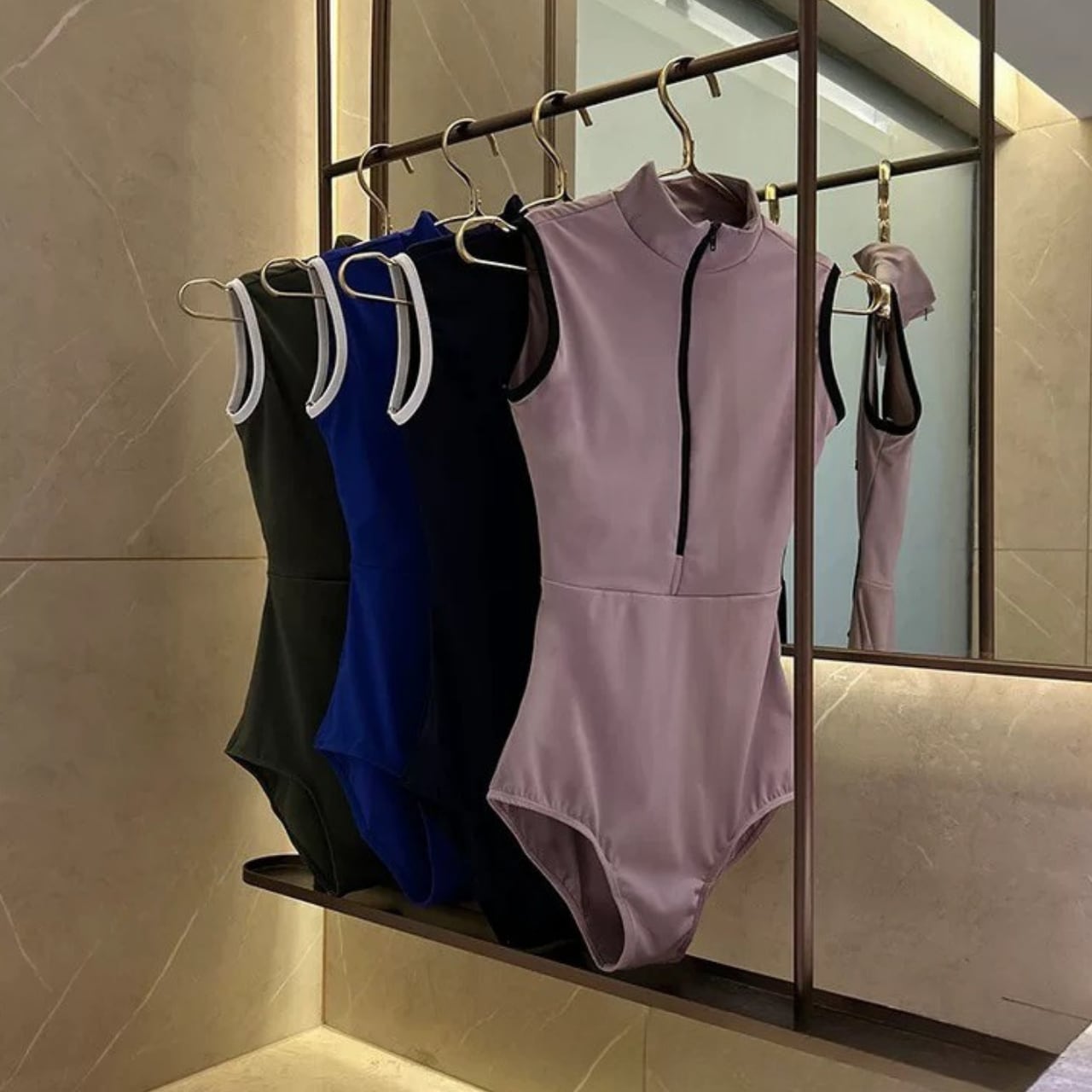 ハイネック ジップアップ オープンバック バレエレオタード(モーブパープル)