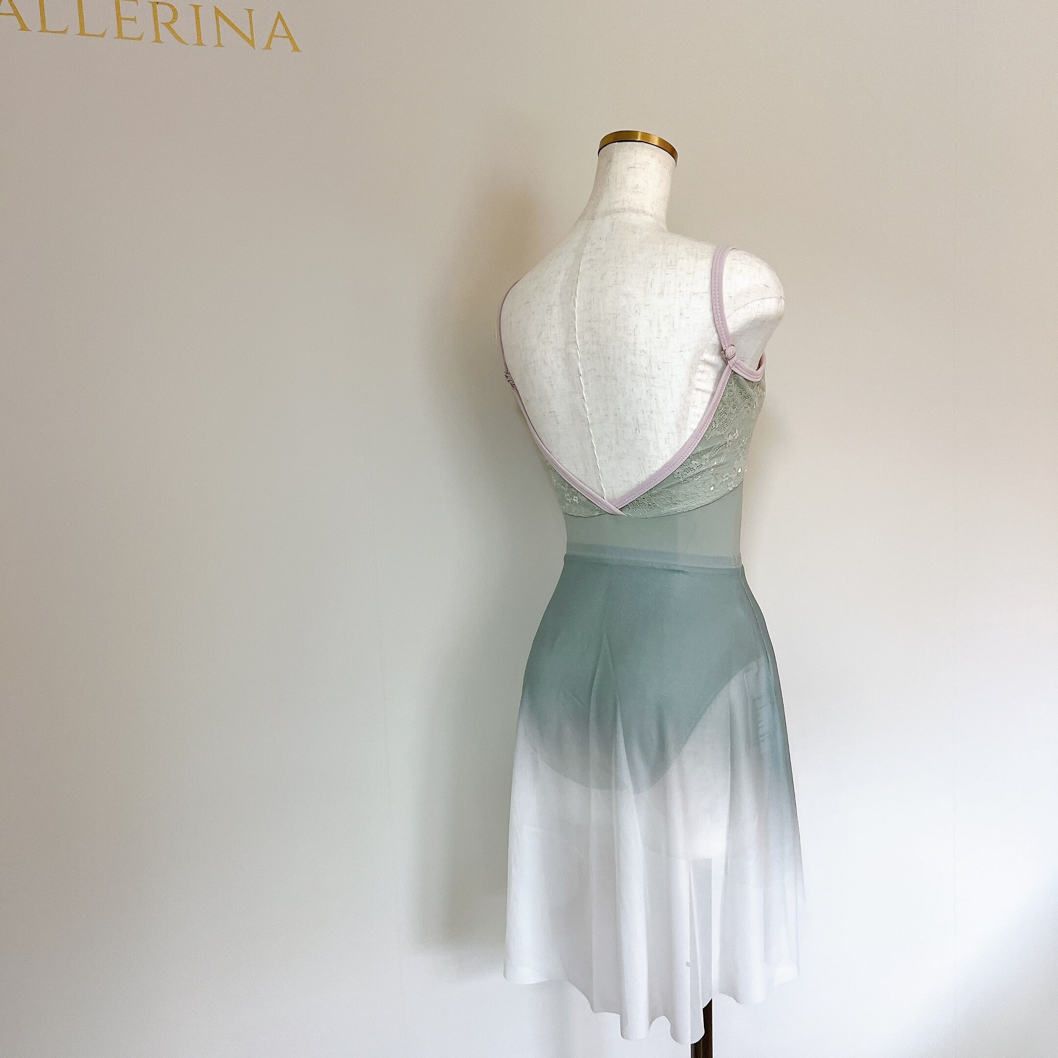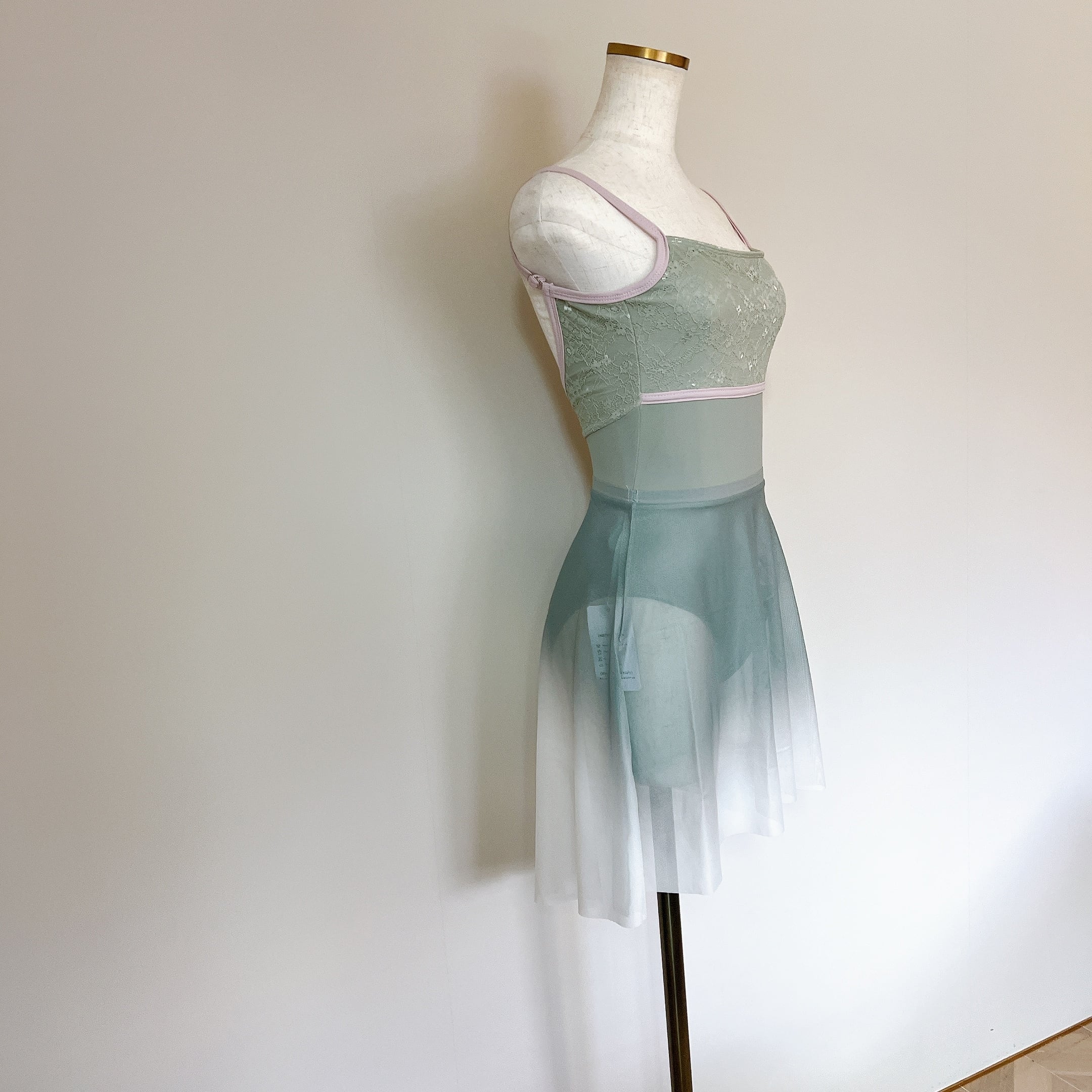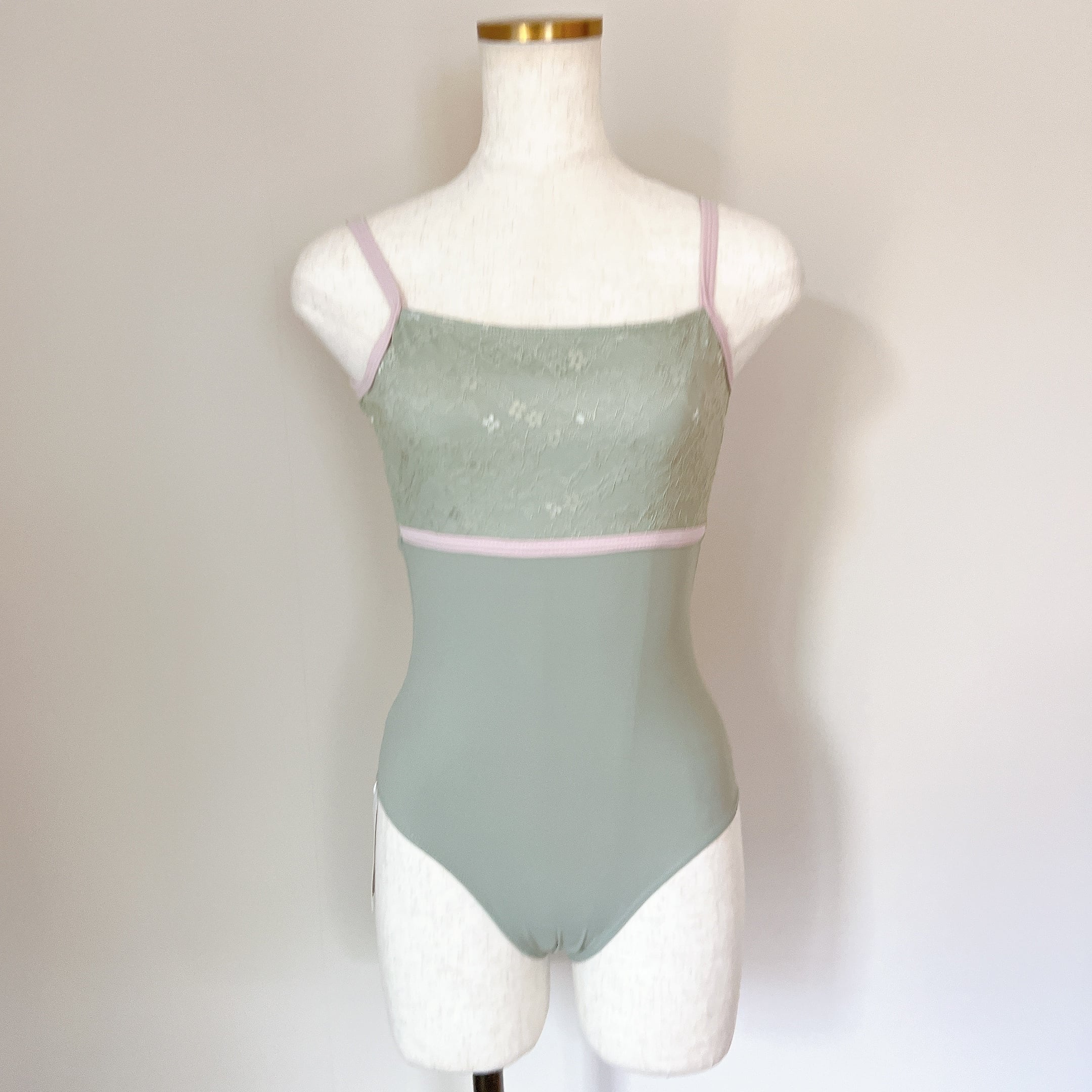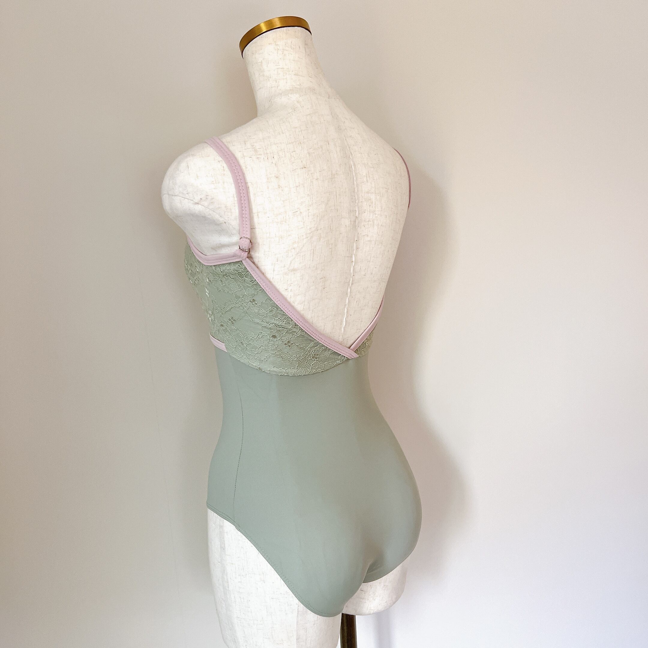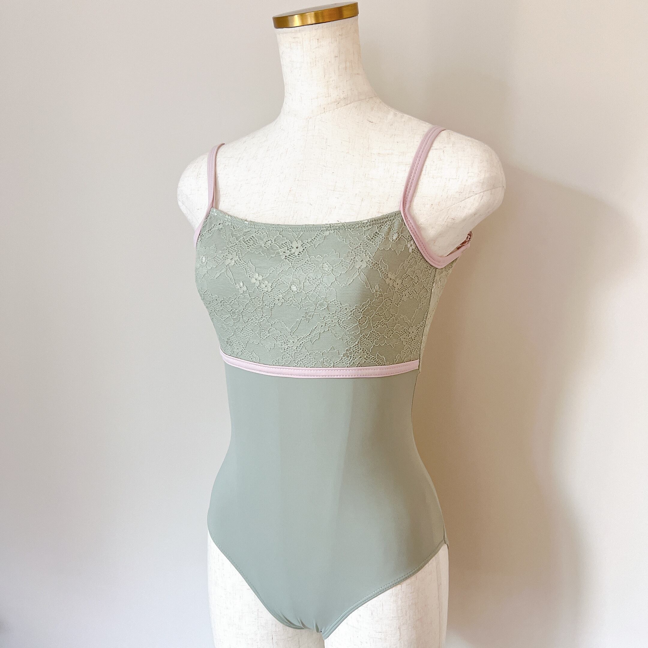エレガンスレース トリム キャミソール バレエレオタード(グリーン)