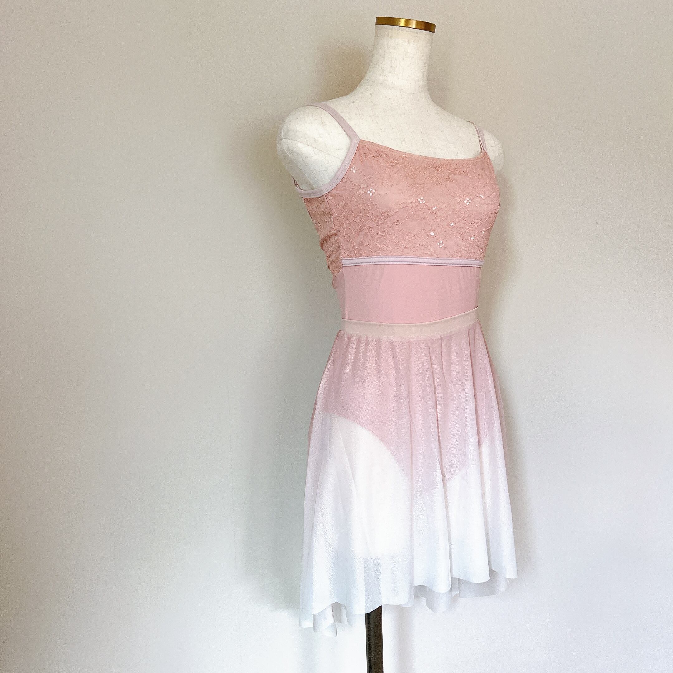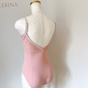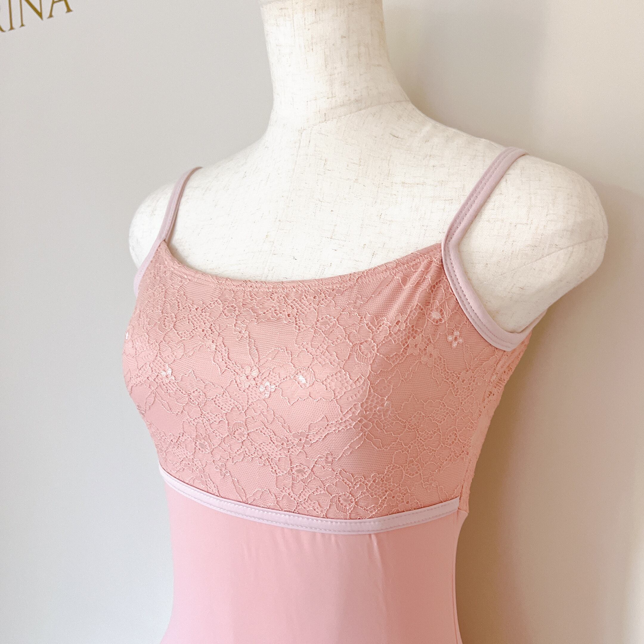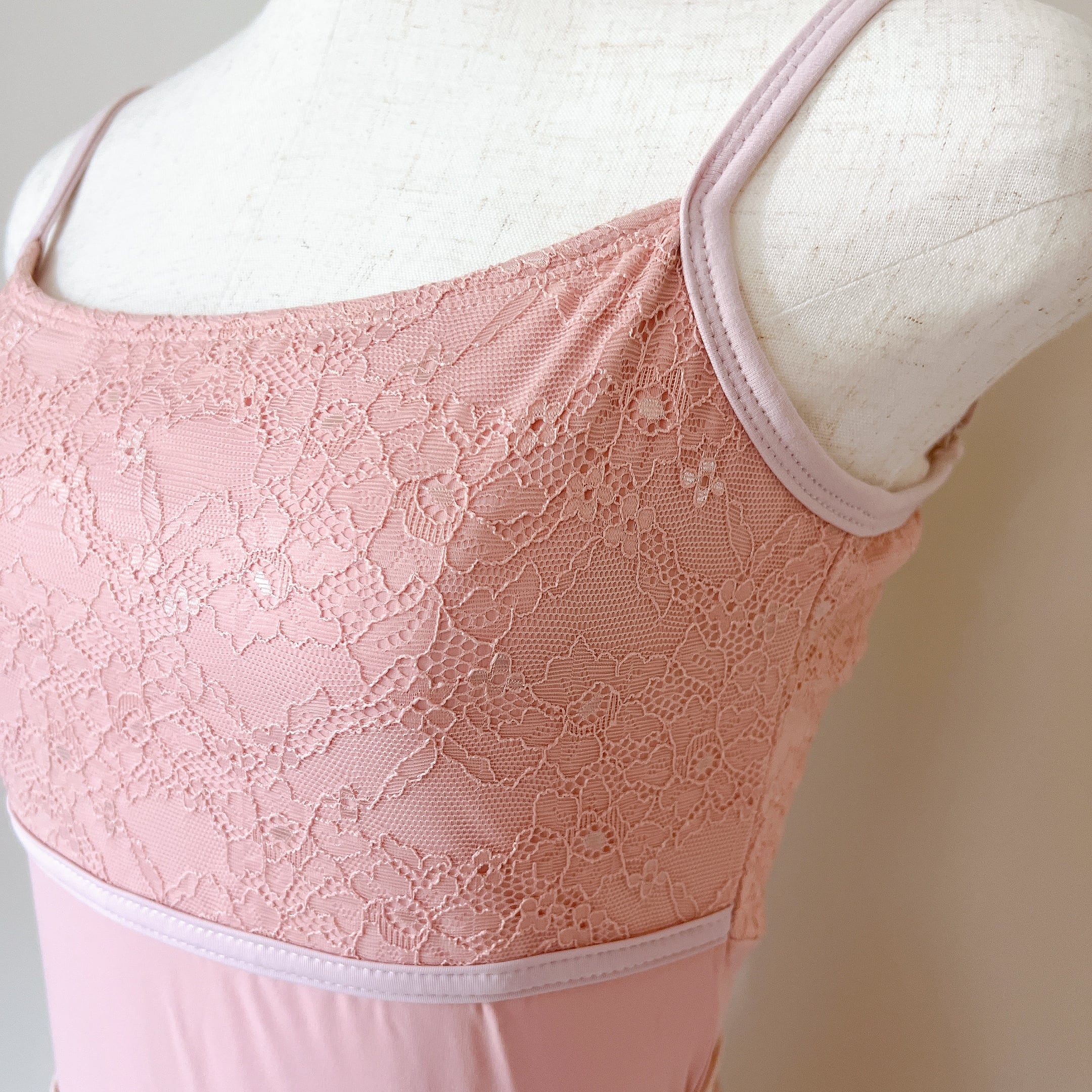 エレガンスレース トリム キャミソール バレエレオタード(ピンク)