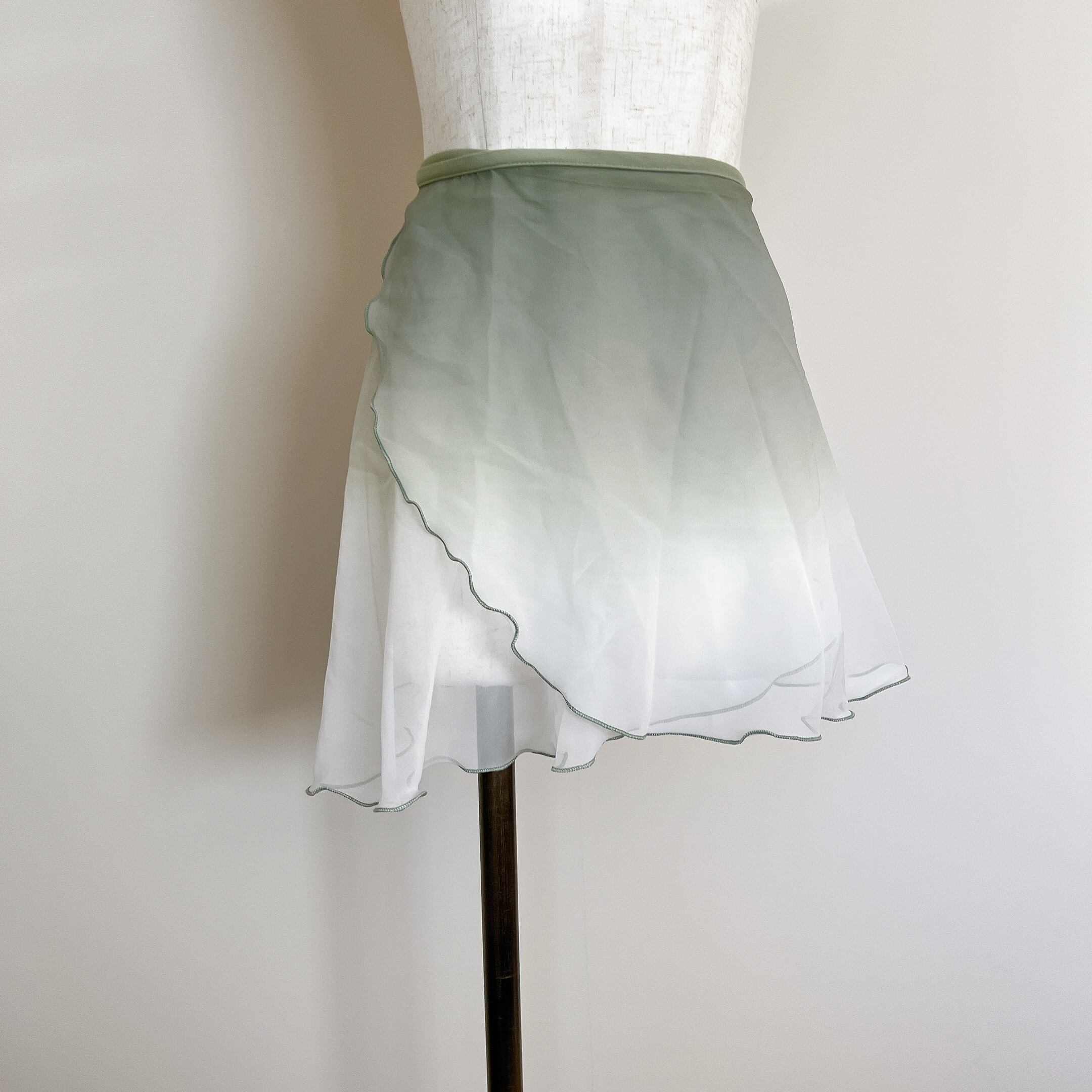 透明感のあるシフォンき生地にくすみグリーンのグラデーションが美しい巻きスカート