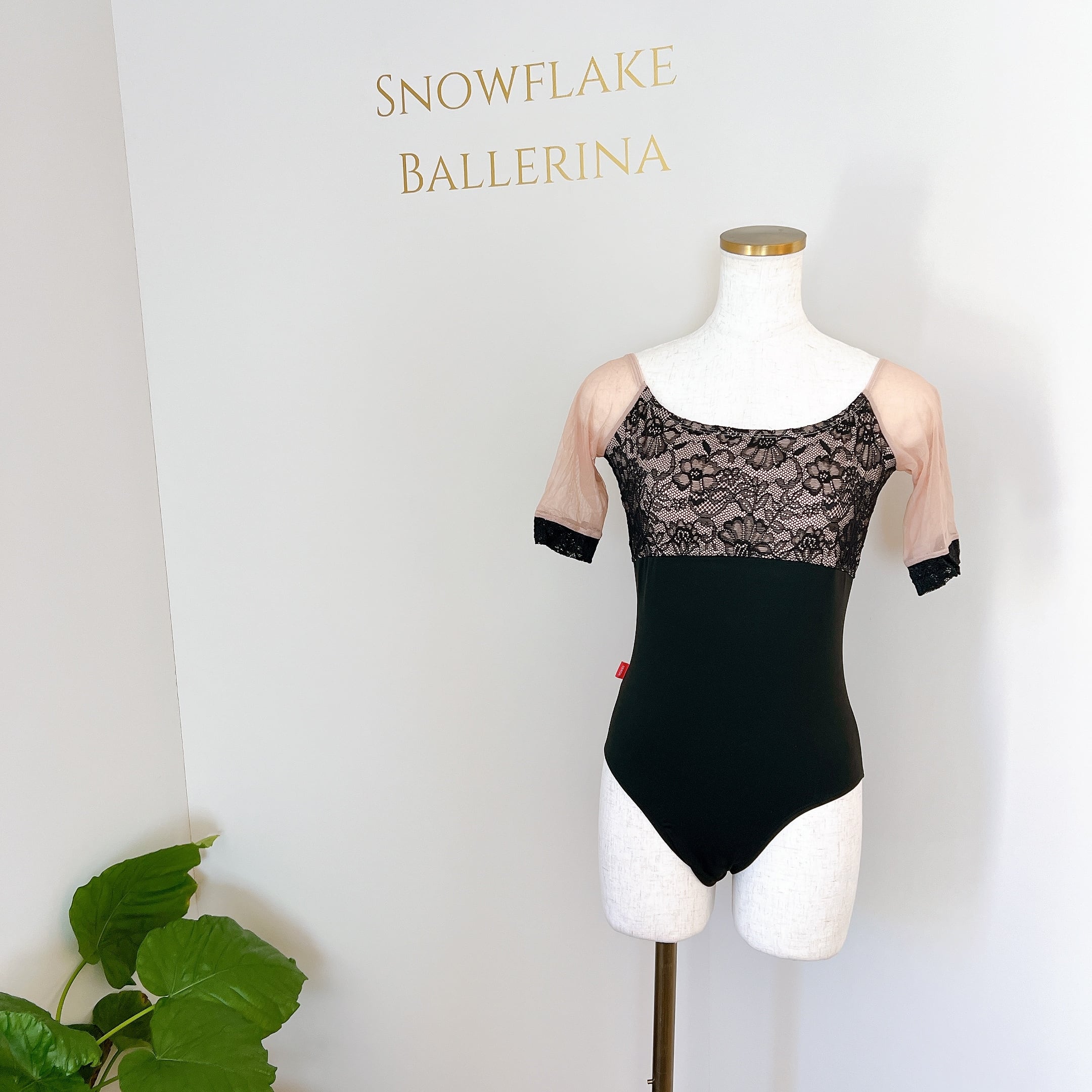 グレースレース ミディスリーブ バレエレオタード(ブラック)