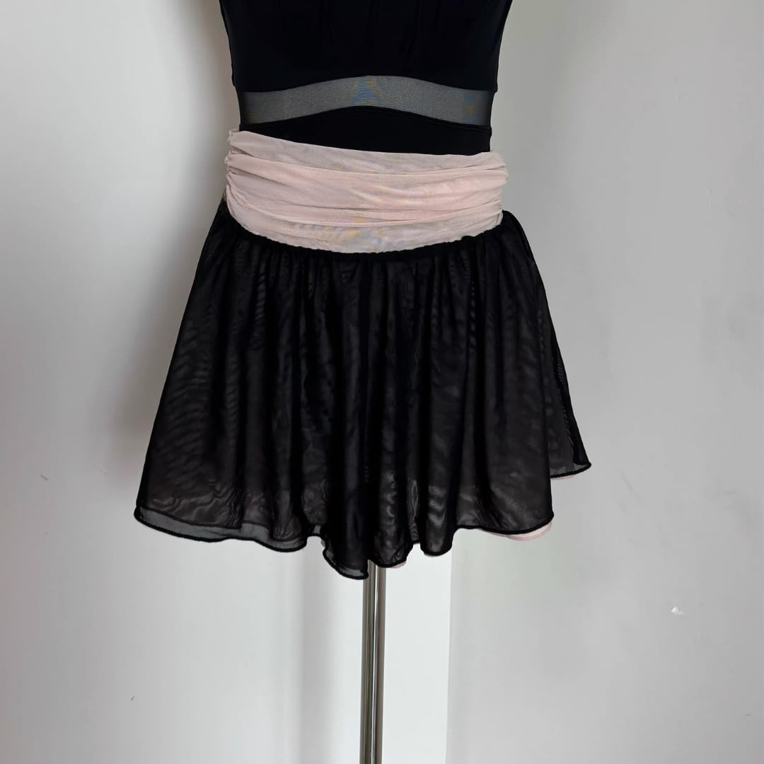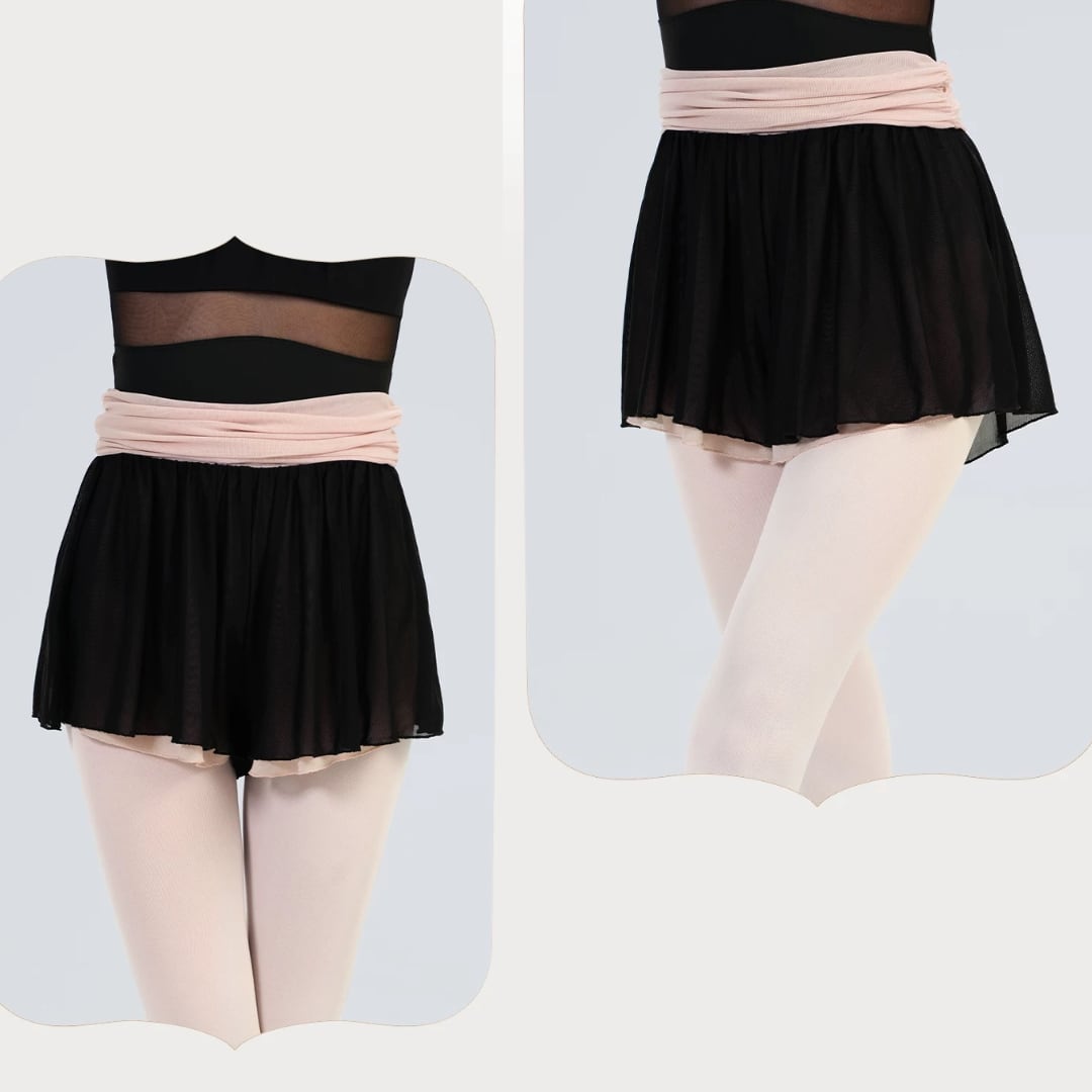 お腹まわりを優しく包み込みながら、レオタードとの一体感を演出してくれます。