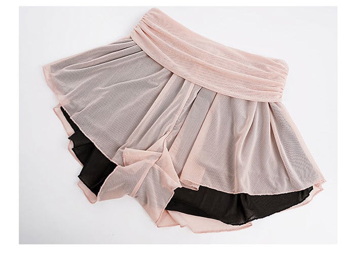 リバーシブル ダブルチュール キュッロットスカート(Black×Pink)