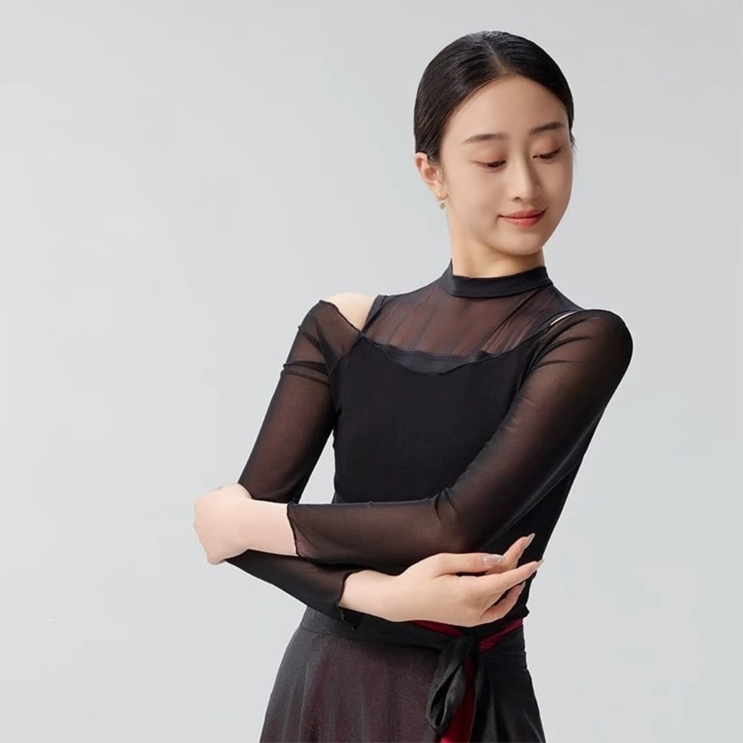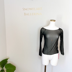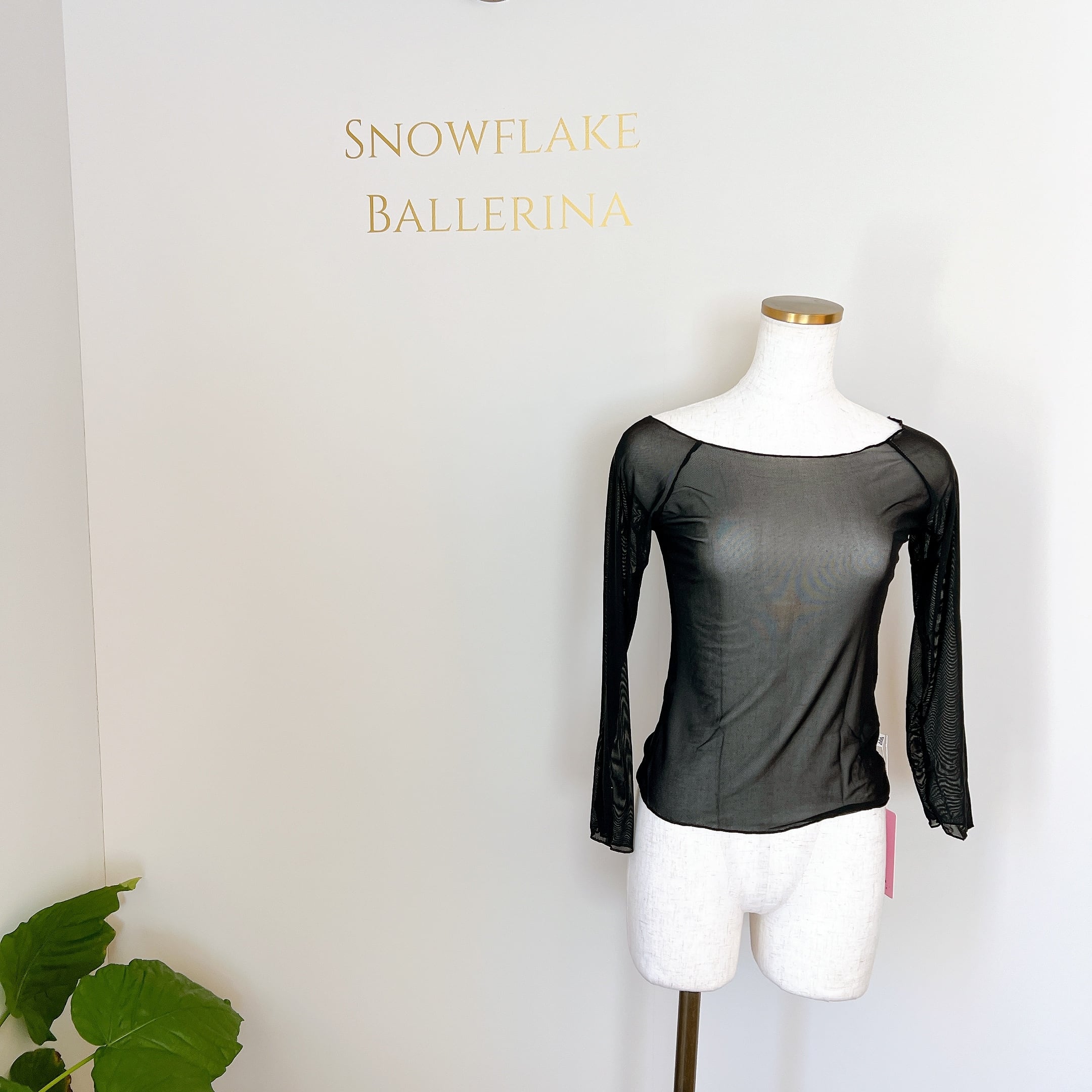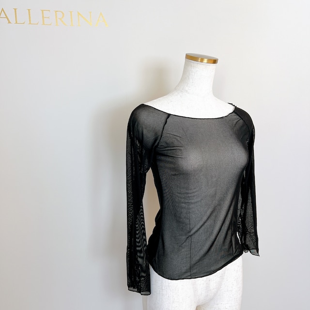 ストレッチの効いたメッシュ素材の七分丈トップス。