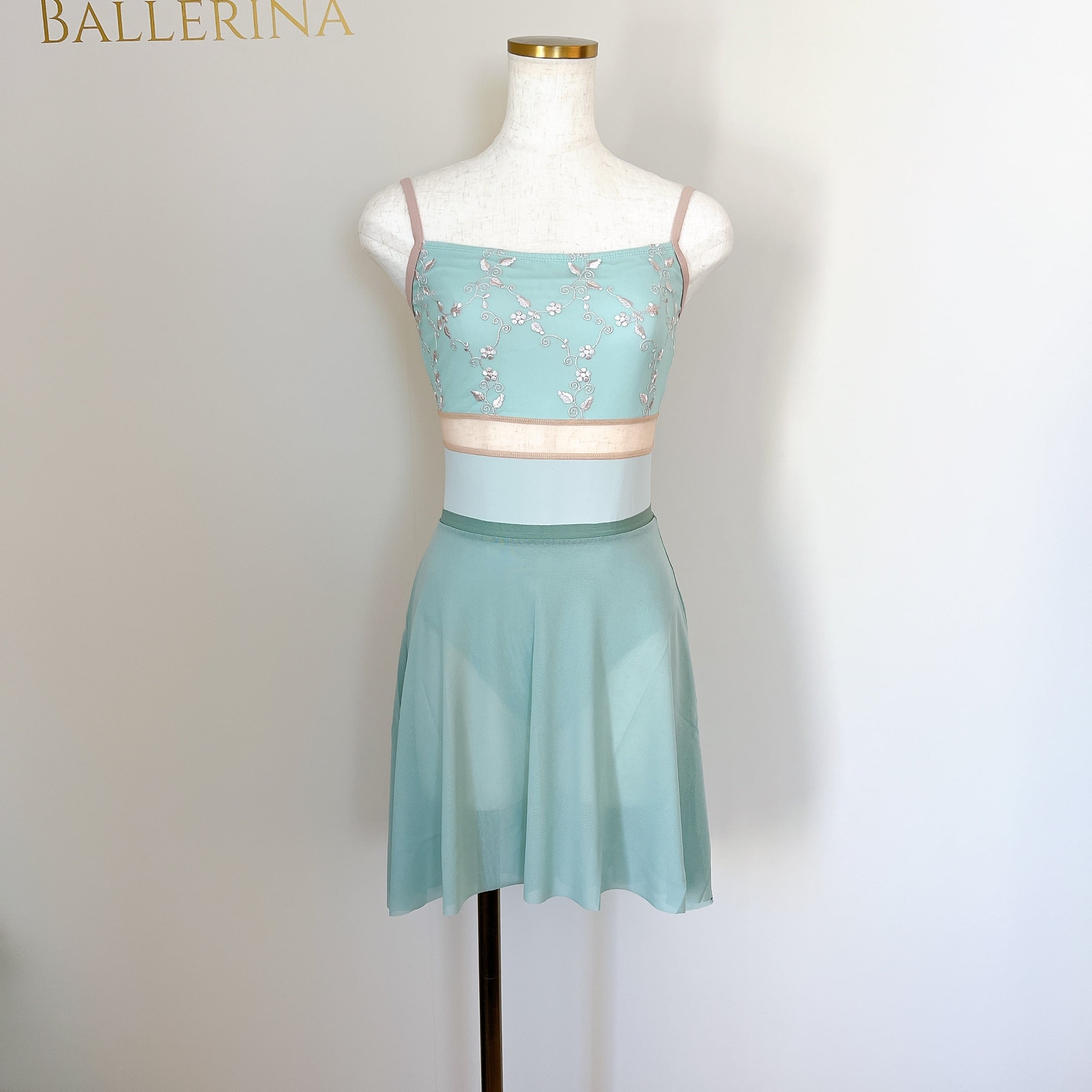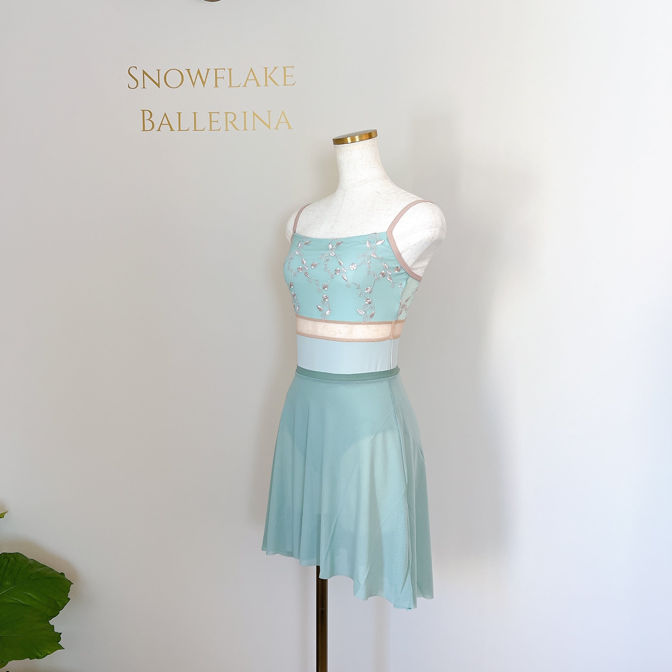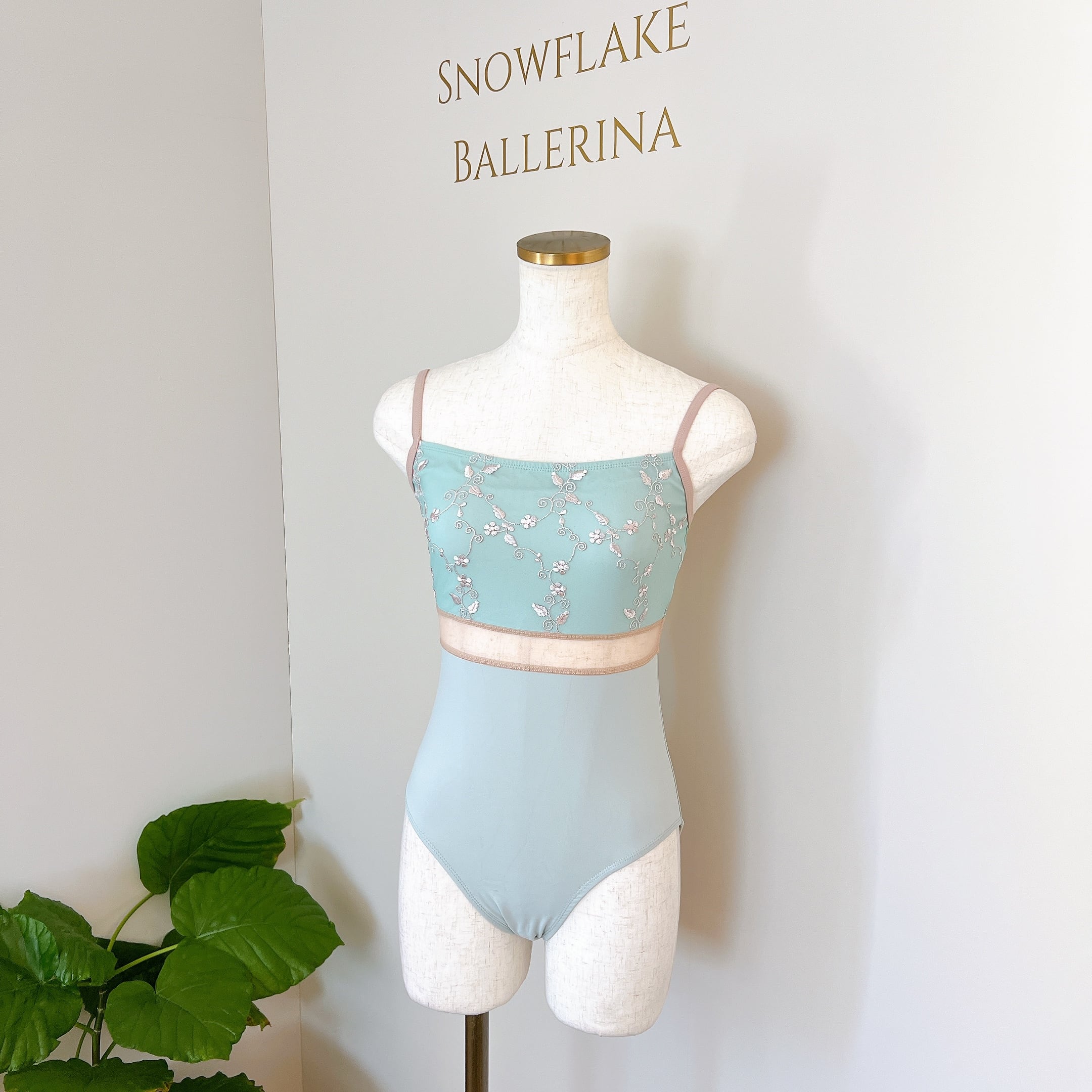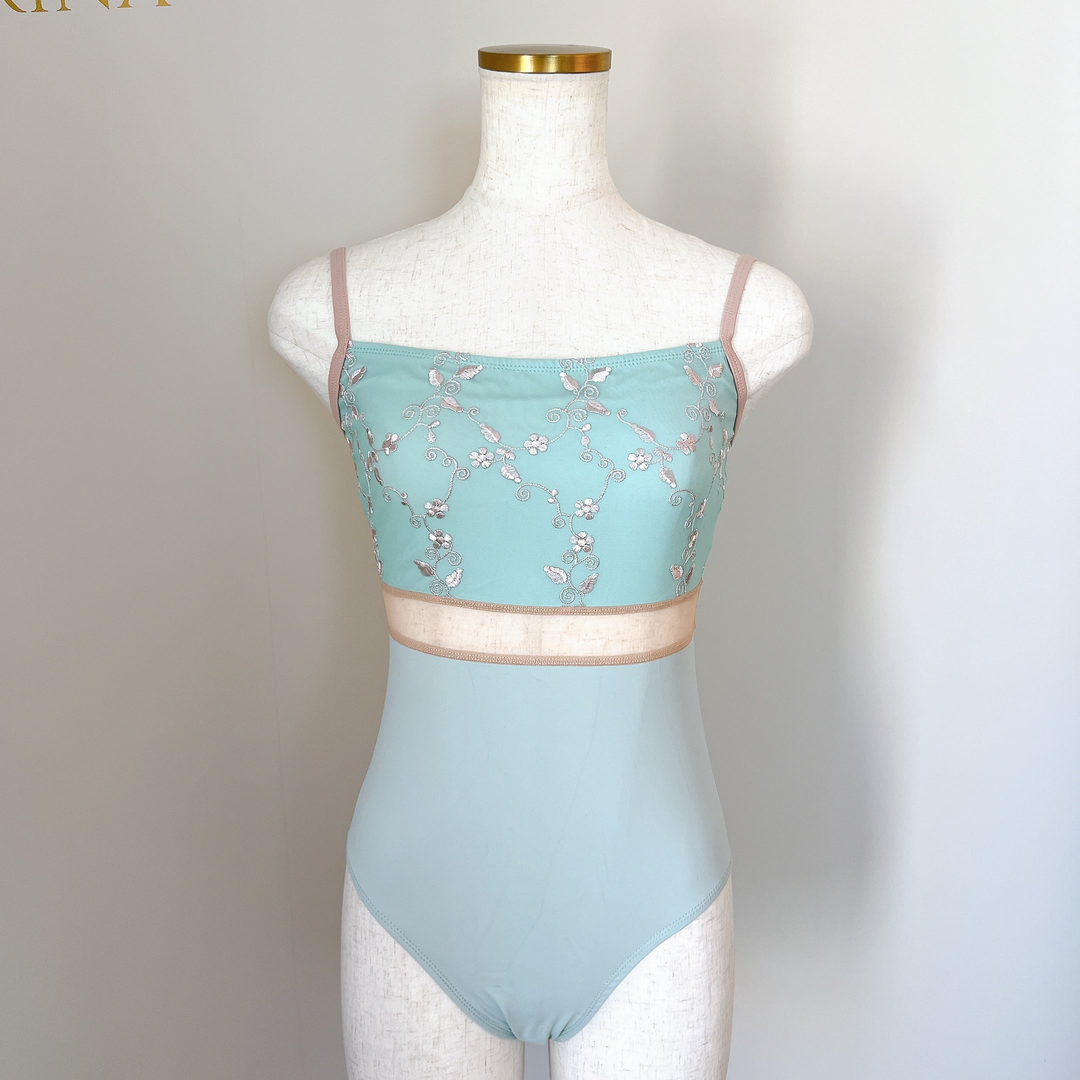 フローラルレース・シアーウエスト キャミソール バレエレオタード(ミント)