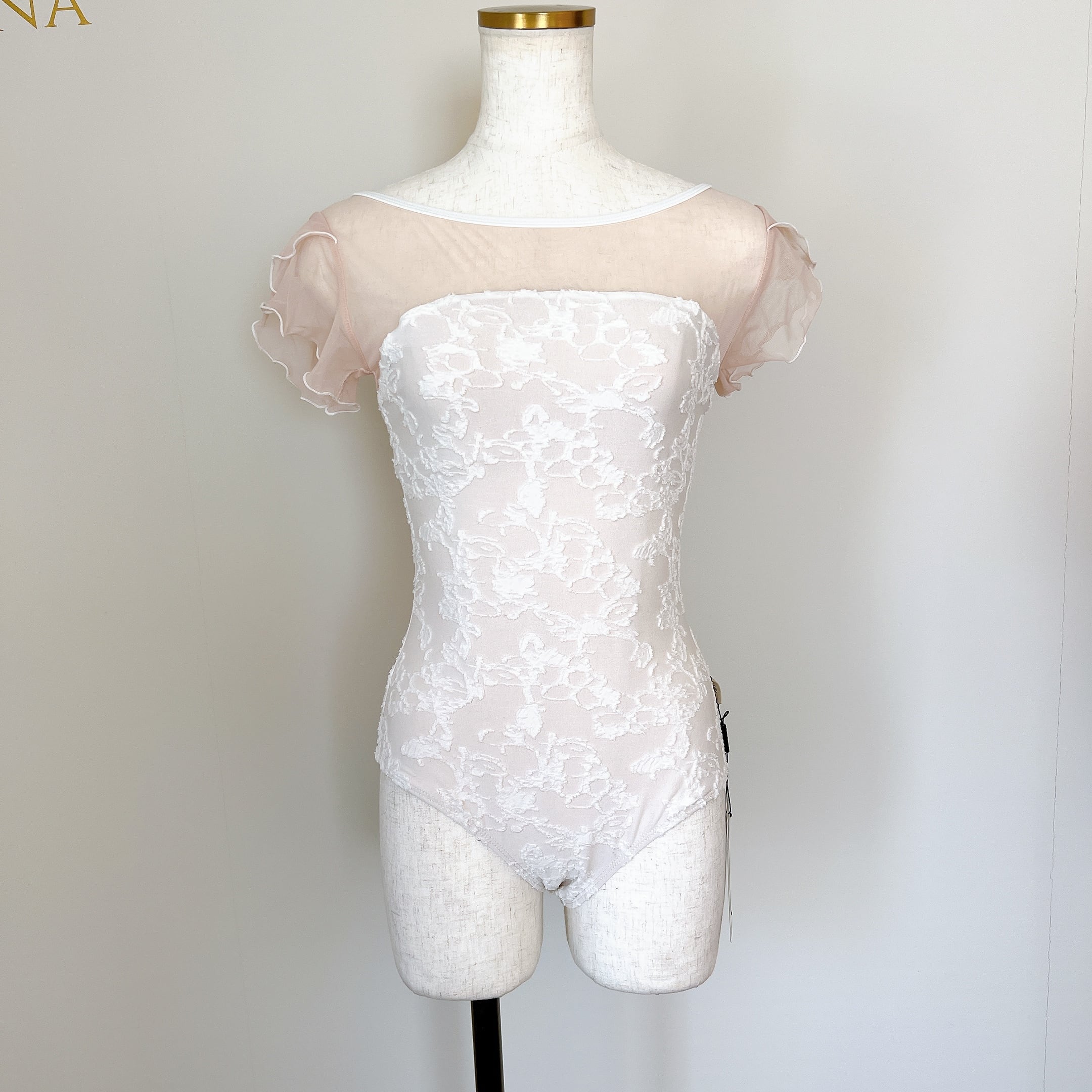 フローラルジャカード フリルスリーブ バレエレオタード