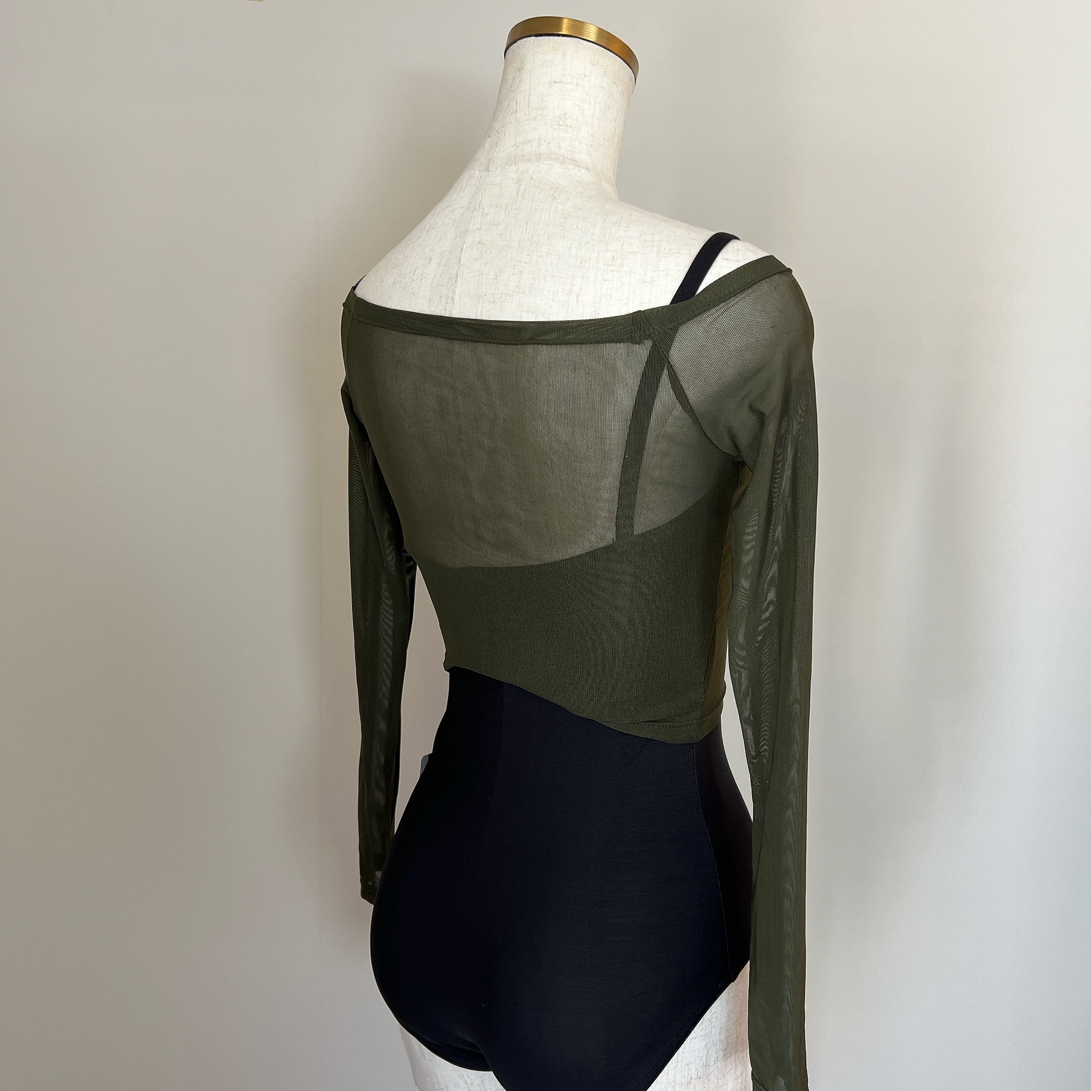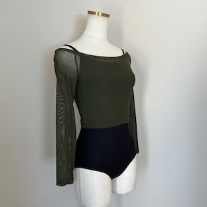 カーキ色がスタイリッシュな印象なメッシュ素材を使用したストレッチトップス。