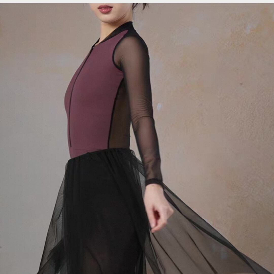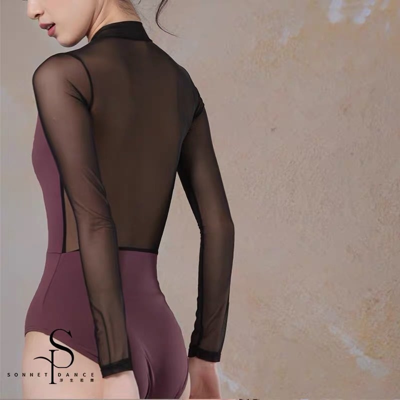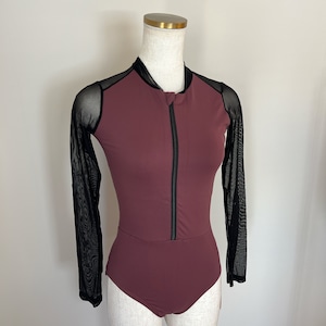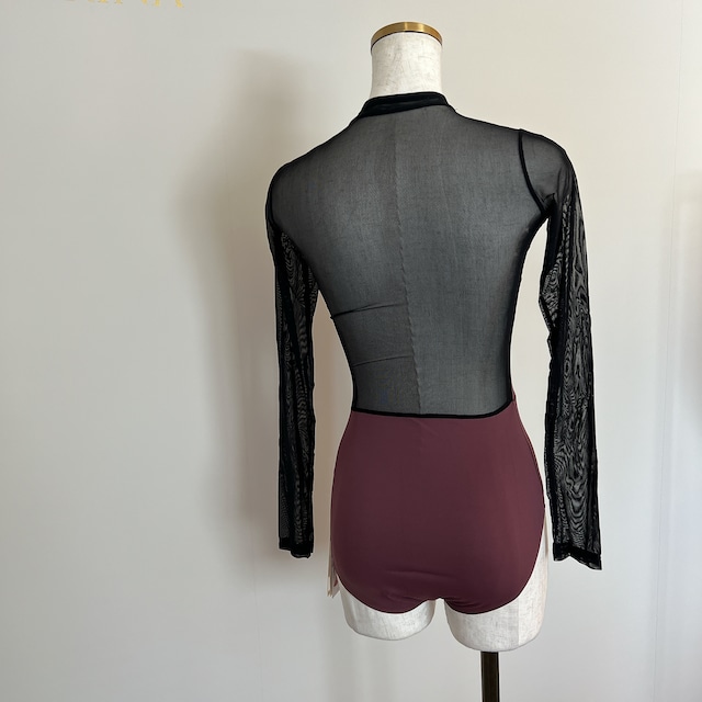 バックシースルー ジップアップ ロングスリーブ バレエレオタード(プラムボルドー)