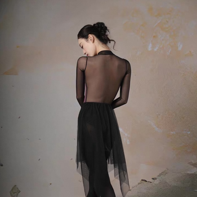 背中から腕にかけてはシースルーメッシュ素材を使用し、軽やかさのある洗練された雰囲気に。