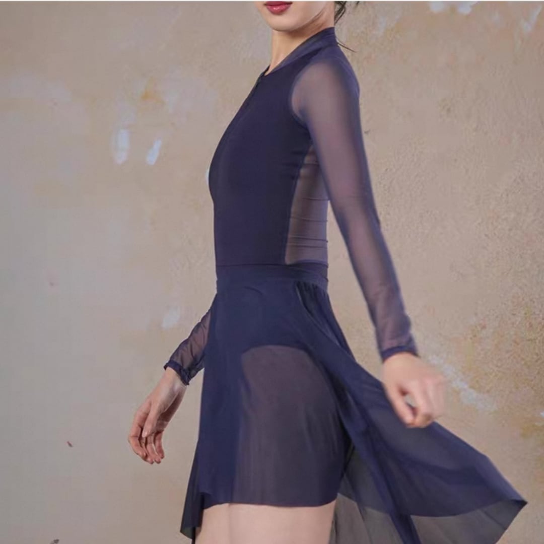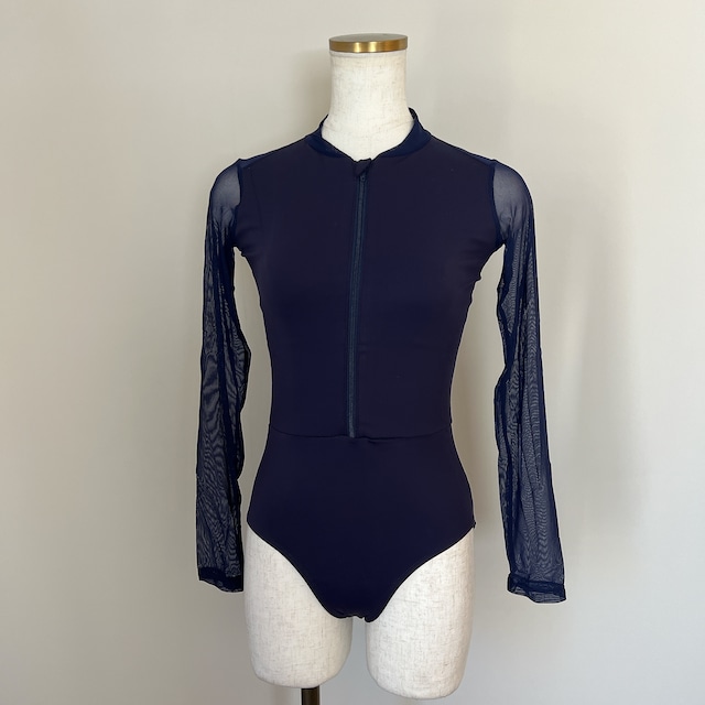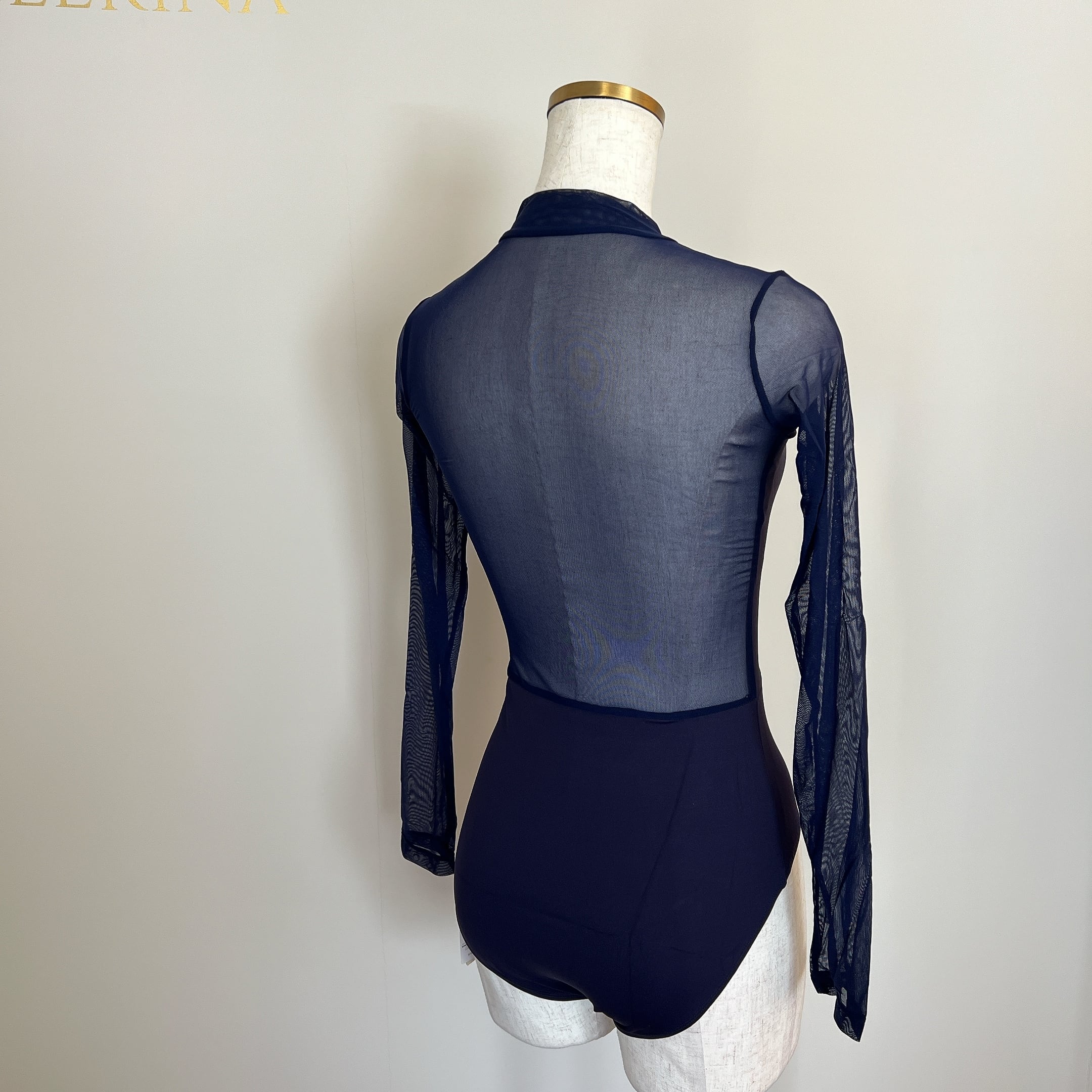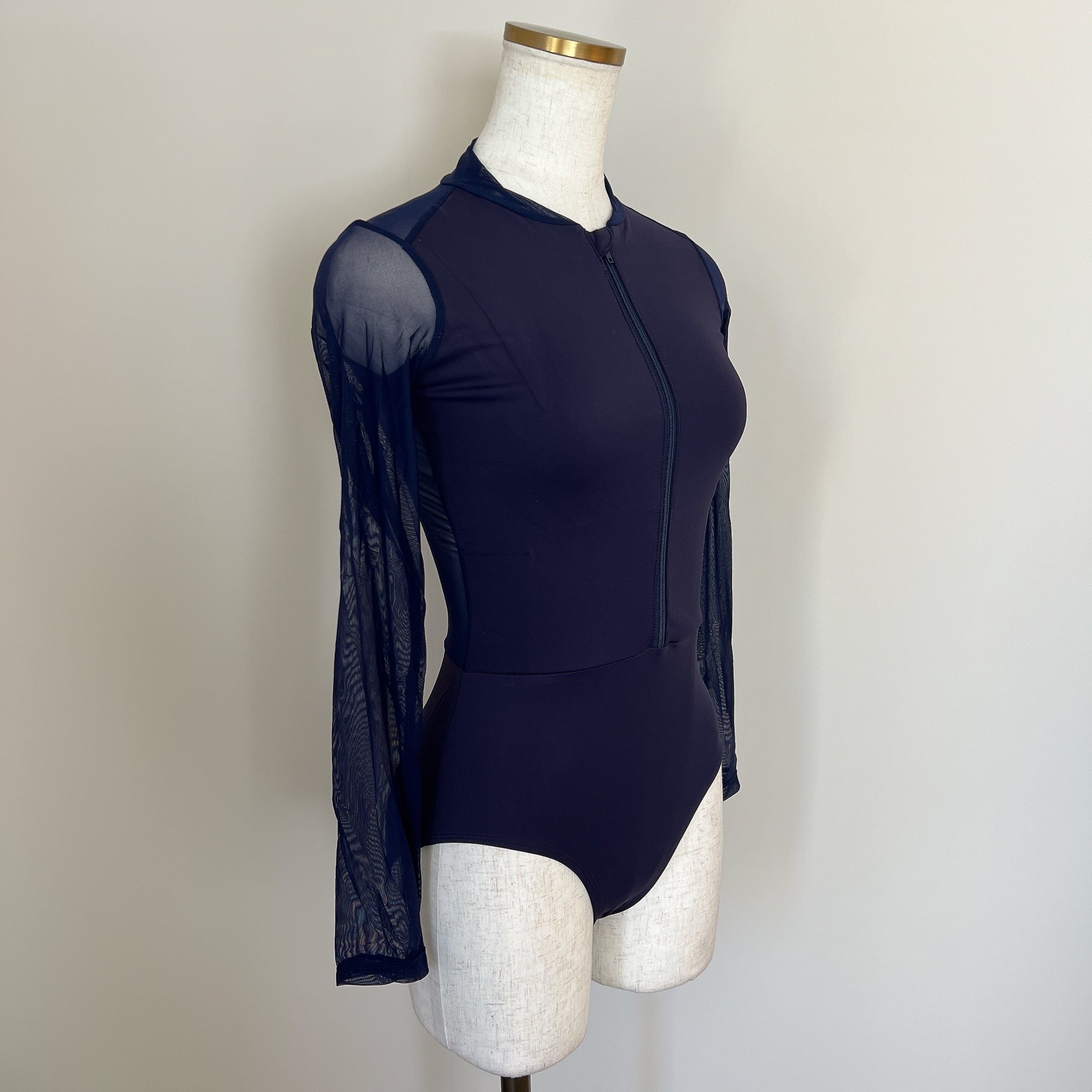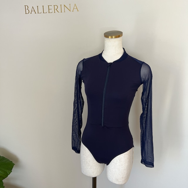バックシースルー ジップアップ ロングスリーブ バレエレオタード(ネイビー)