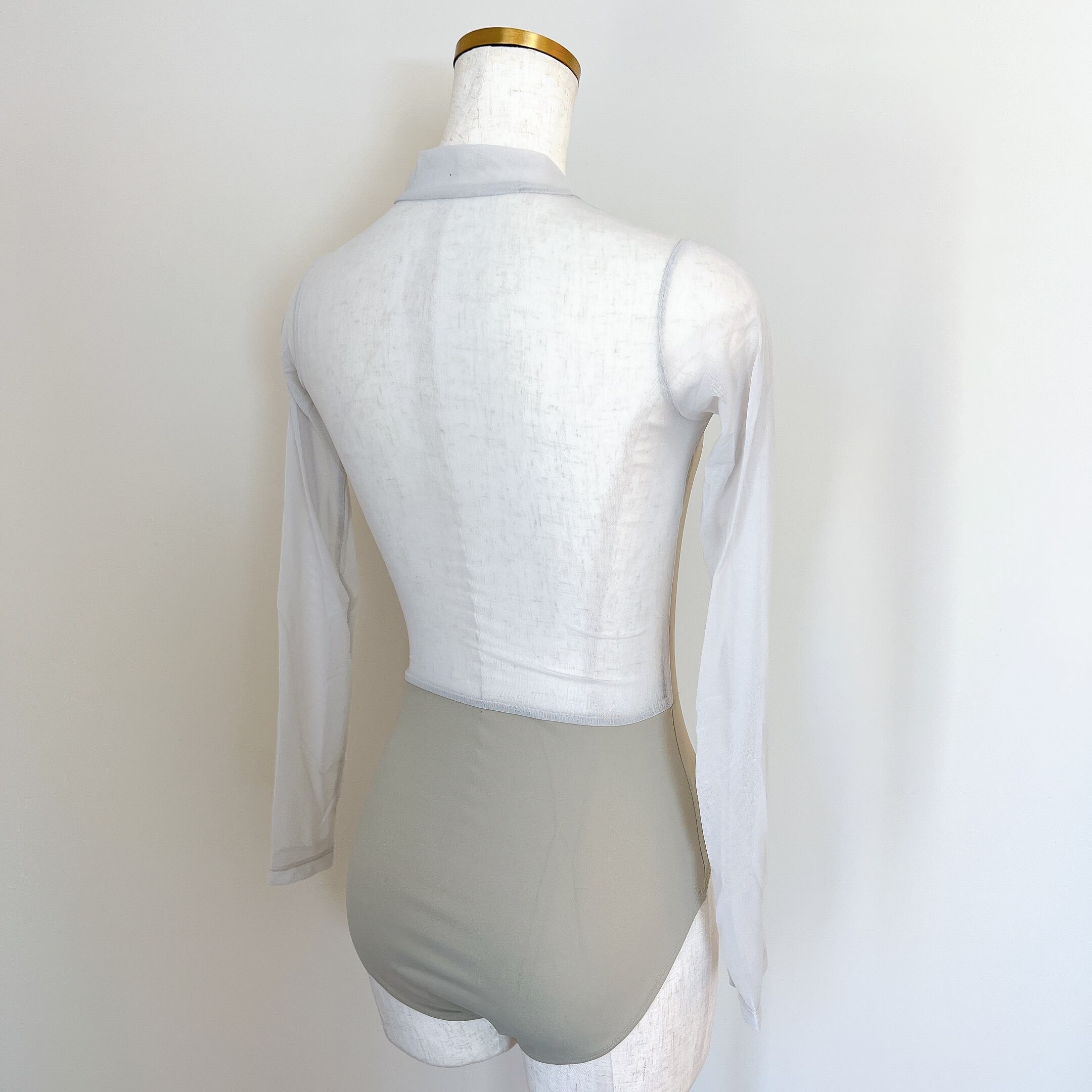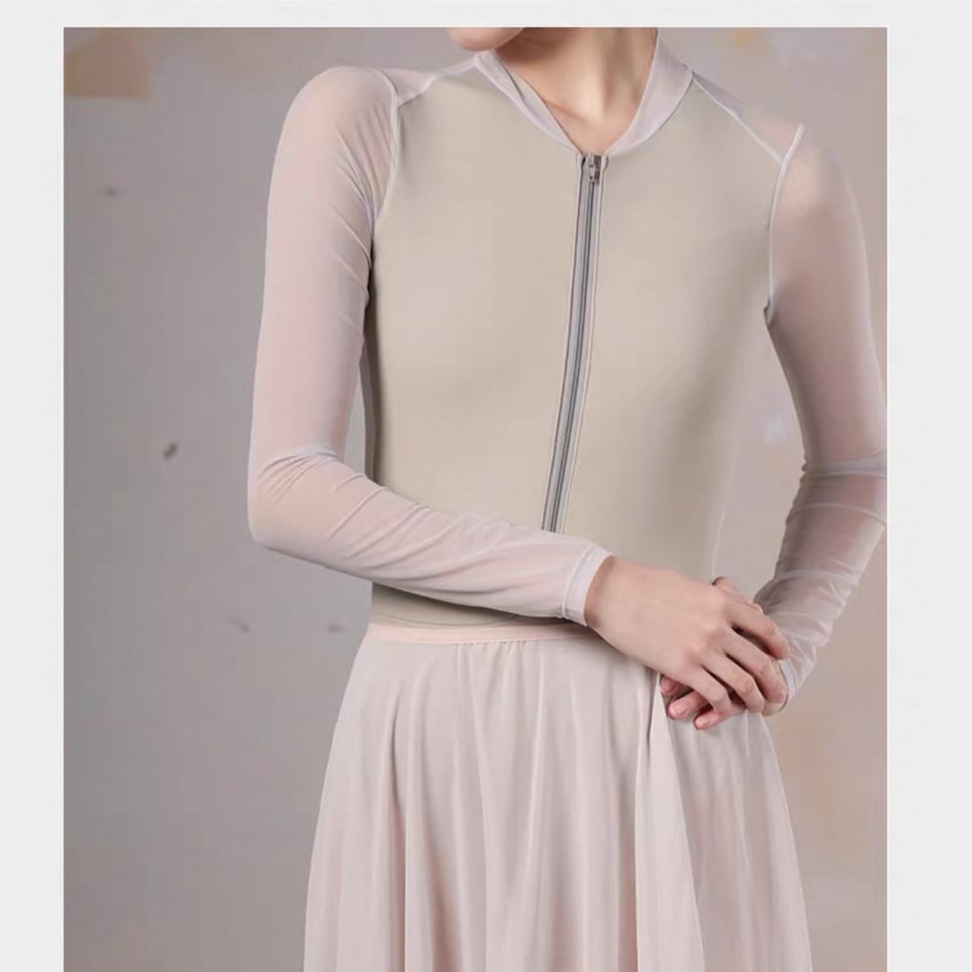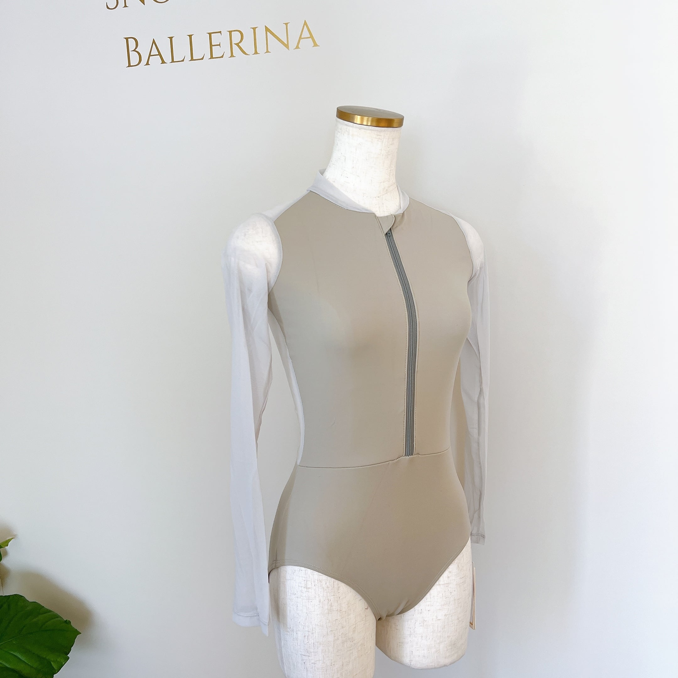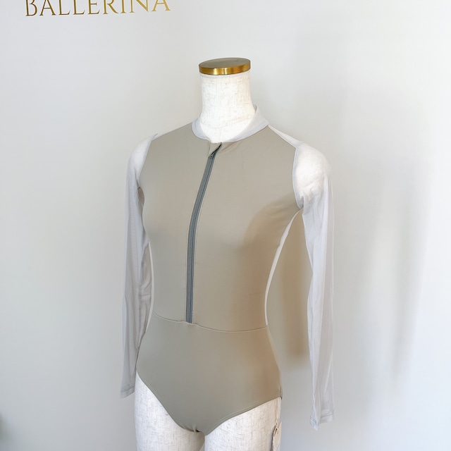 バックシースルー ジップアップ ロングスリーブ バレエレオタード(シルバーセージ)