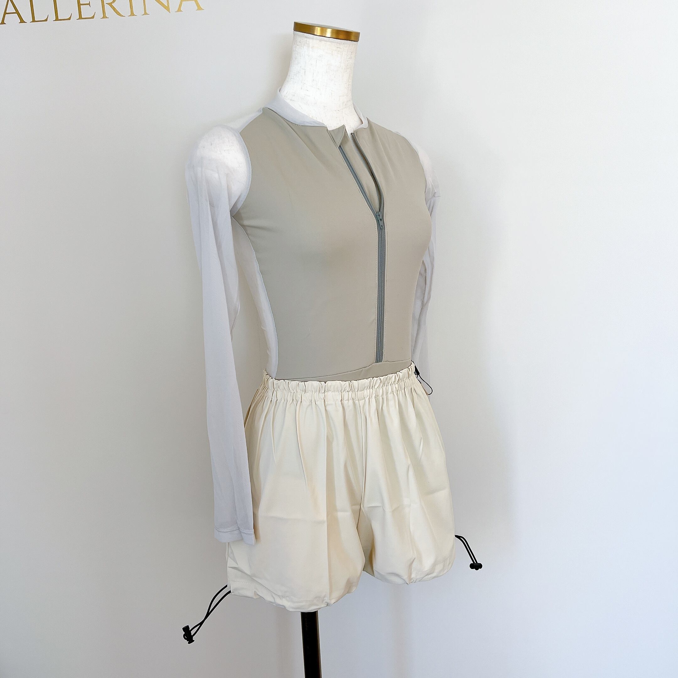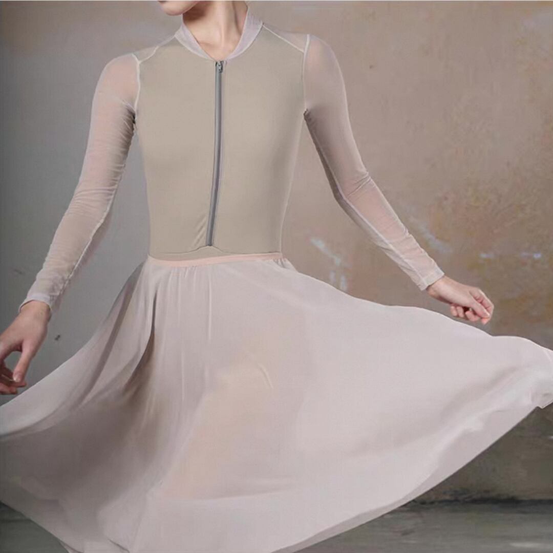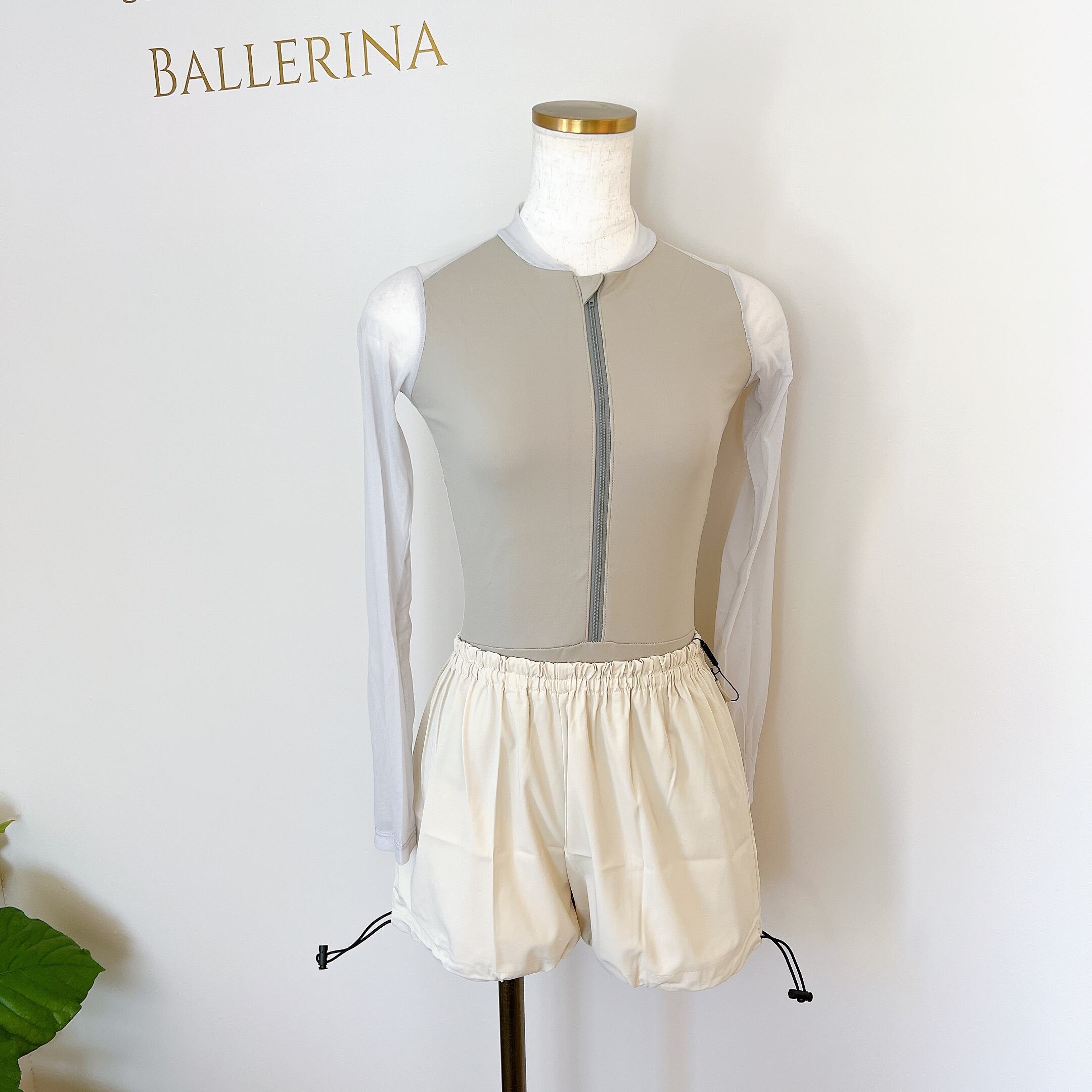 バックシースルー ジップアップ ロングスリーブ バレエレオタード(シルバーセージ)