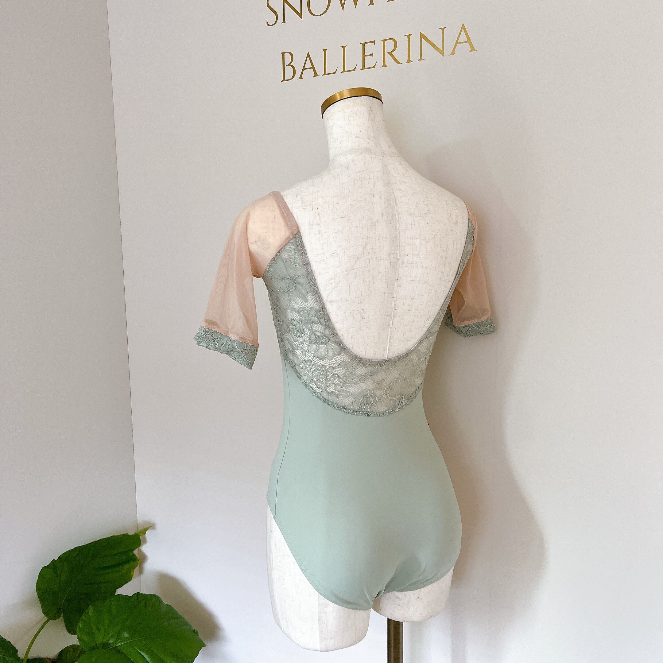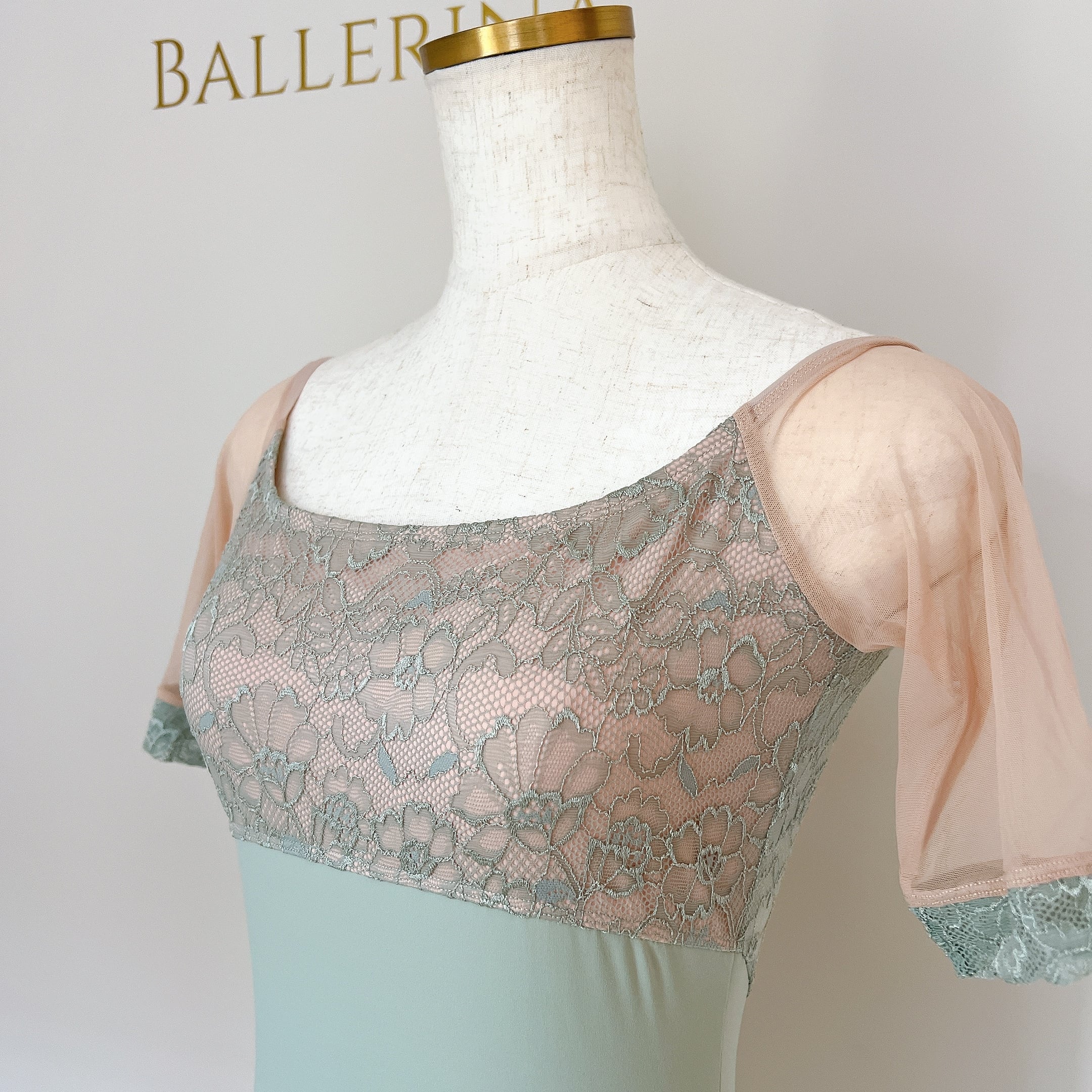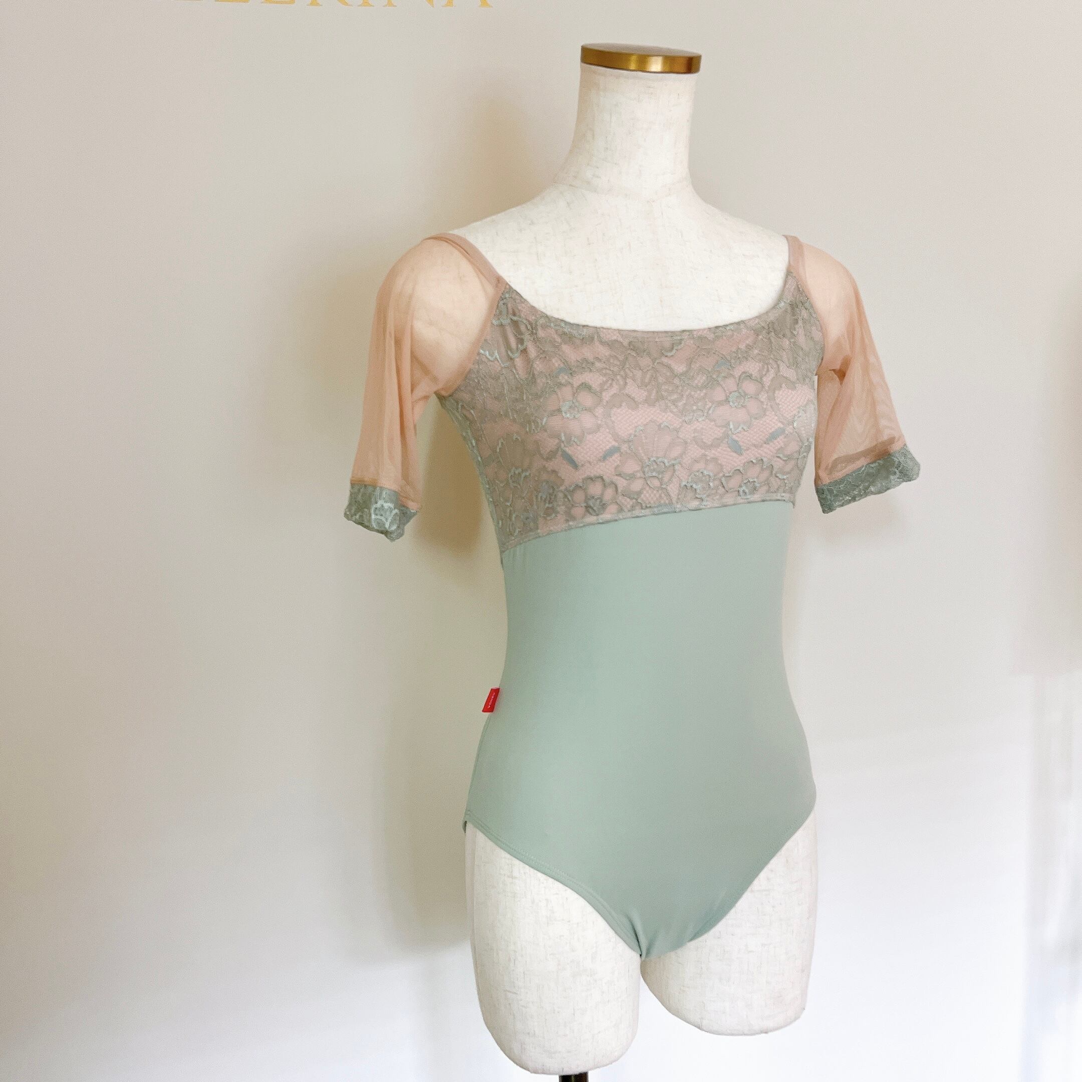 グレースレース ミディスリーブ バレエレオタード(グレイッシュグリーン)