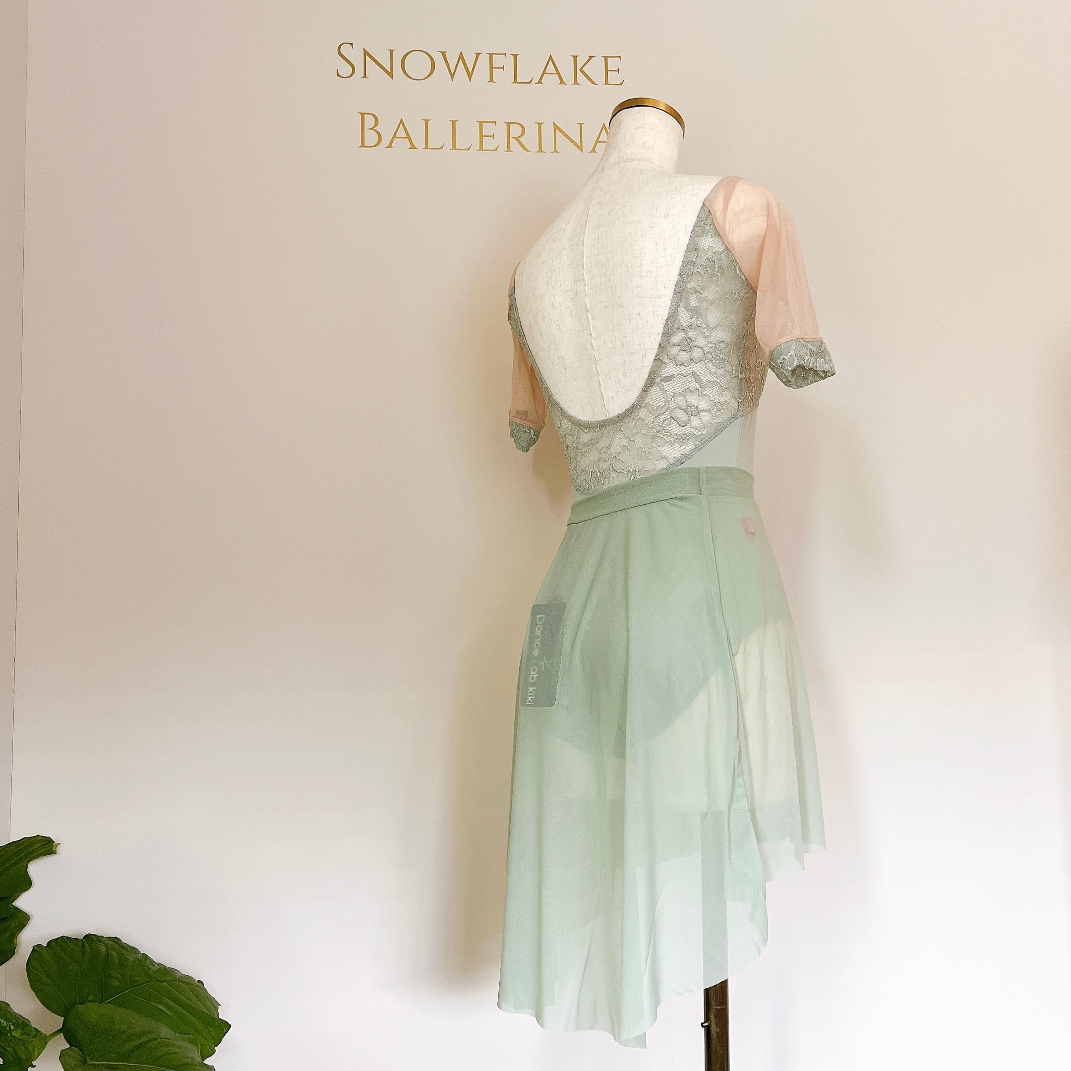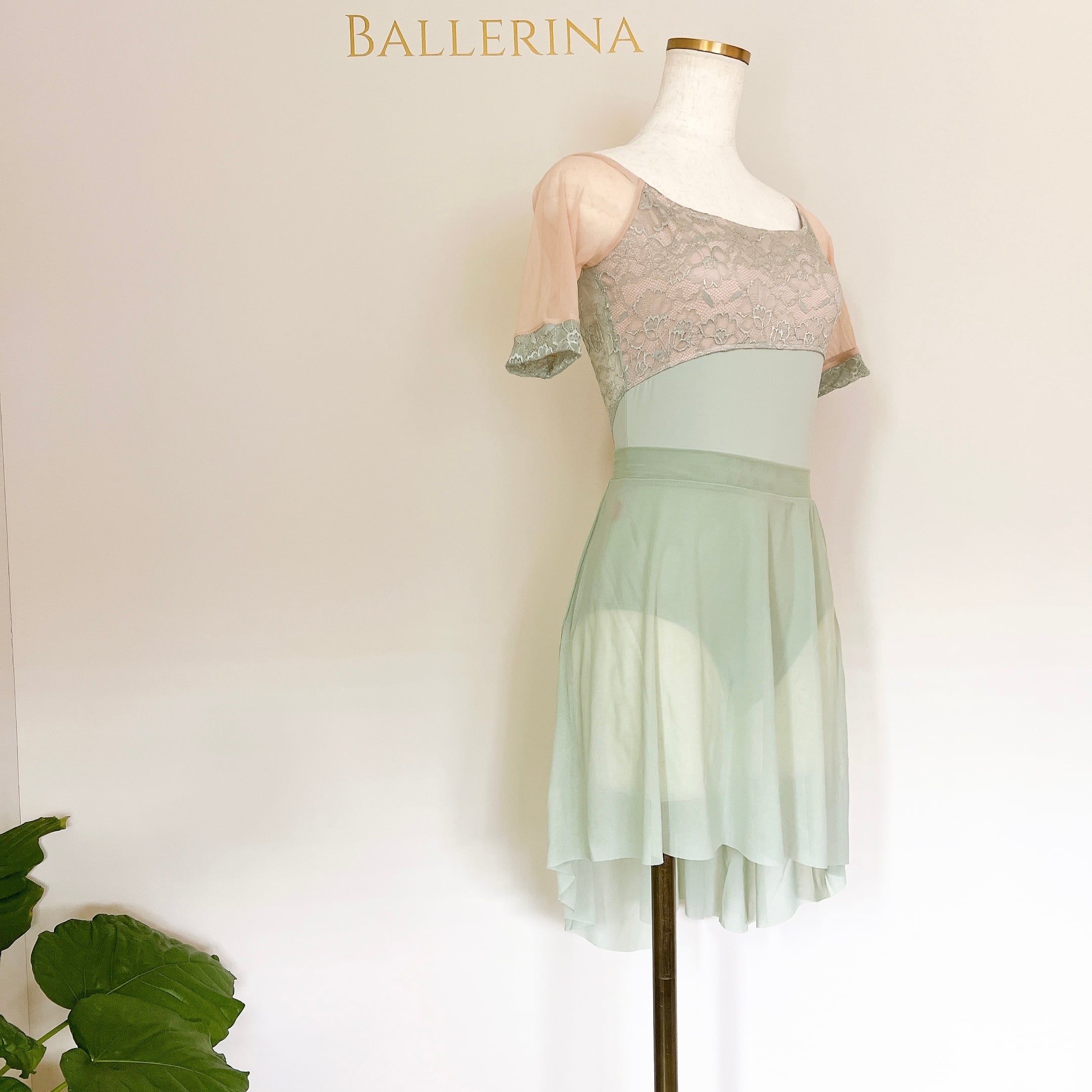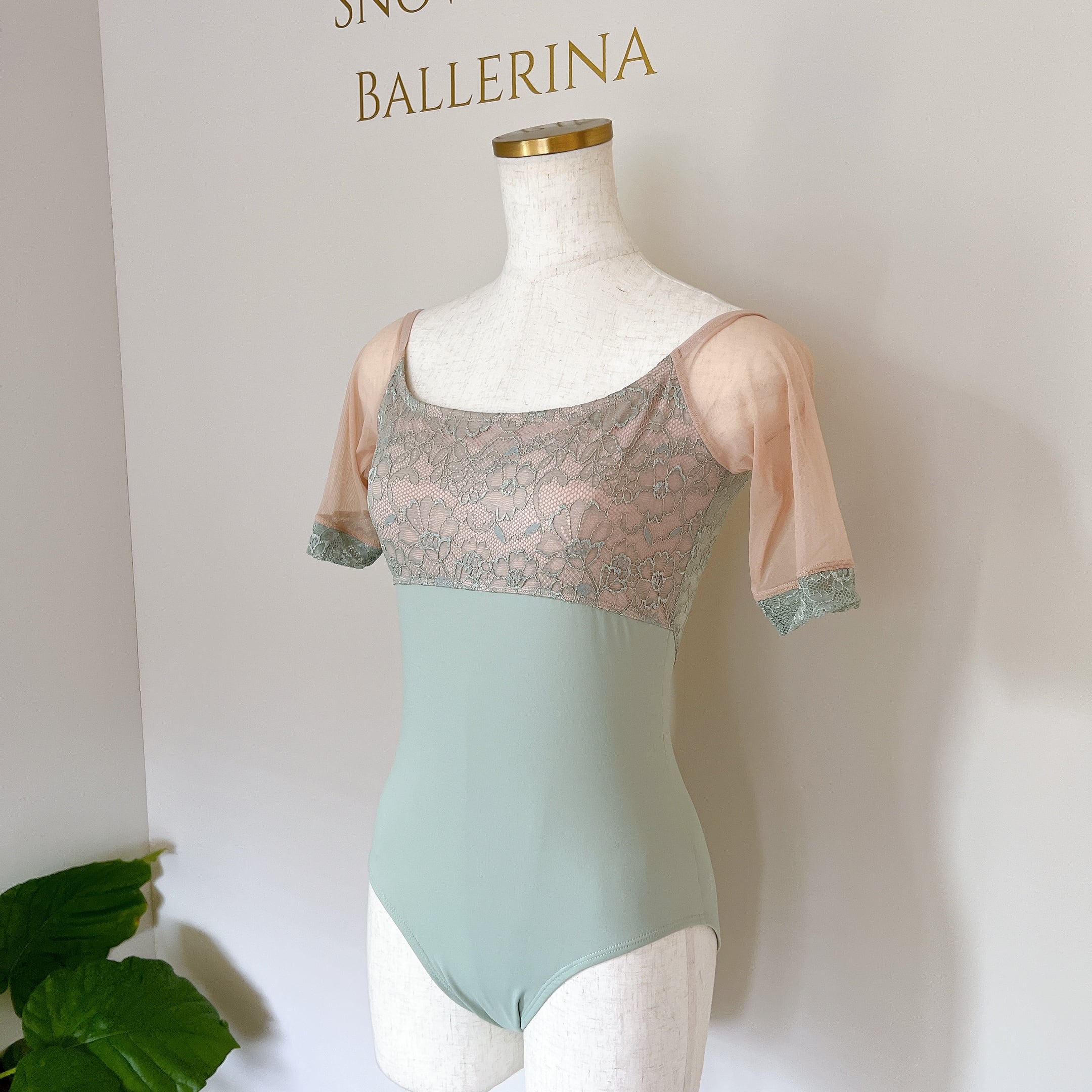 グレースレース ミディスリーブ バレエレオタード(グレイッシュグリーン)