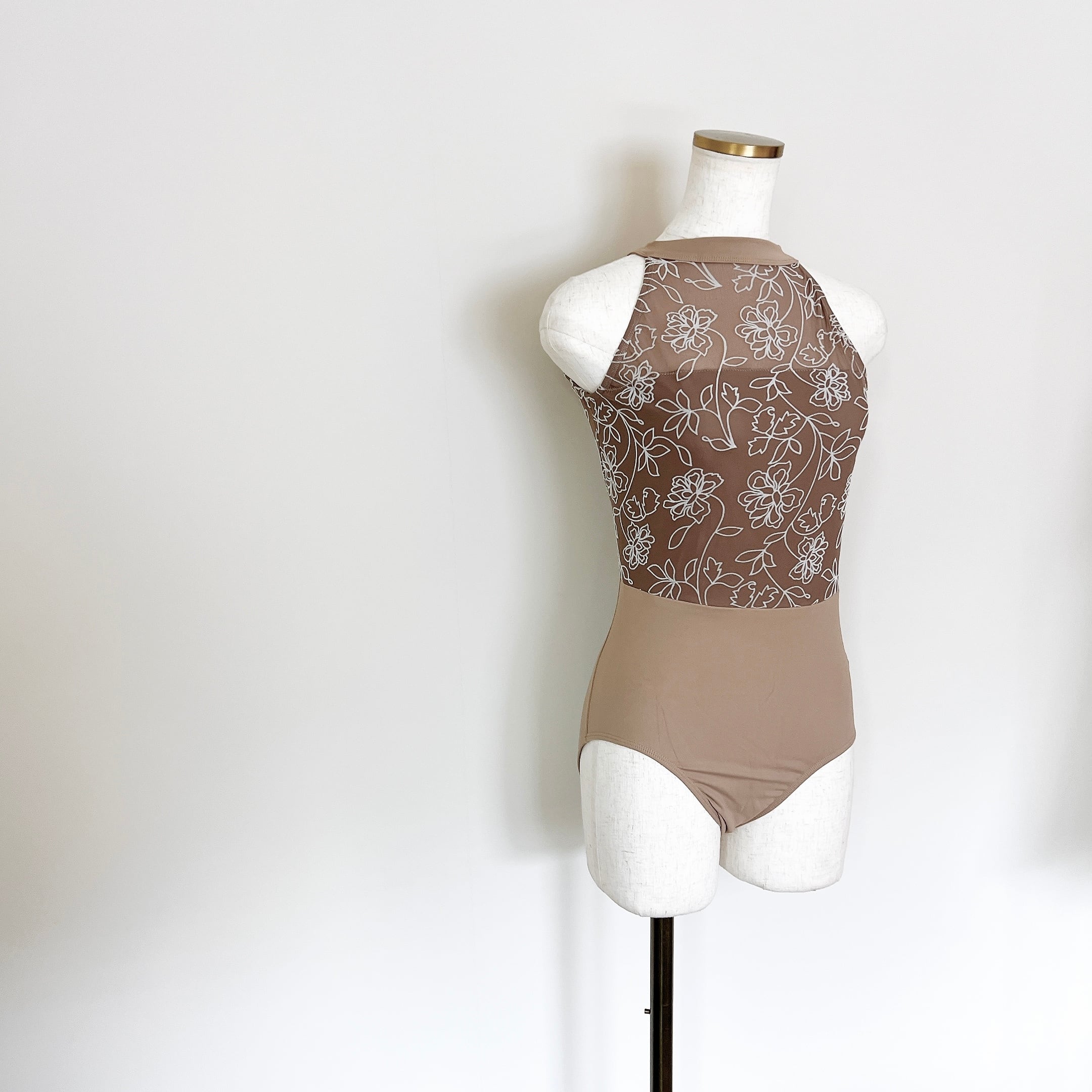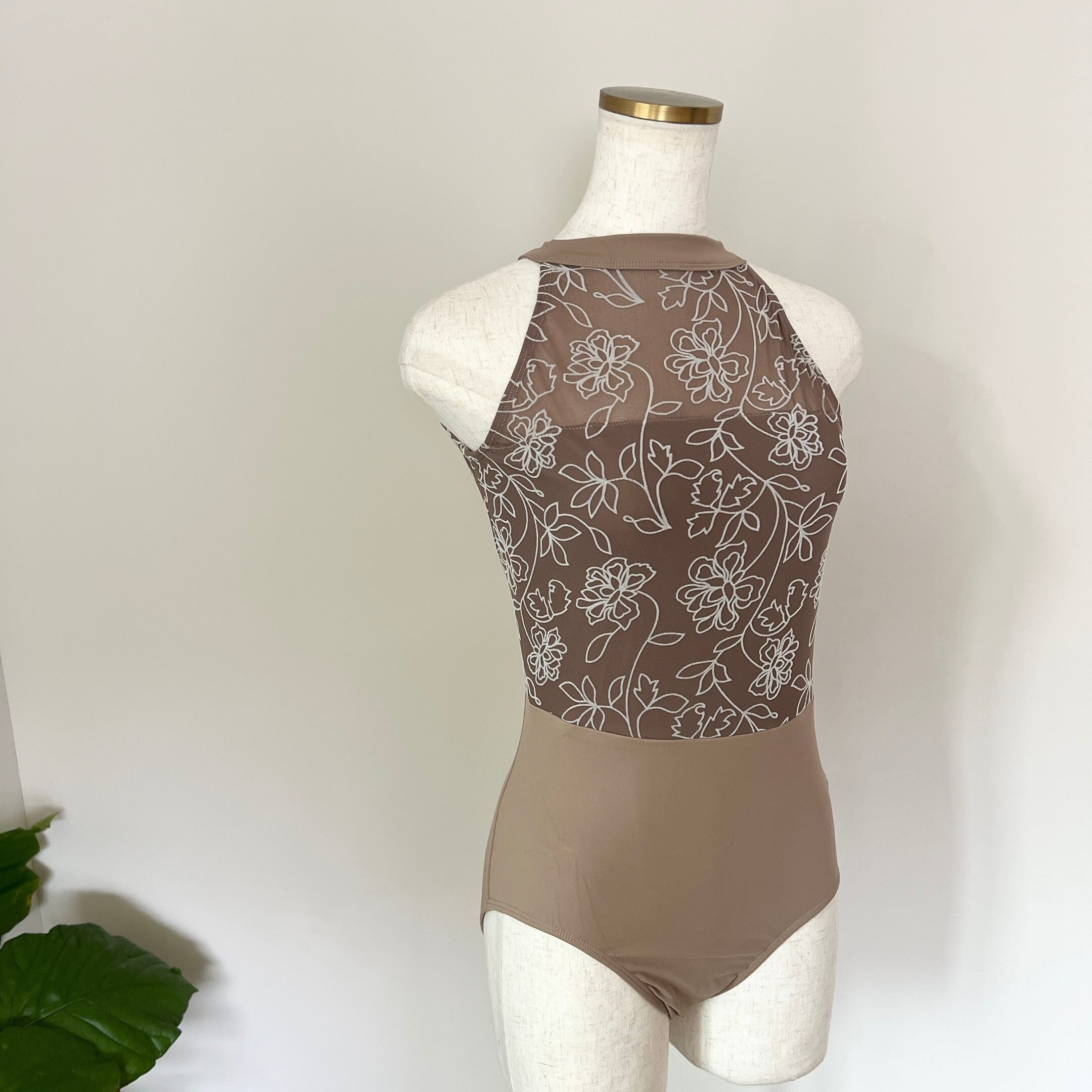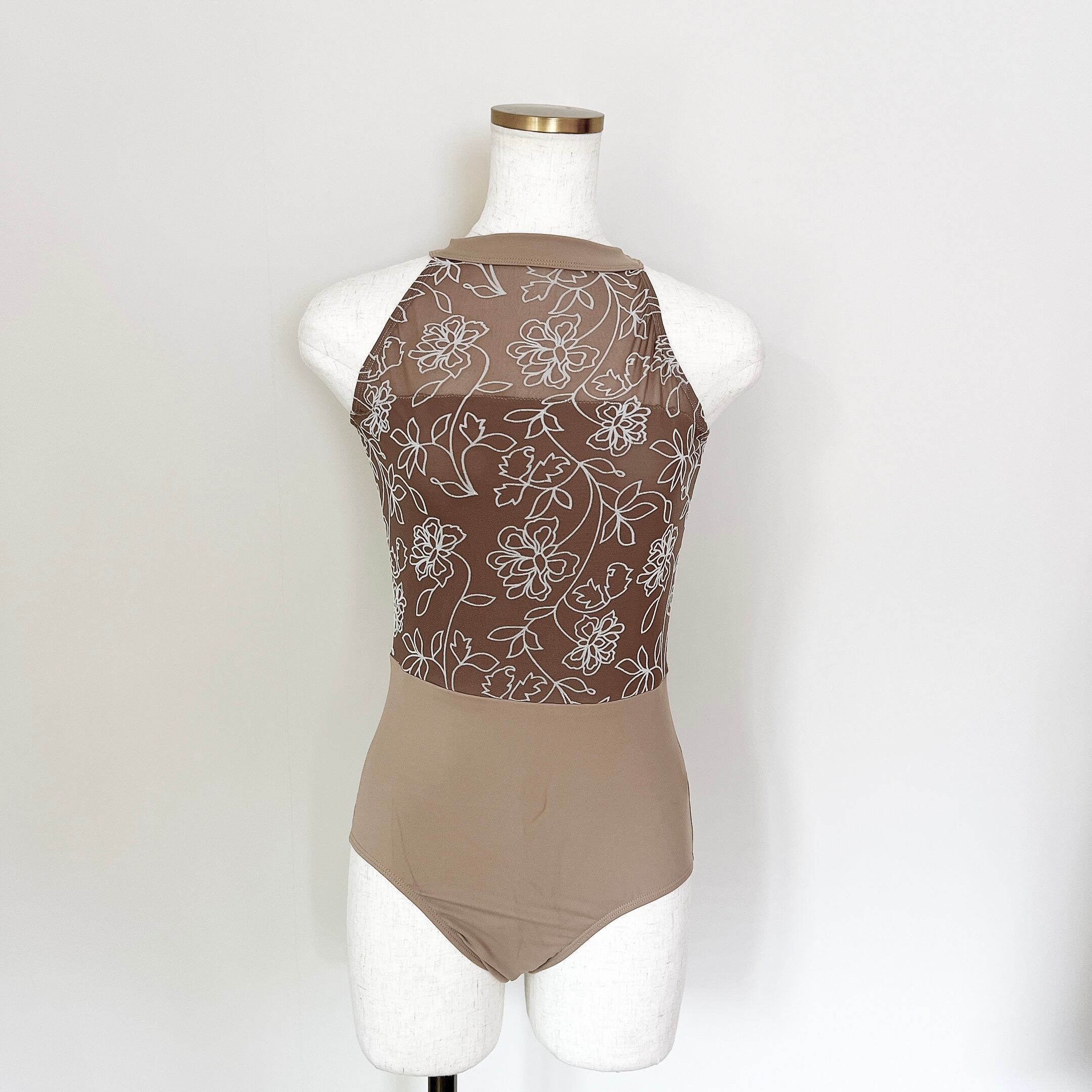 フロッキーフラワー ハイネック バレエレオタード(モカベージュ)