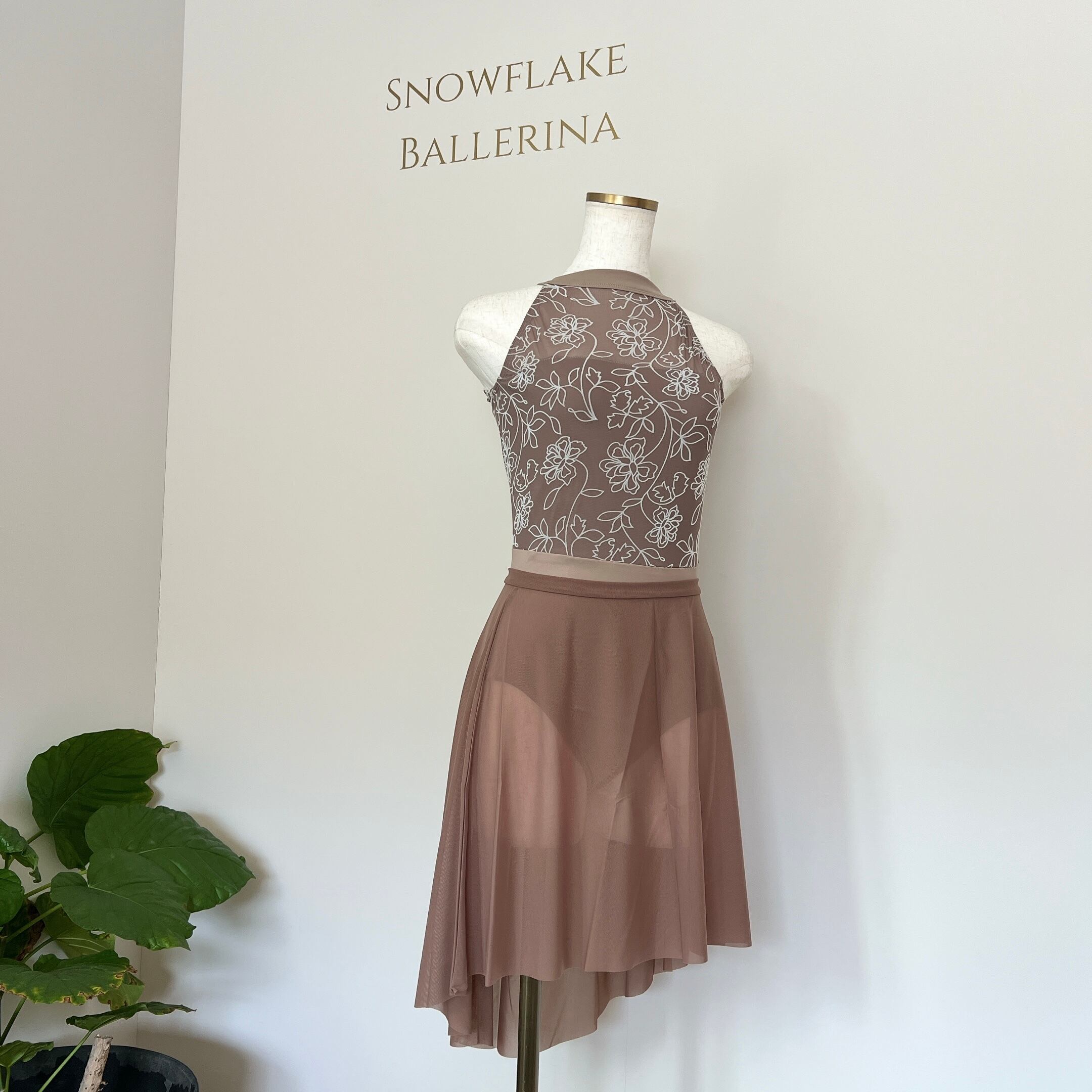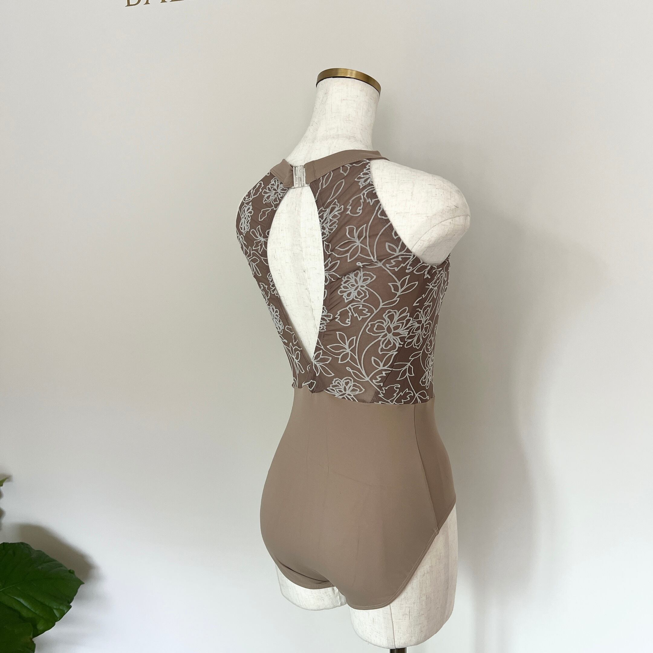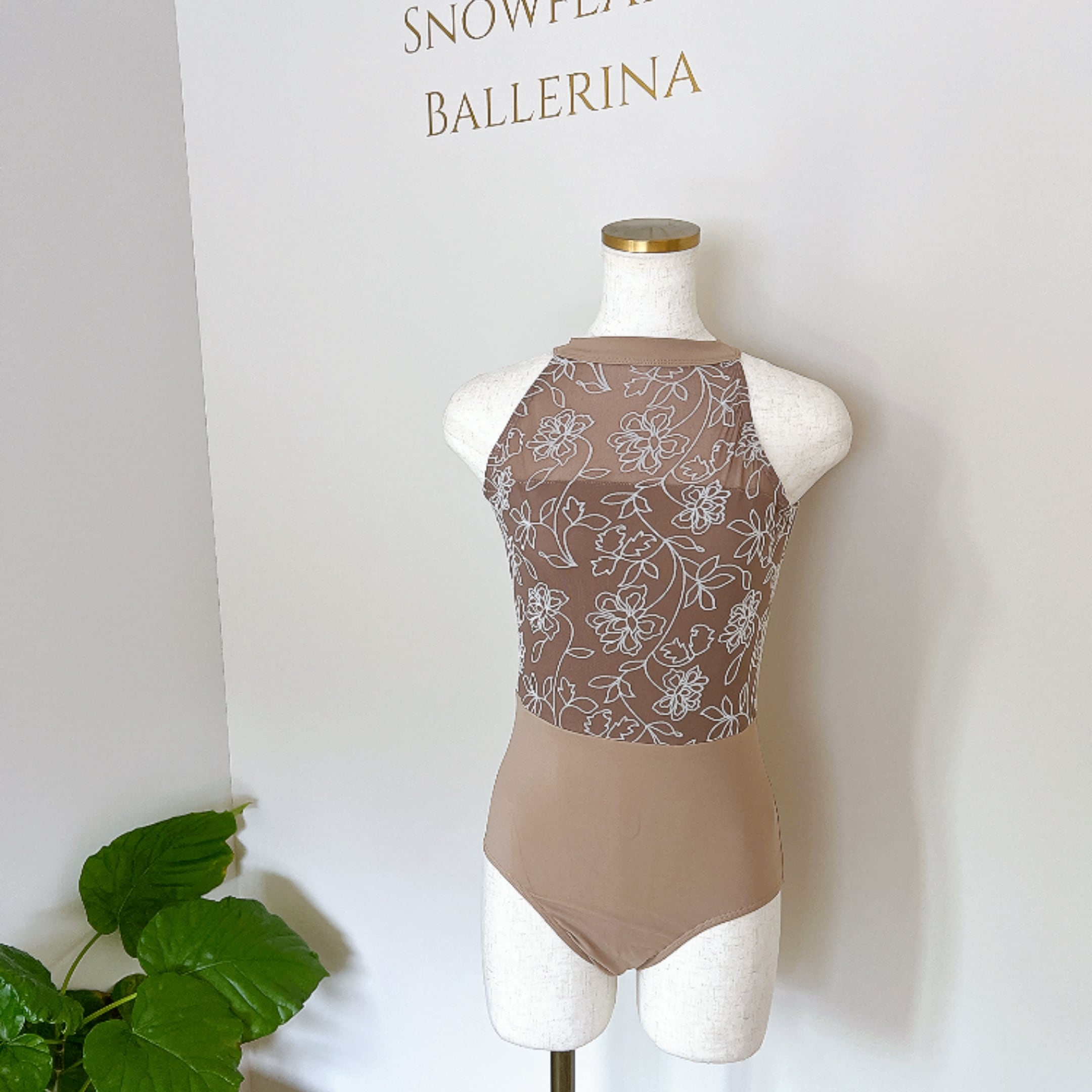 フロッキーフラワー ハイネック バレエレオタード(モカベージュ)