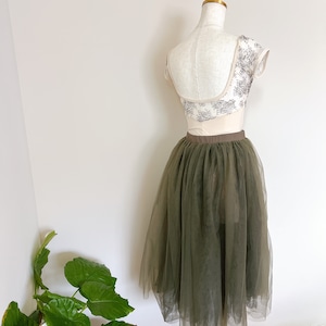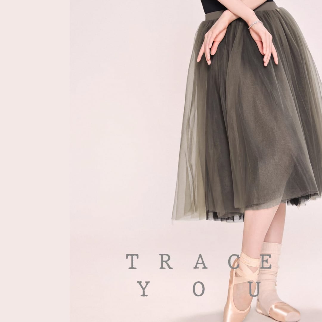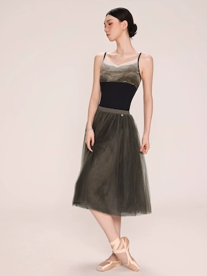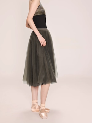 カーキと、ブラックの2色が重なり合ったチュールスカート。