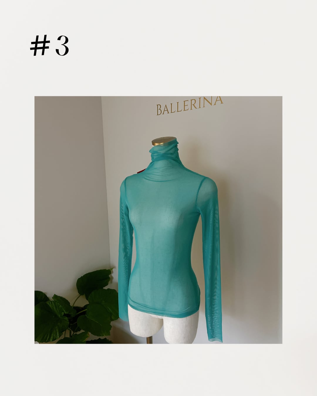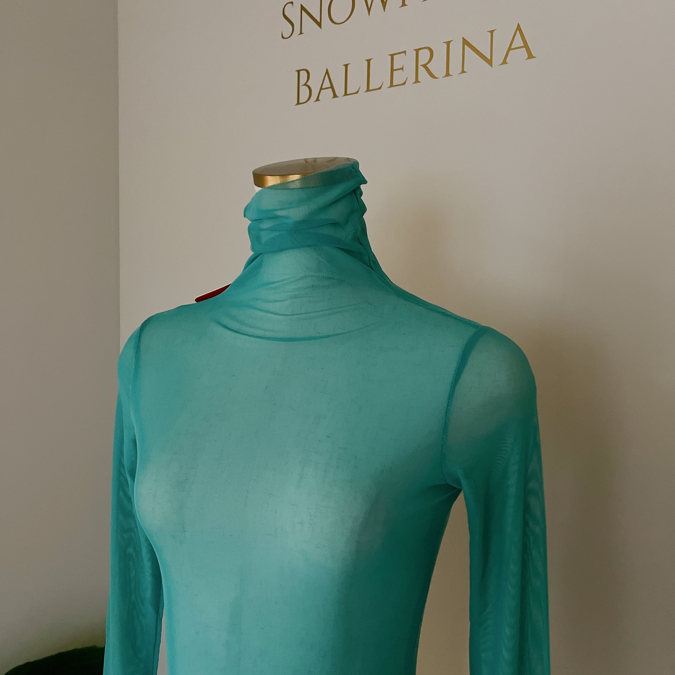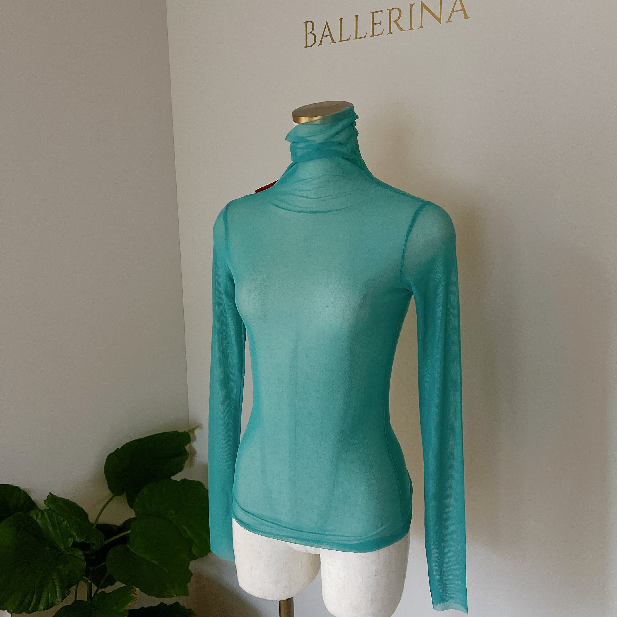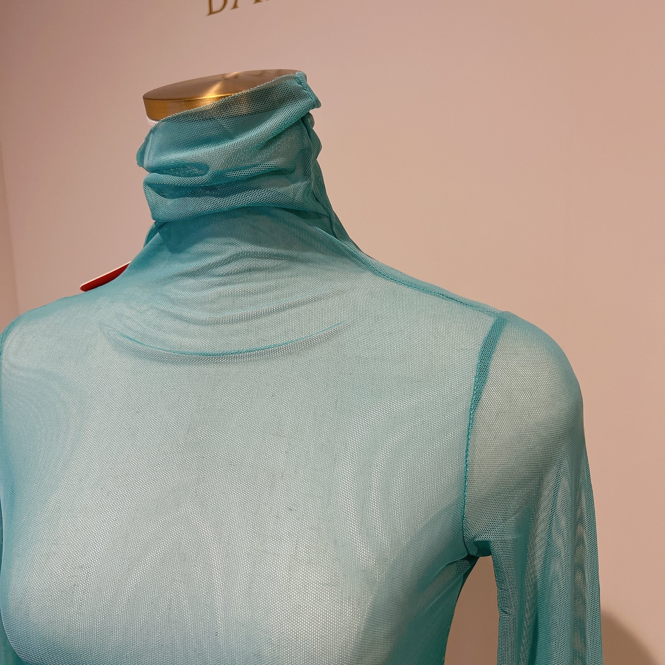 ストレッチメッシュ生地のハイネックトップス