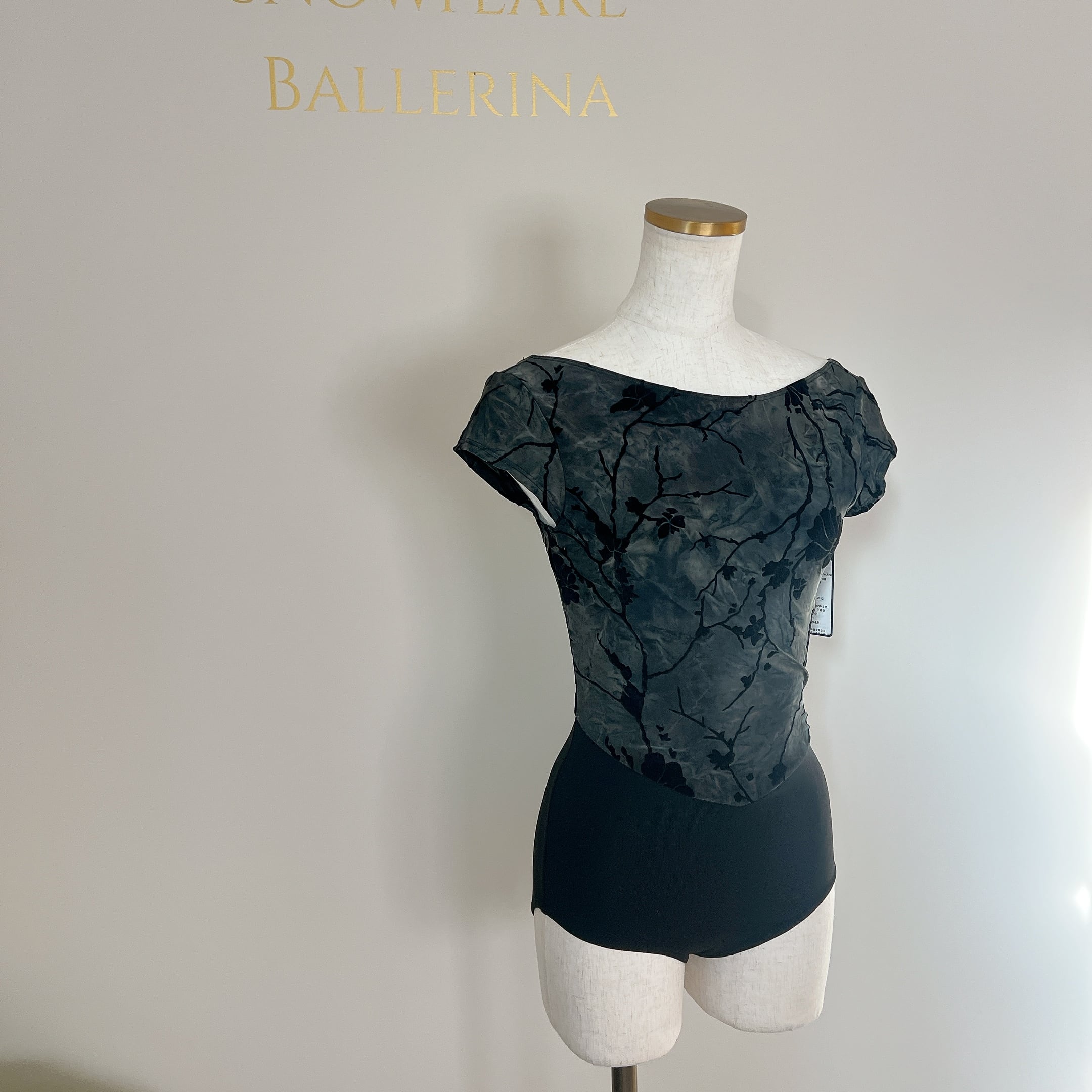 露出控えめで安心感のあるキャップスリーブレオタード。