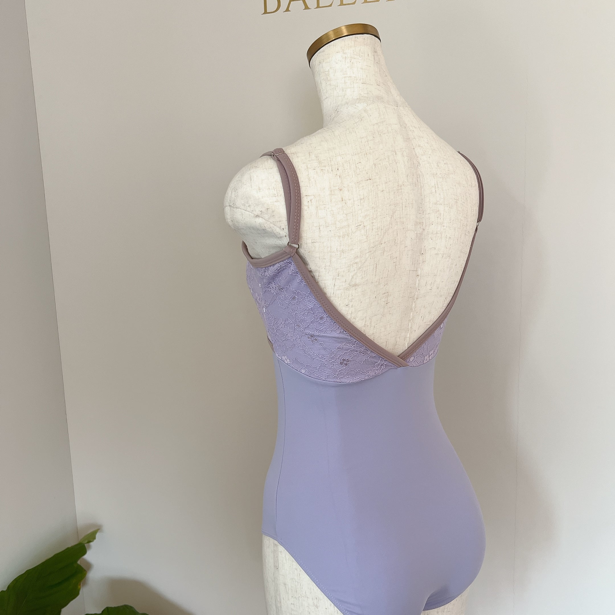 エレガンスレース トリム キャミソール バレエレオタード(ライラック)