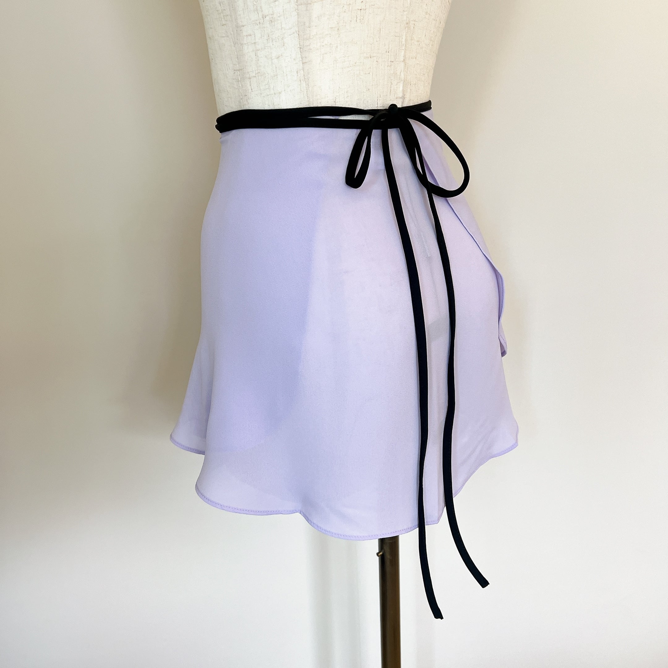 しなやかで滑らかな生地のショート丈巻きスカート。