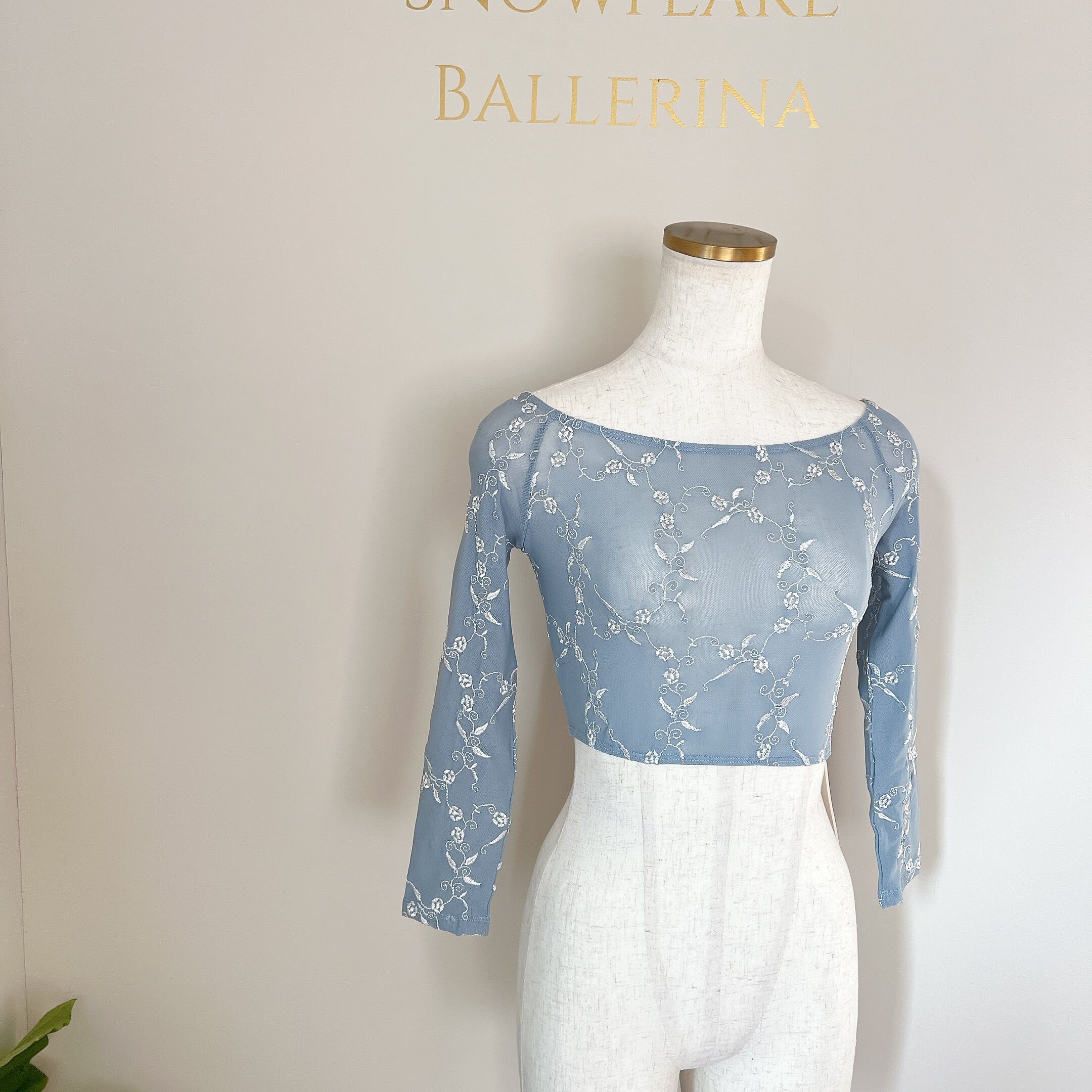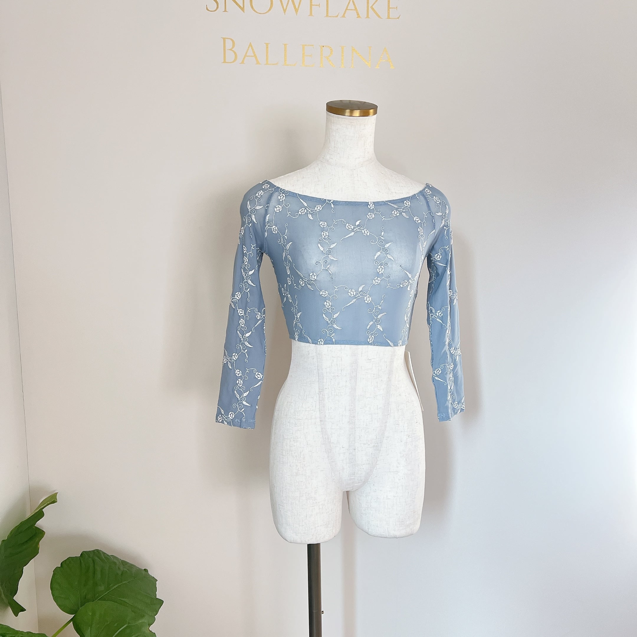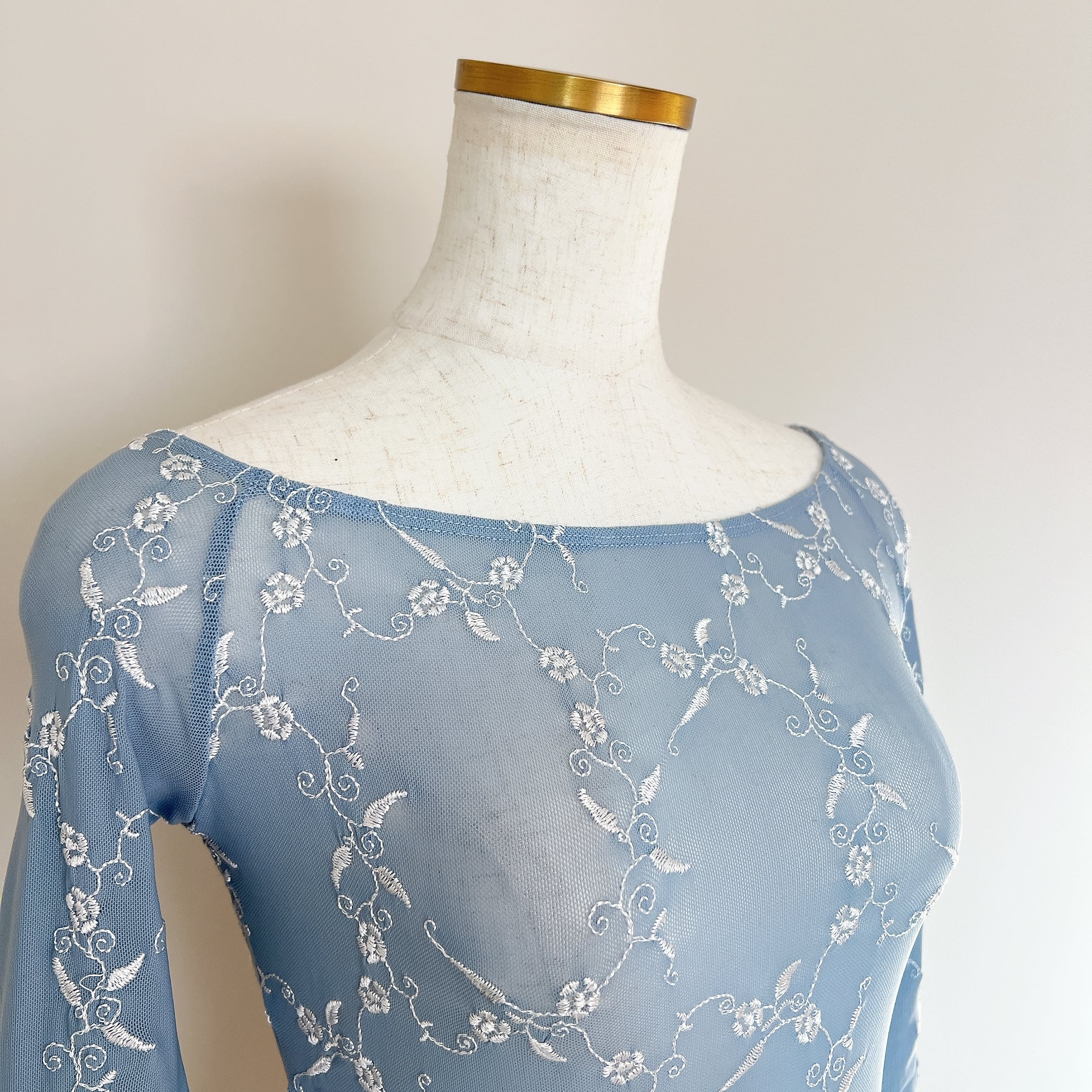 メッシュ素材にお花の刺繍を施した使用したトップス。