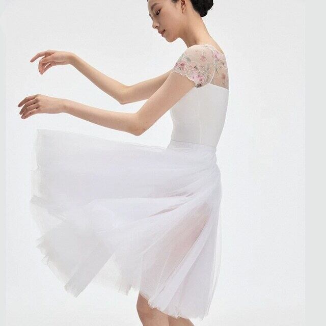 floral ワイドレース オフショルダー バレエレオタード (White)Lサイズ