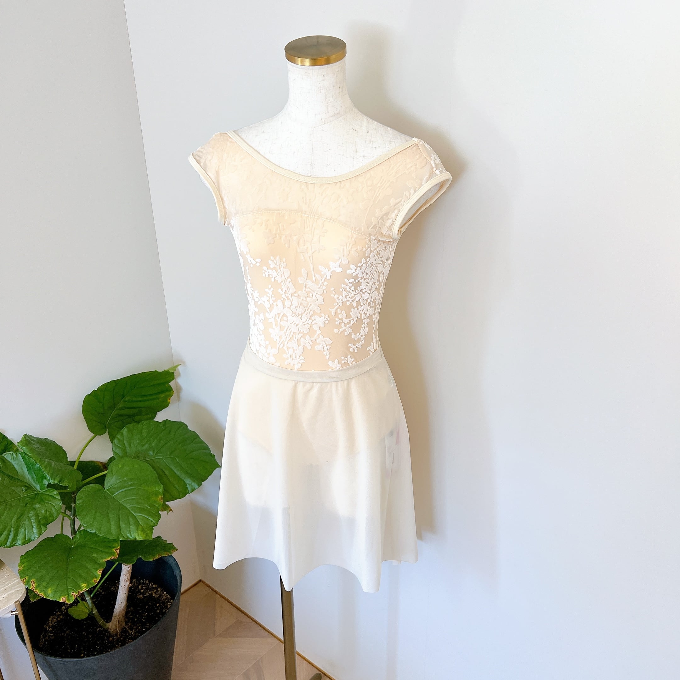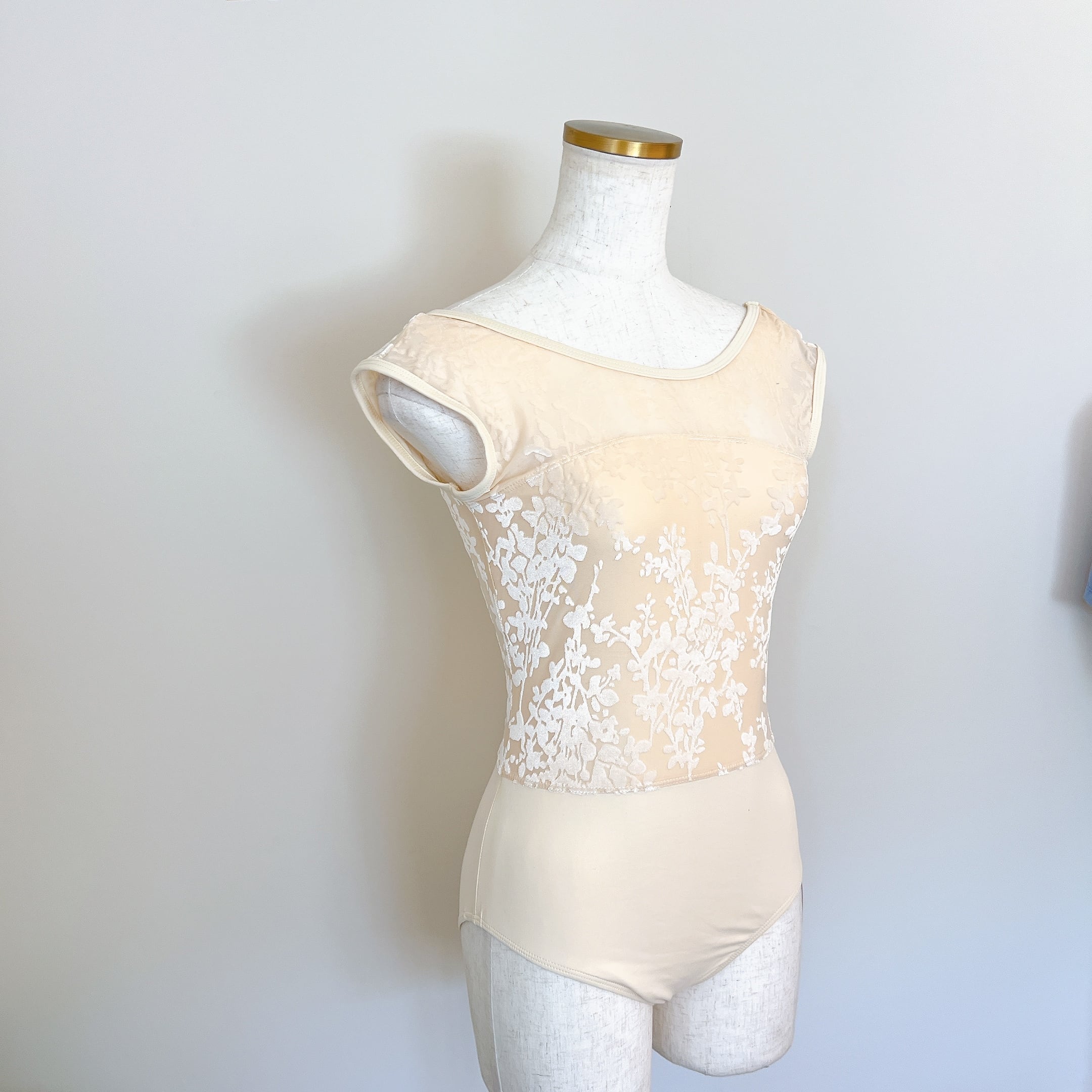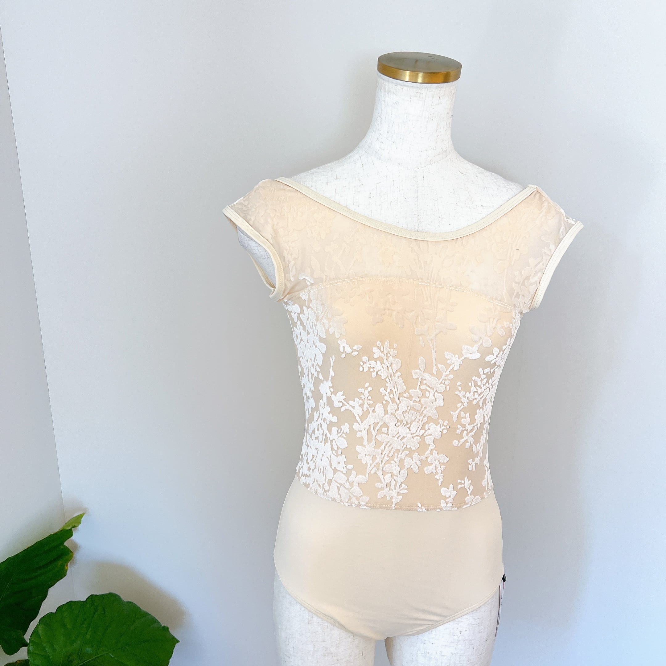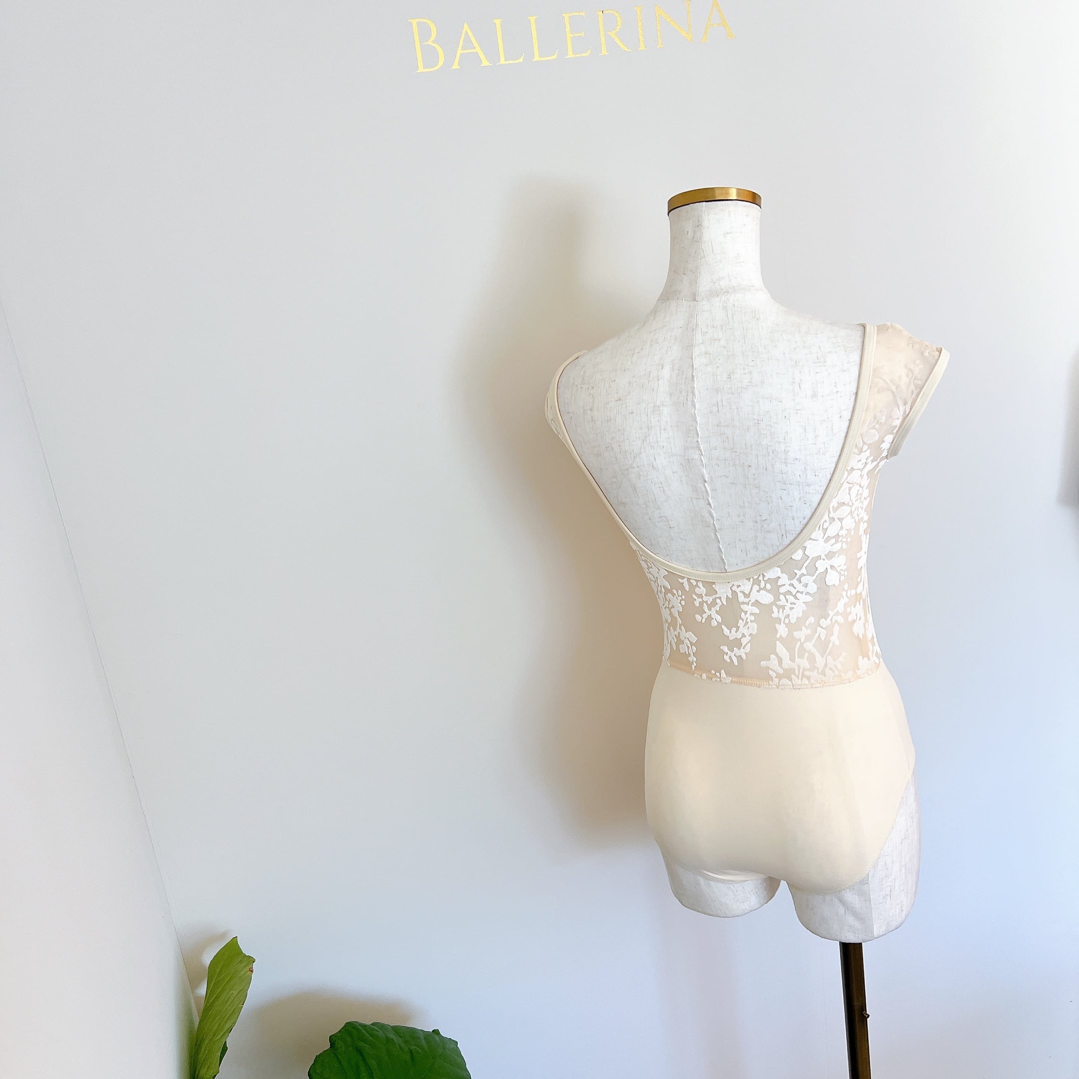 繊細なフロッキーフラワーが美しい、エレガントなレオタード。