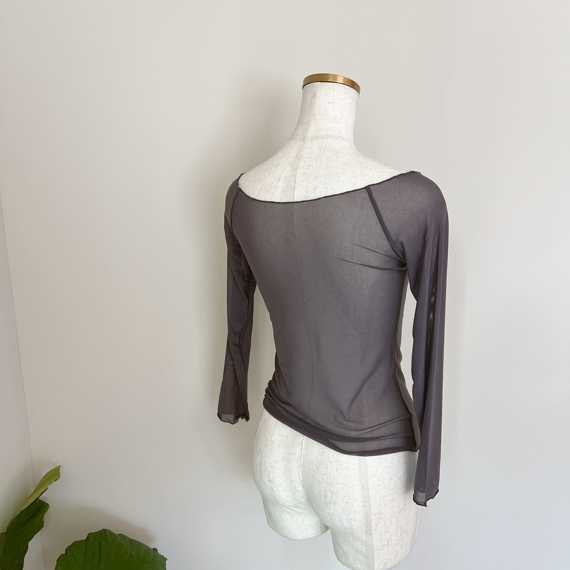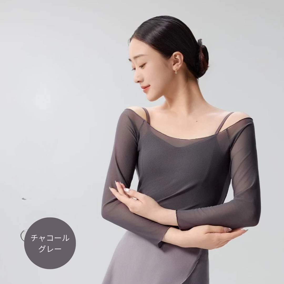 ストレッチの効いたメッシュ素材の七分丈トップス。