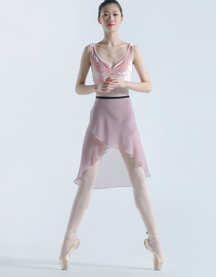 グレイッシュなカラーなので、どんなレオタードにも合わせやすくおしゃれなスカート。