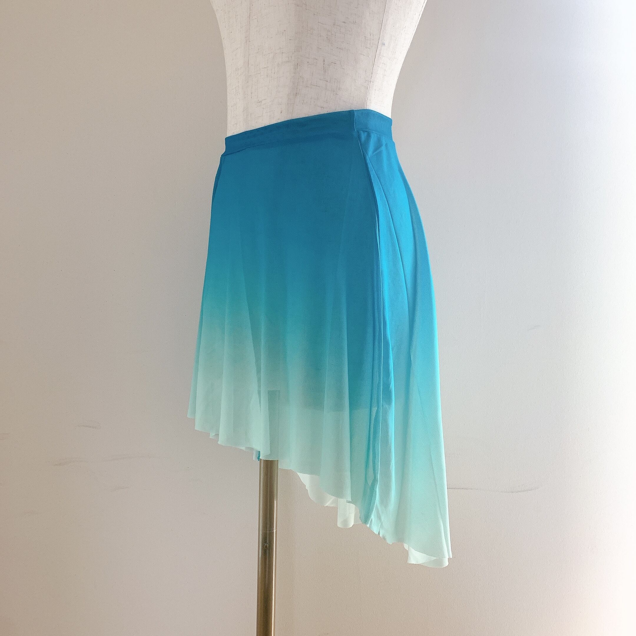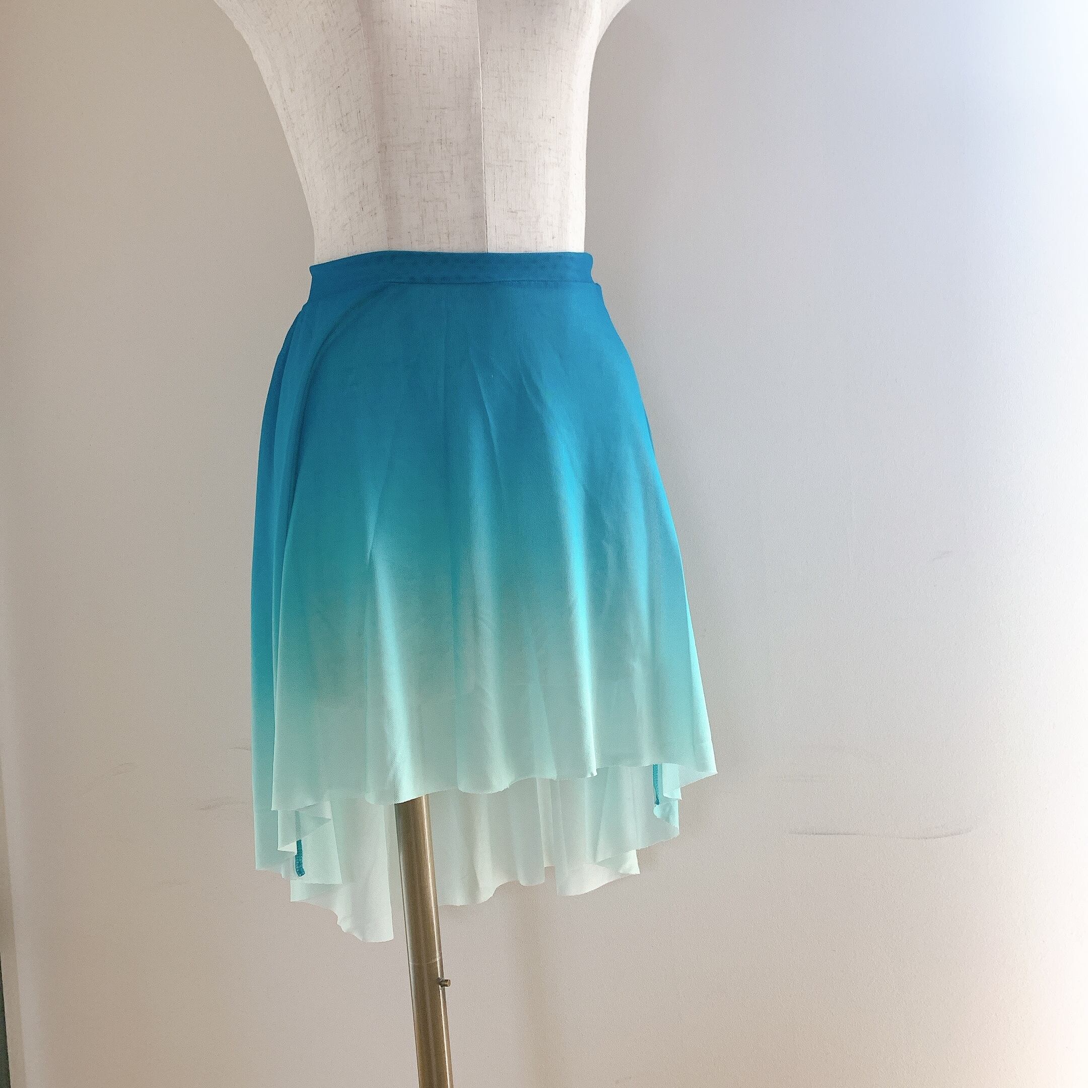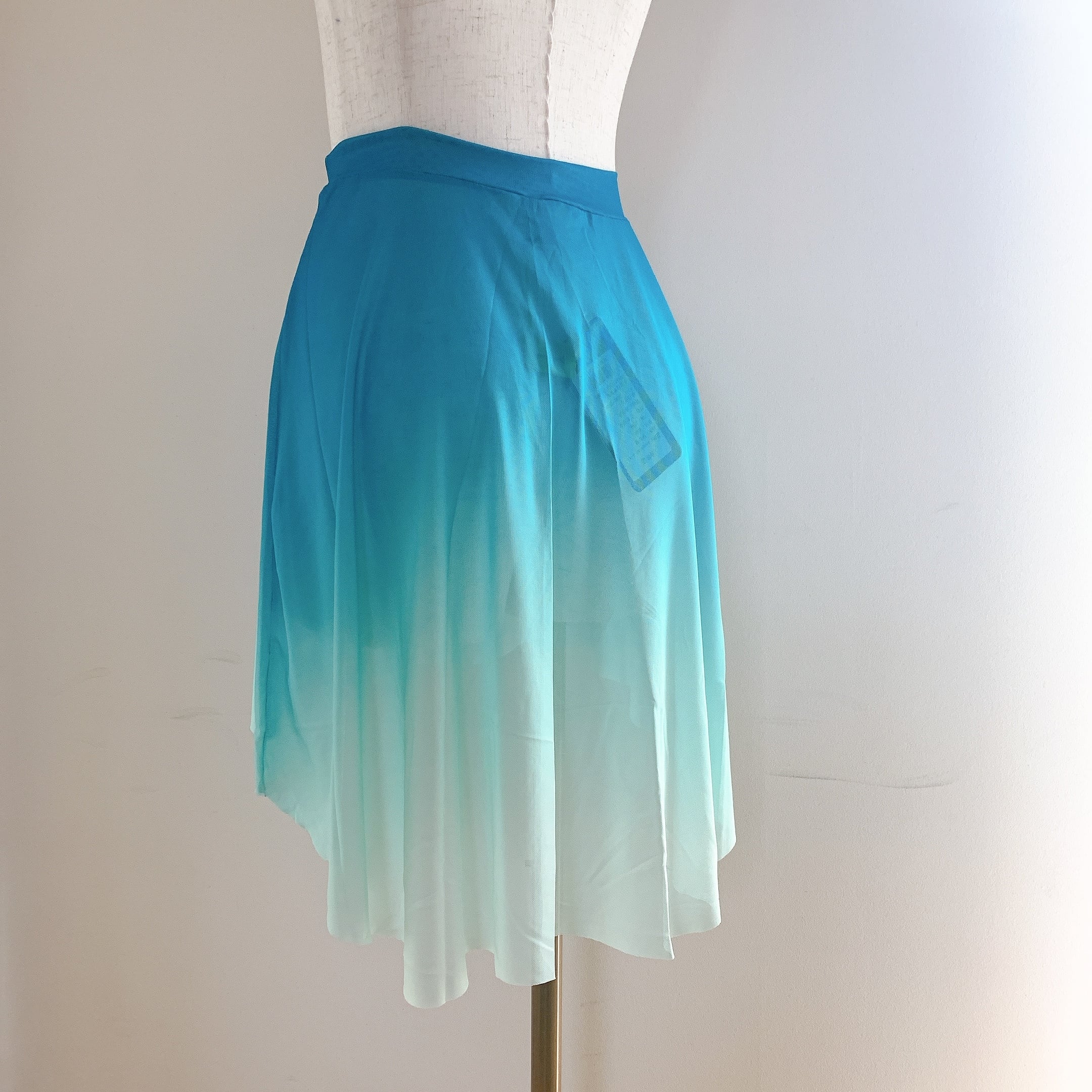 鮮やかなブルーと裾にかけてのグラデーションが美しいスカート。