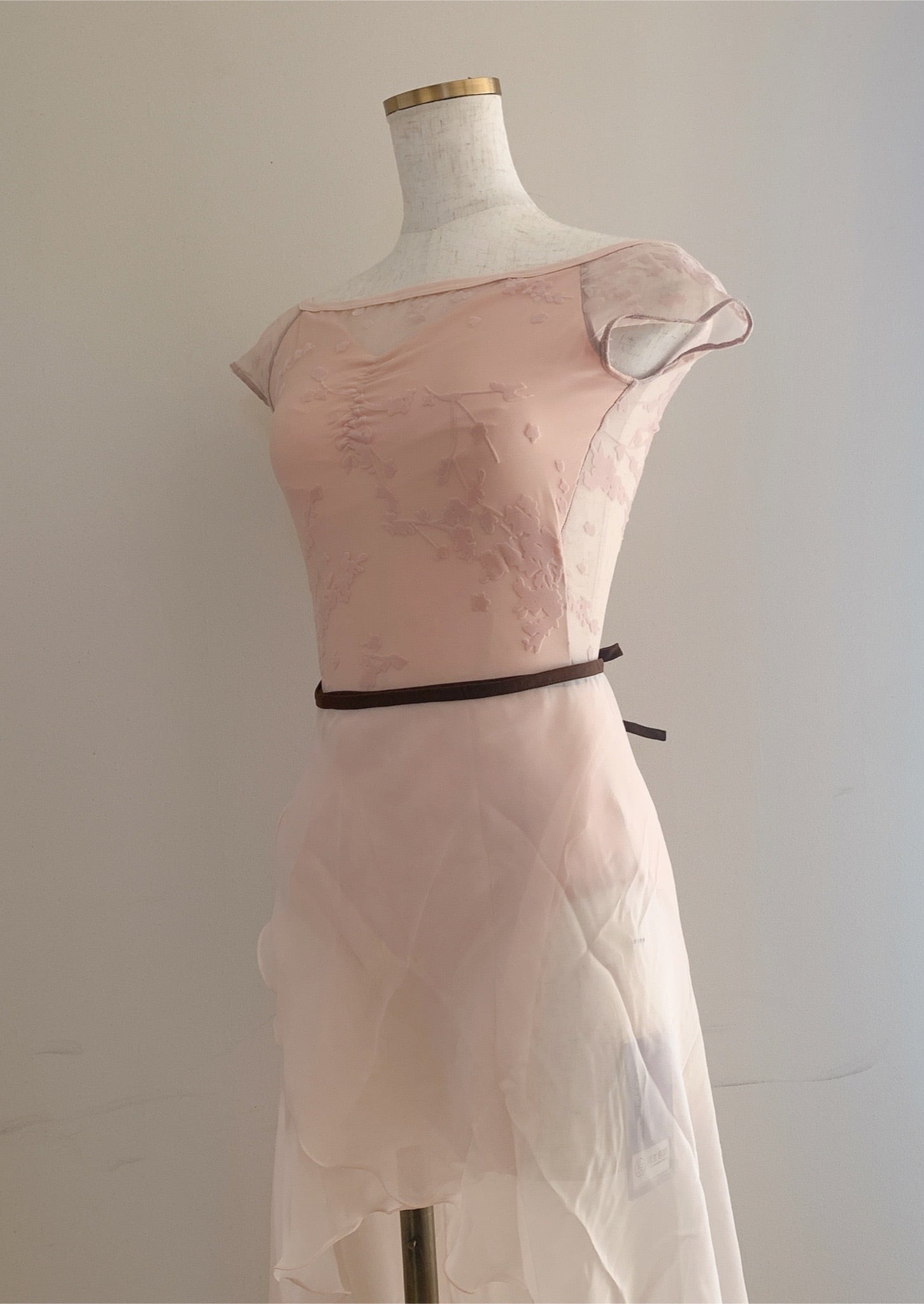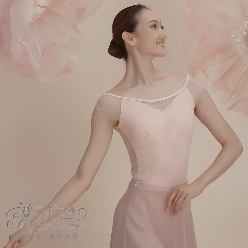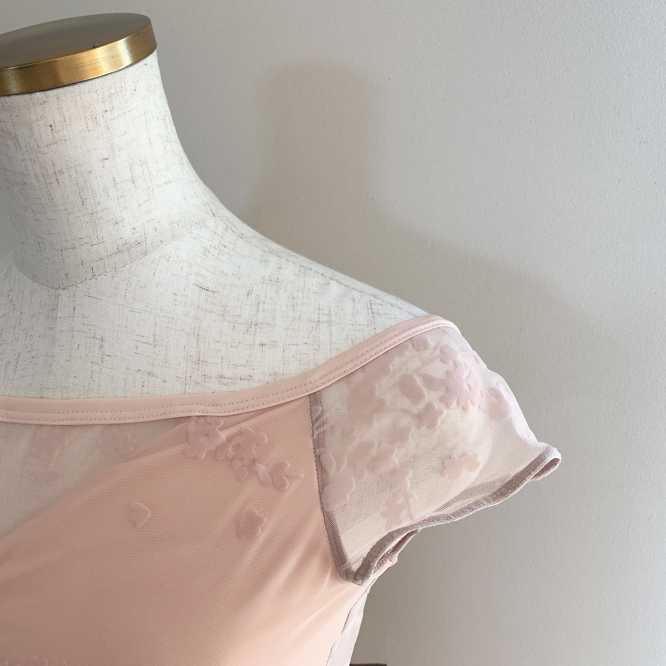 優しいお色と少し肩を落としたフレンチスリーブお袖がとても女性らしいレオタード。