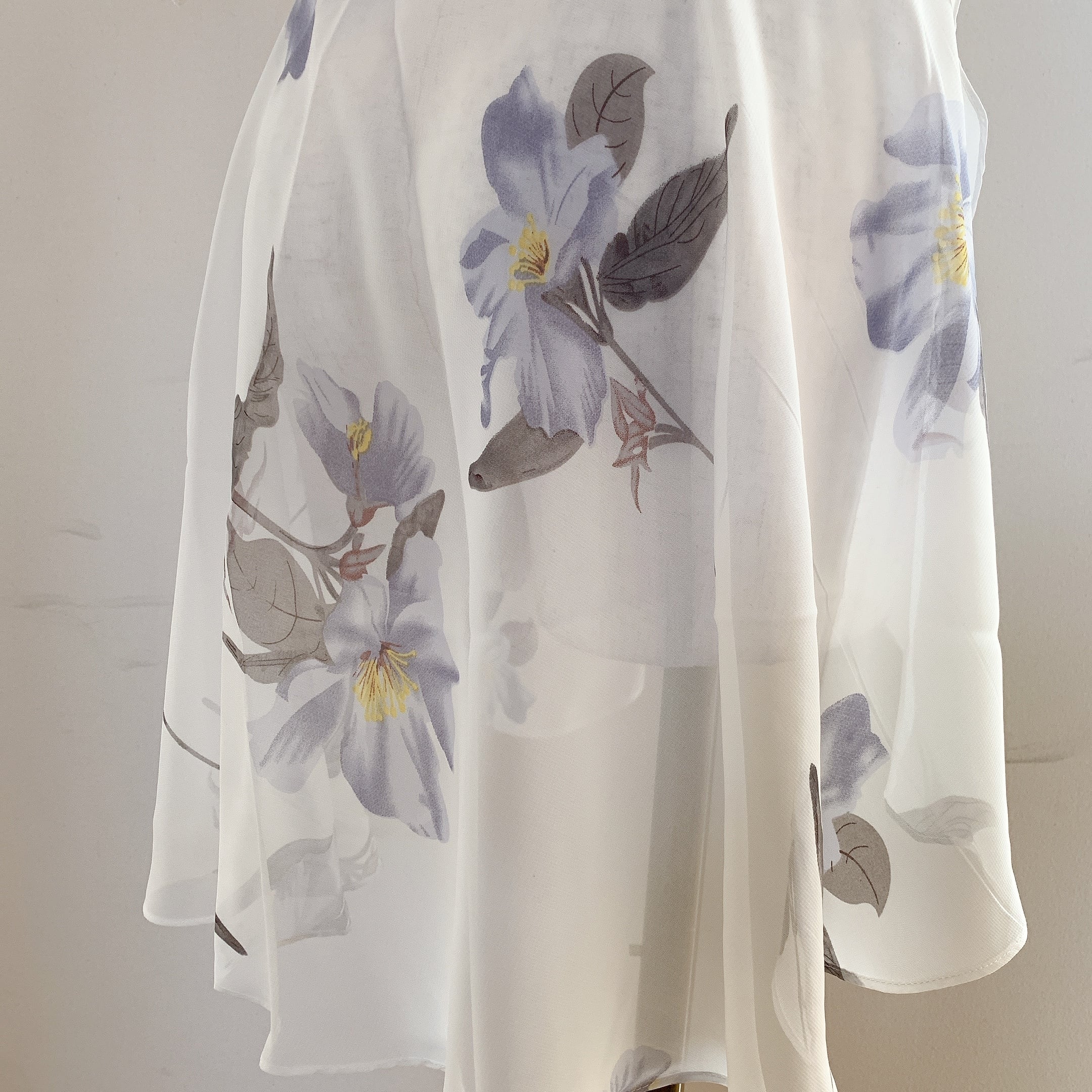 ホワイトのシフォン生地にリリーのプリントが美しいスカート。