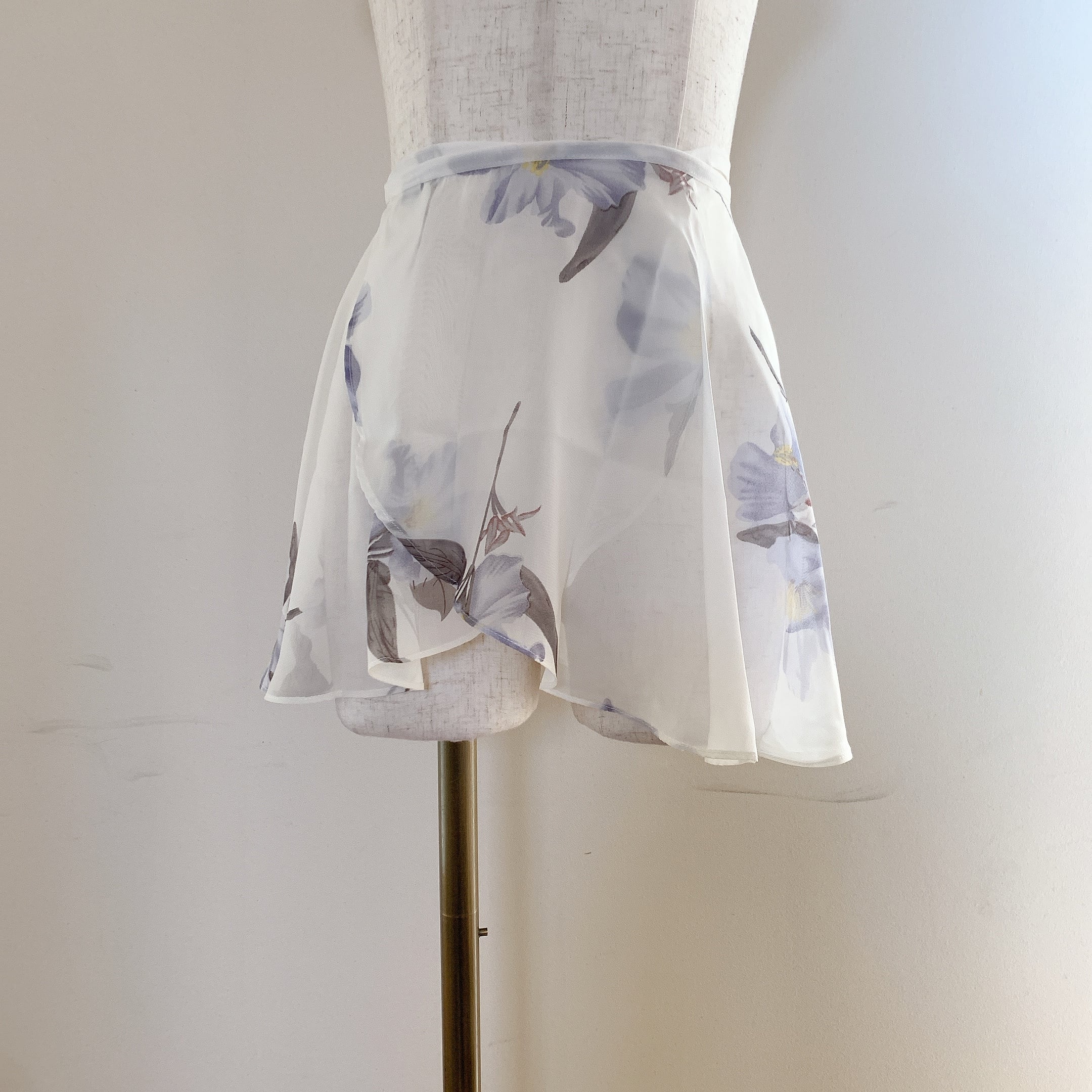 ホワイトのシフォン生地にリリーのプリントが美しいスカート。