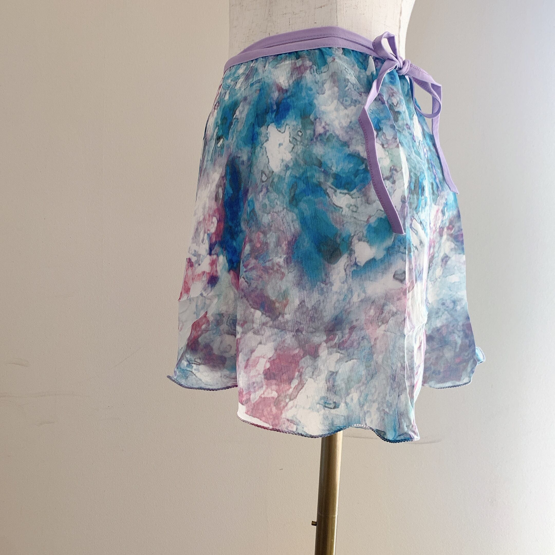 水彩画のような瑞々しさを感じるタッチのプリントスカート。