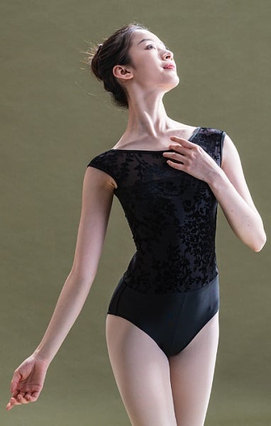 ベルベットフラワー フレンチ バレエレオタード(BLACK)