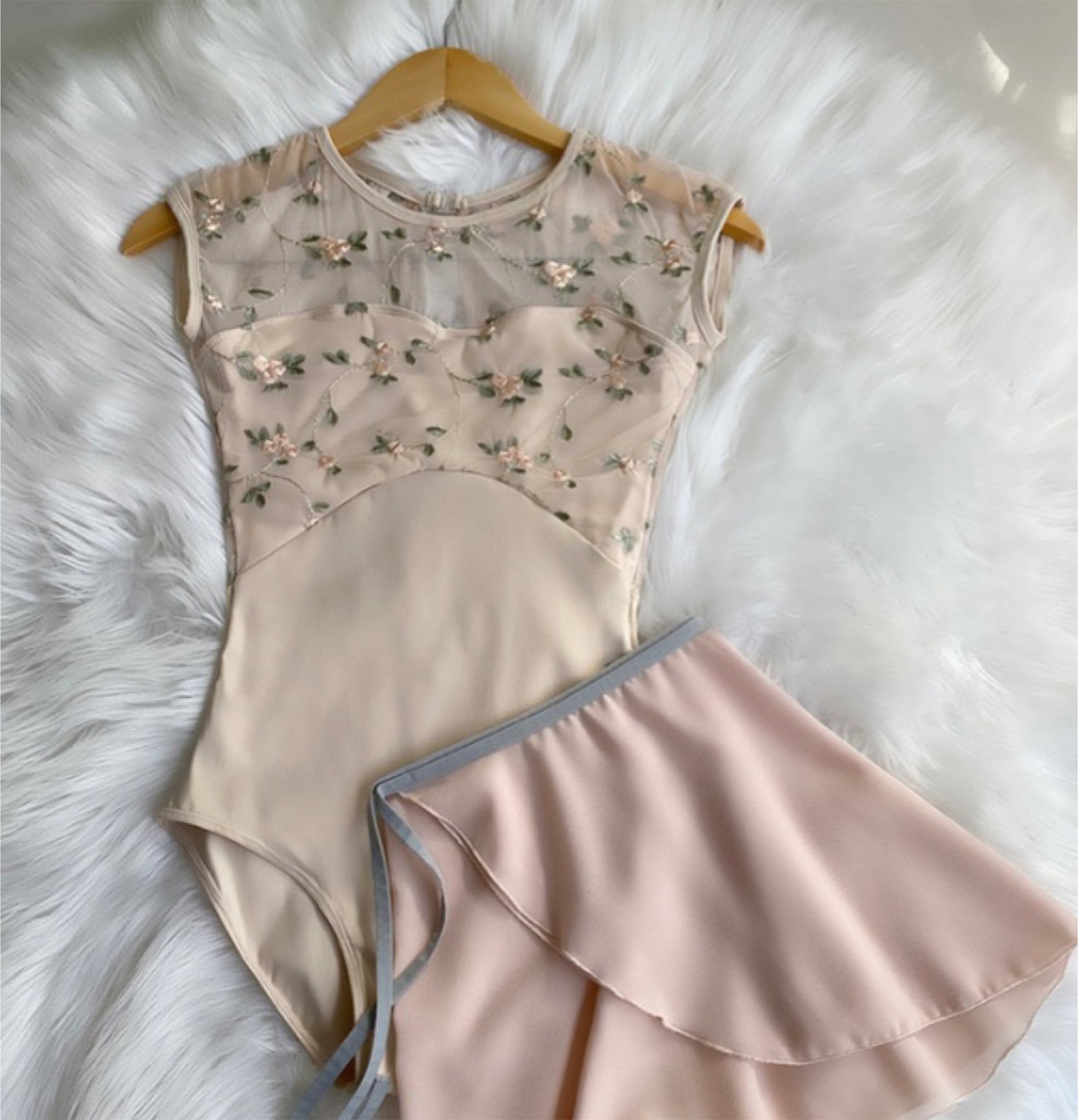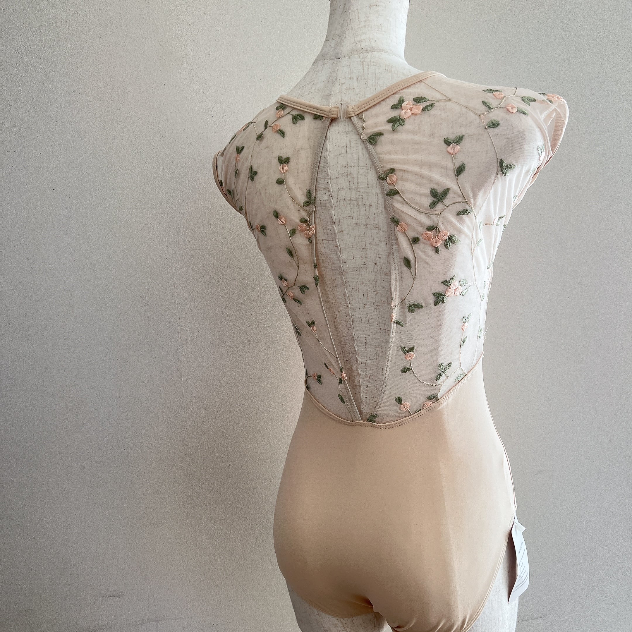 クリームアイボリーにお花の刺繍が大人かわいいレオタードです。