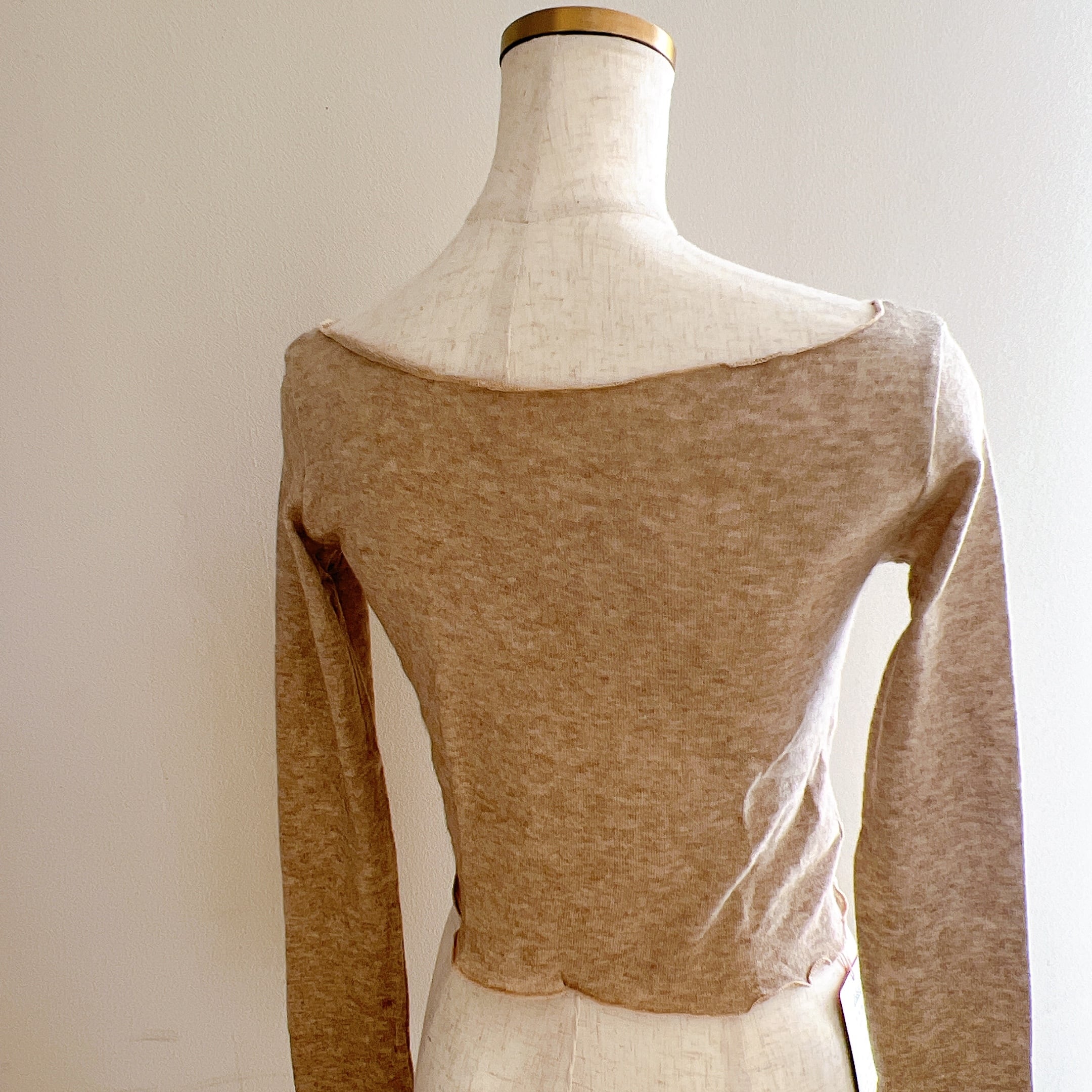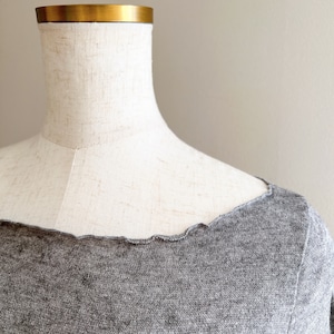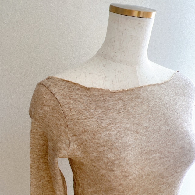 広めに開いたボートネックでデコルテやネックラインを美しく見せてくれます。