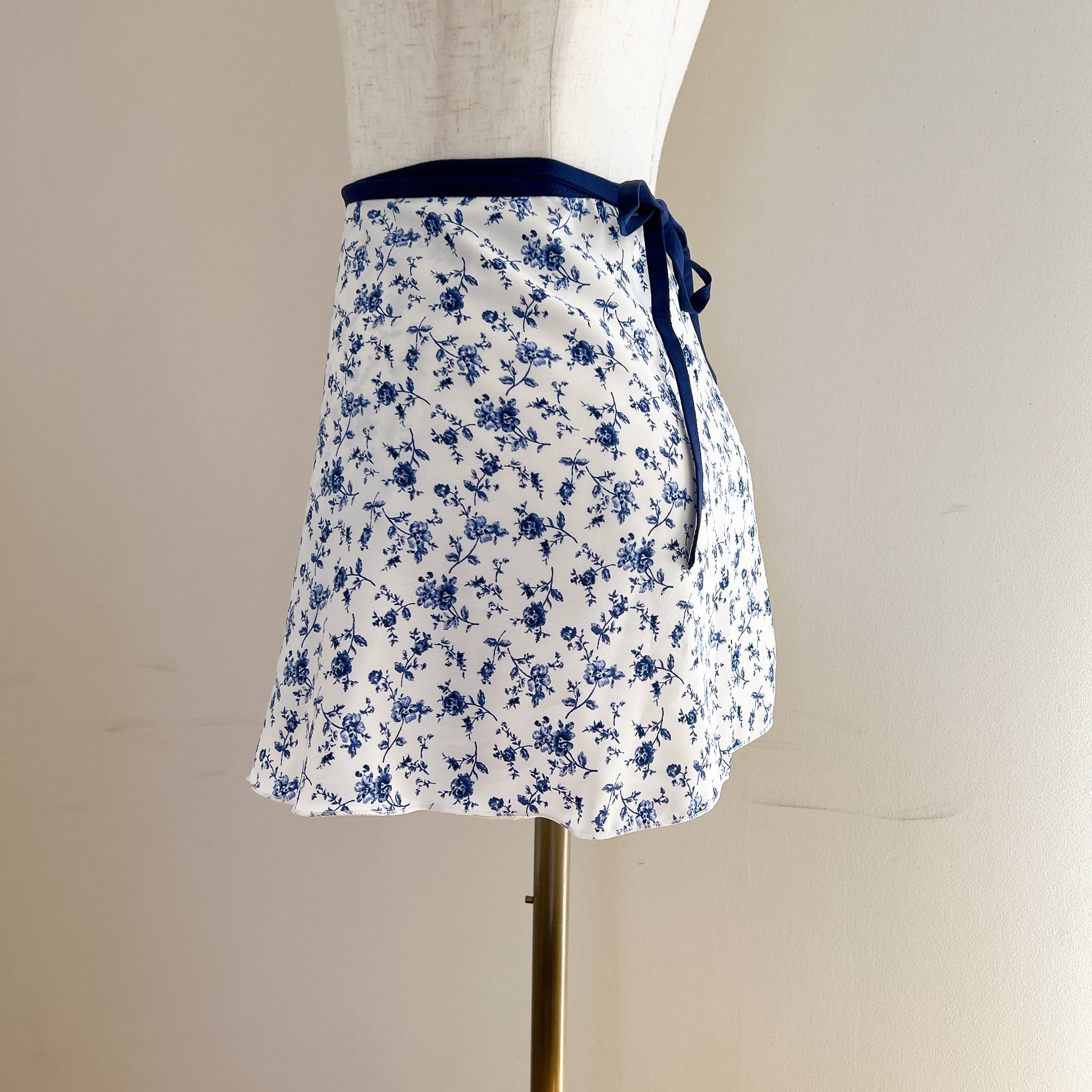 ロイヤルブルー フワラープリント バレエスカート(ショート)