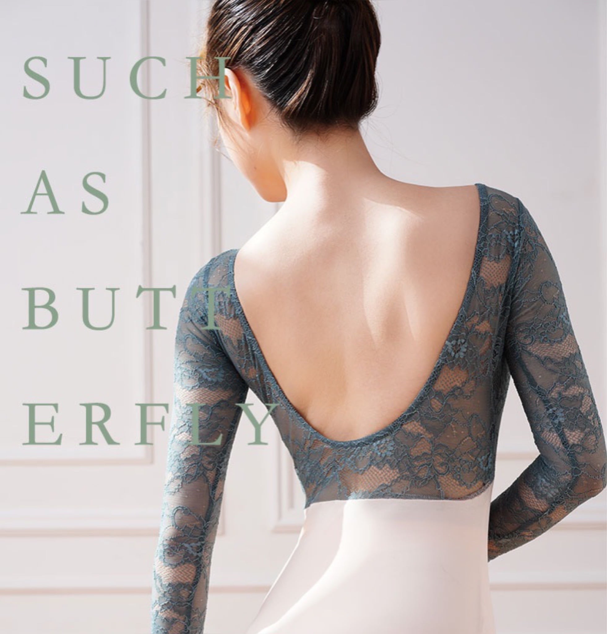 ブルーグリーン レーススリーブ バレエレオタード