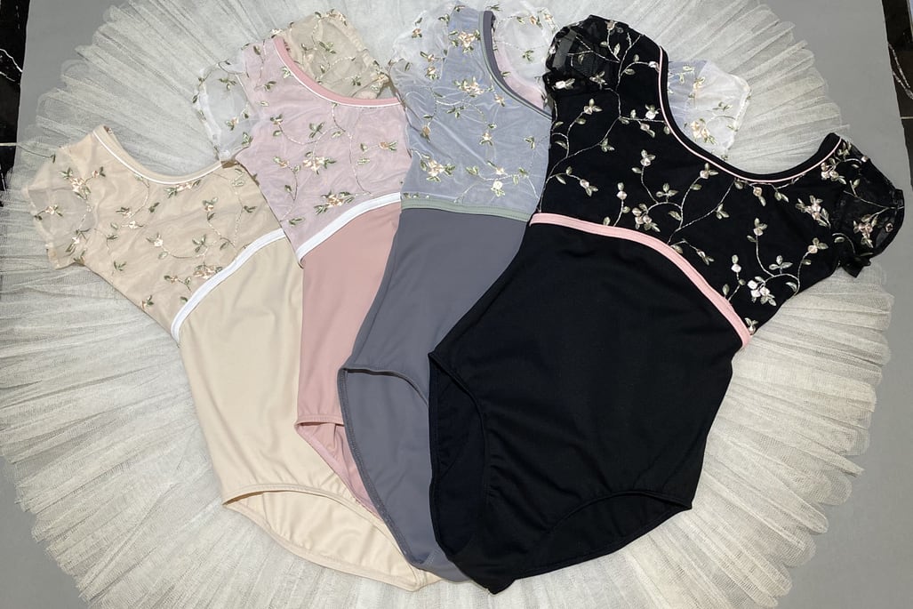 人気の刺繍レオタードのお袖付きバージョン。
