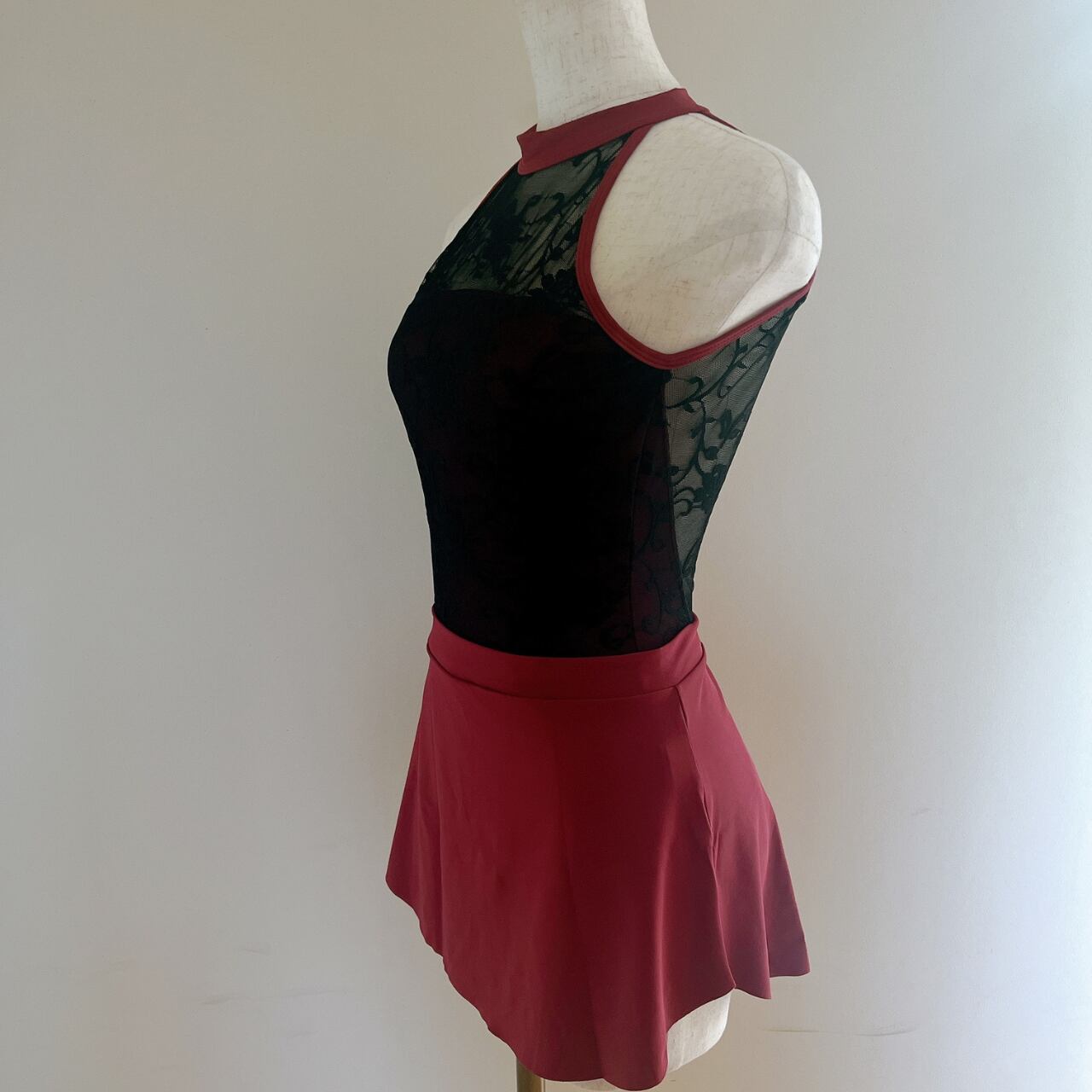 ハイネックレース バックオープン バレエレオタード(Red)