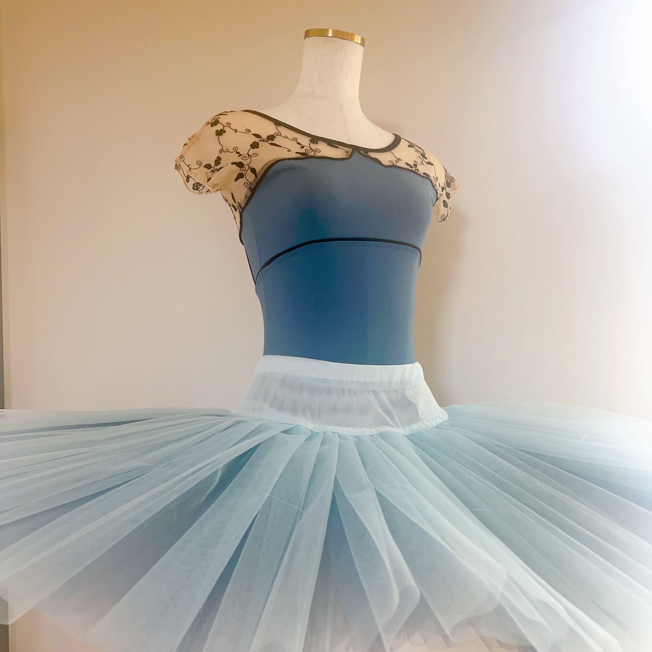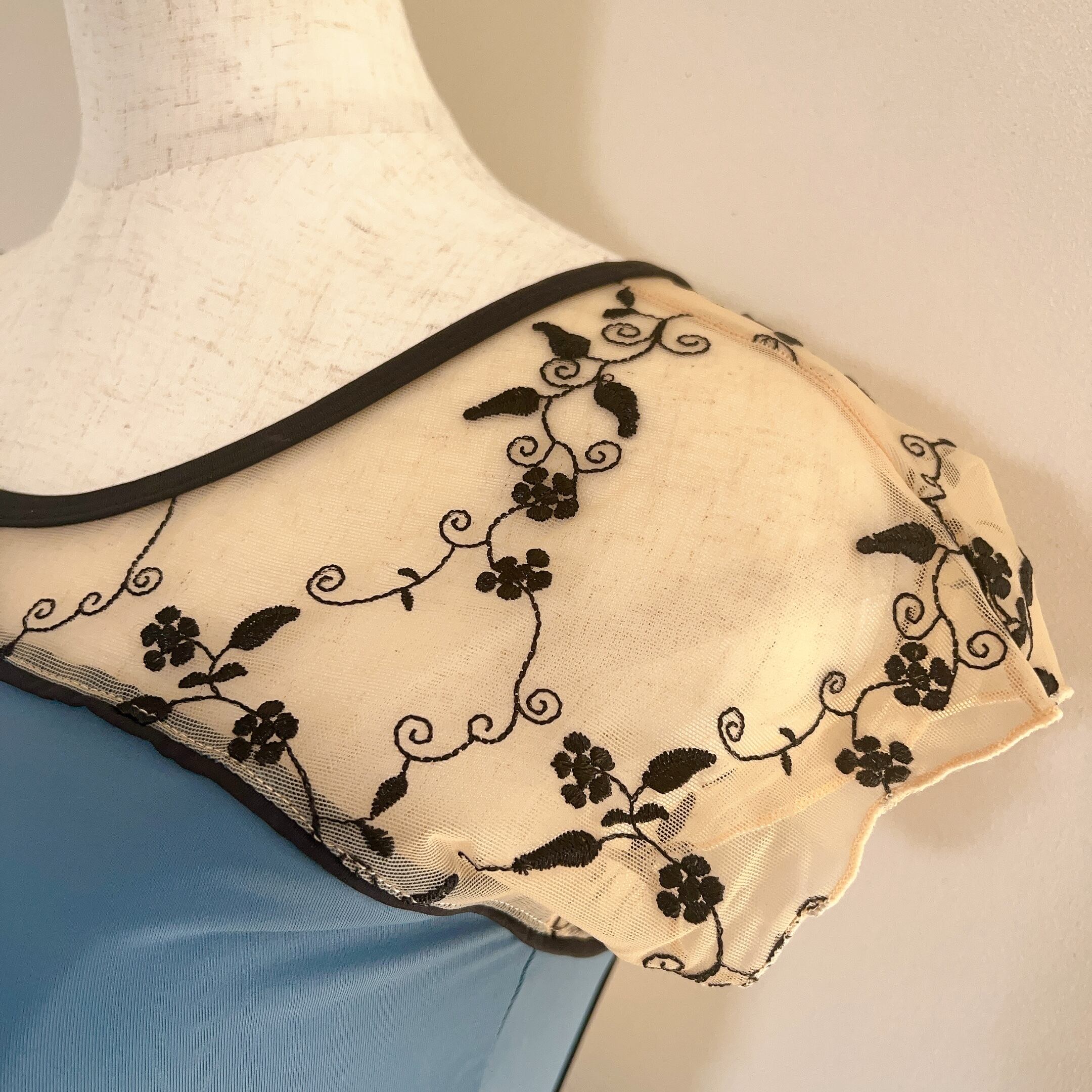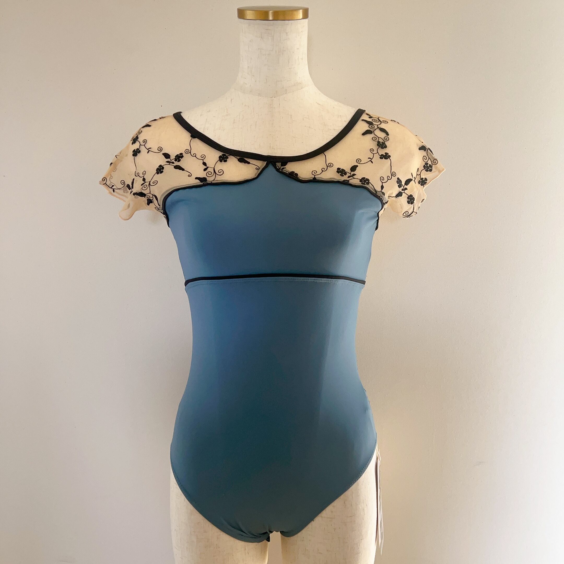 メッシュ生地にブラックのフラワー刺繍が施されたレオタード。