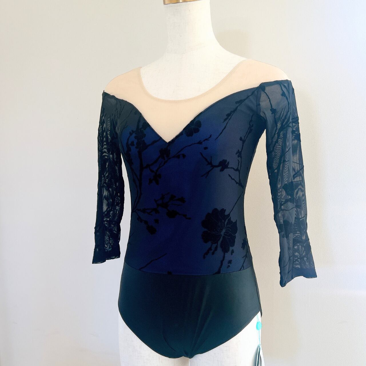 オフショルダー風になるようスキンカラーのメッシュと、レオタード生地が重なっています。